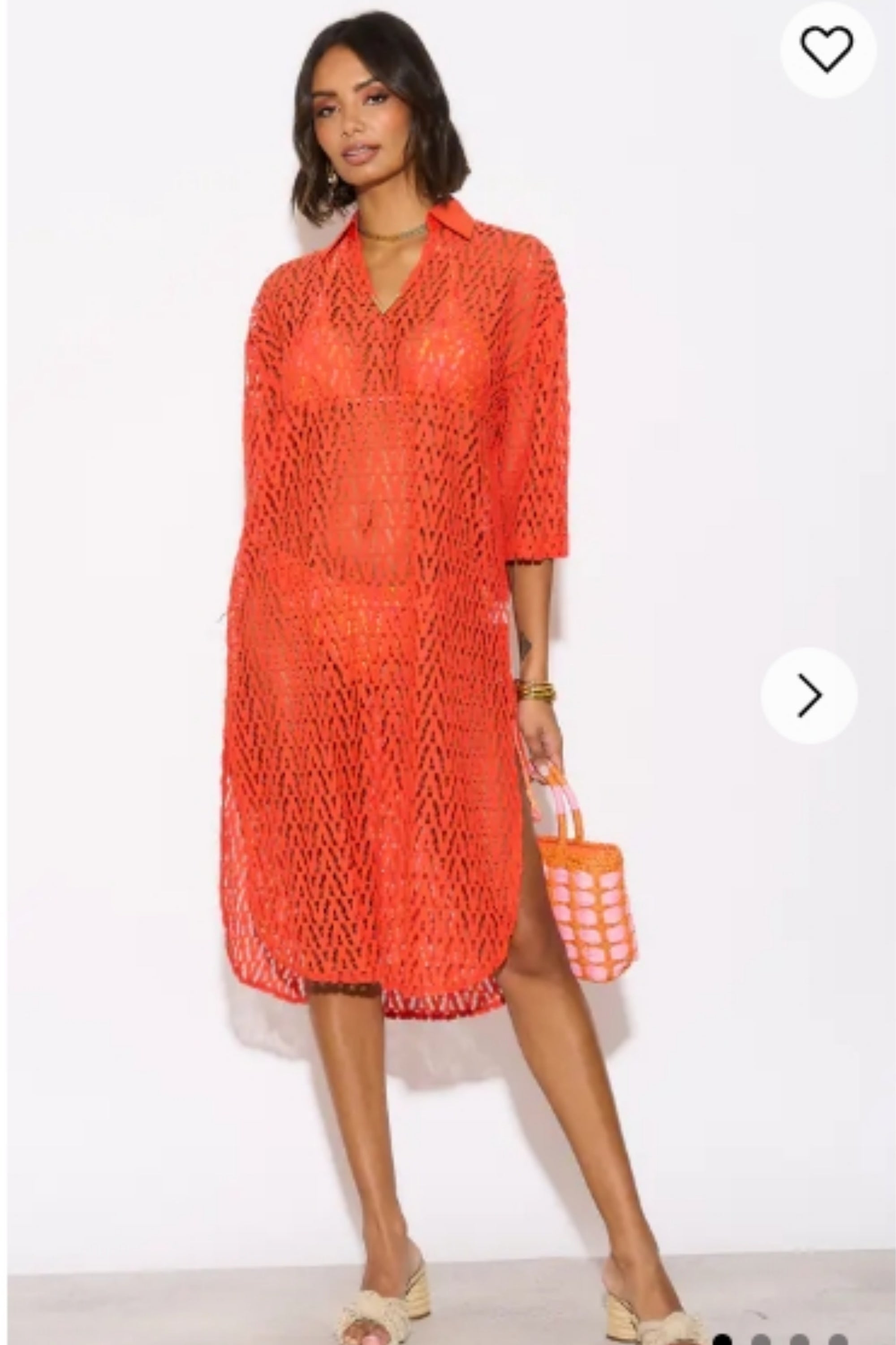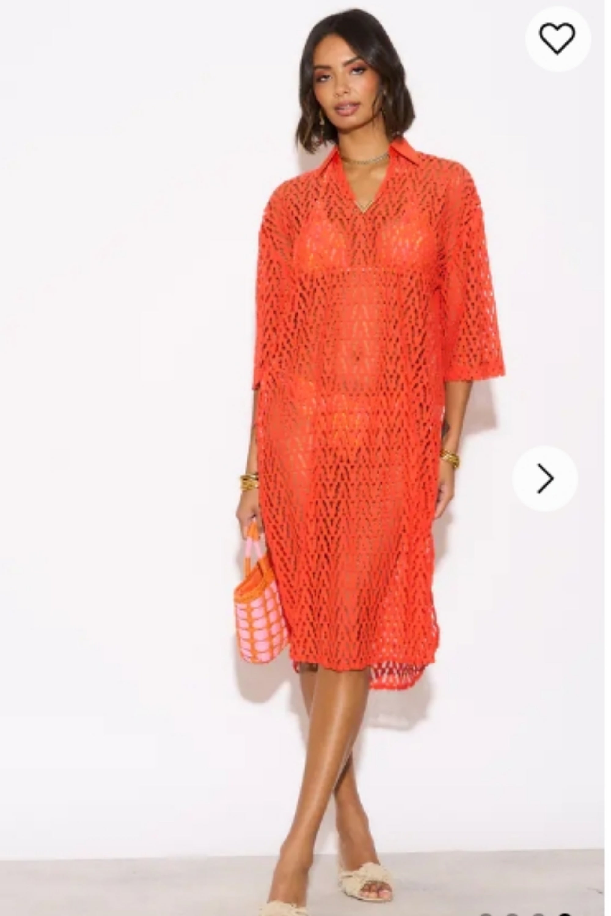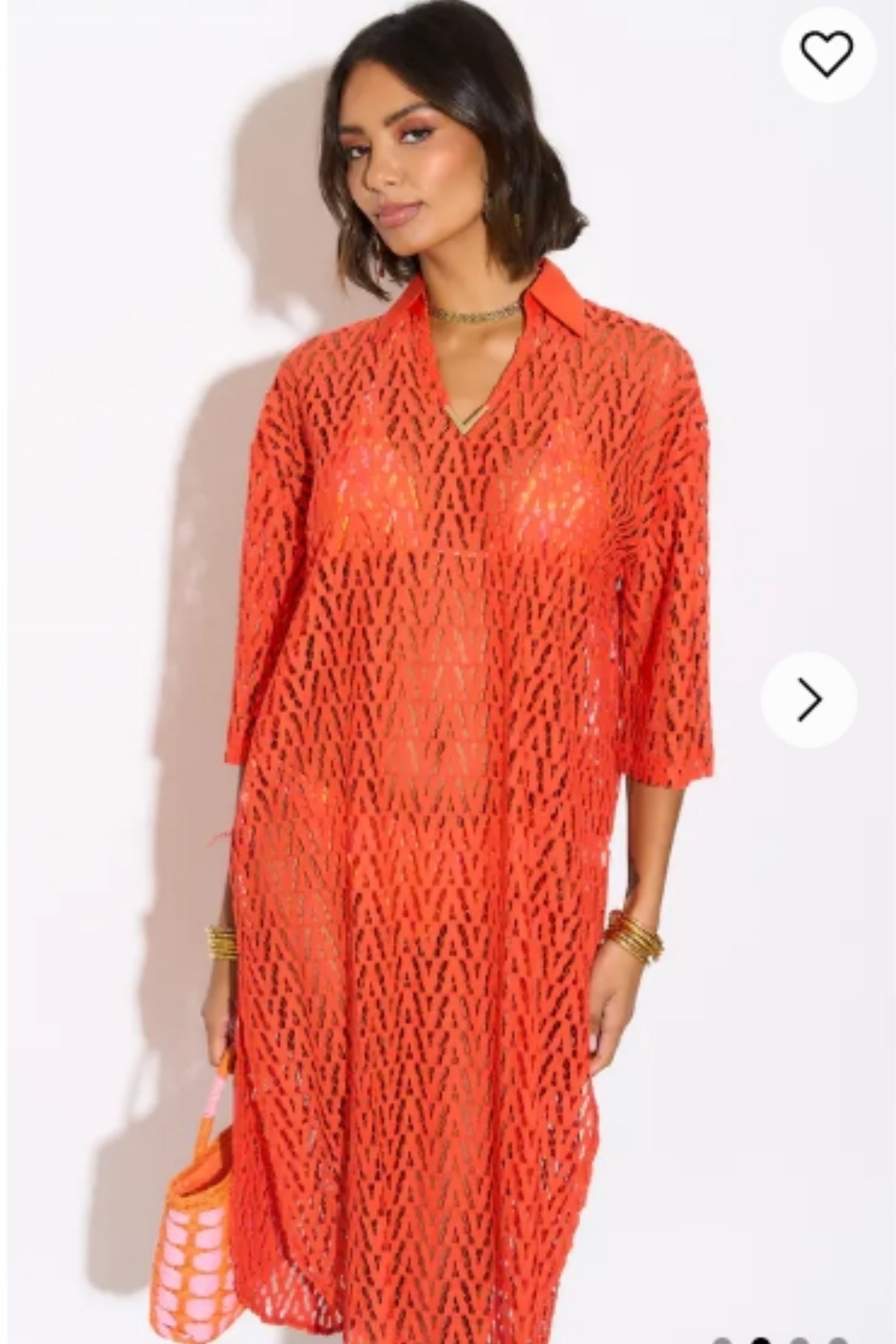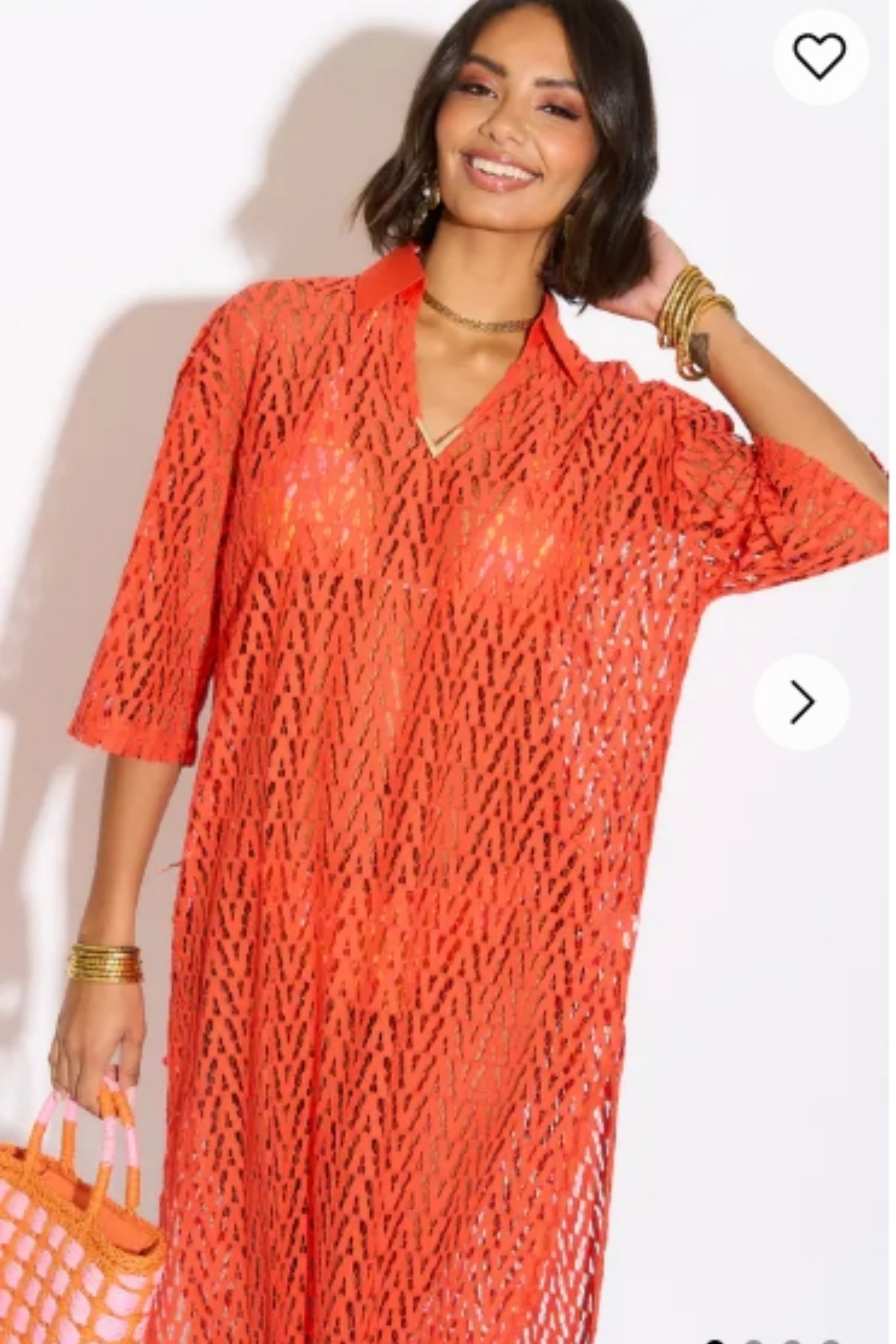 V pattern Lace kaftan dress in Orange Holiday wear collection