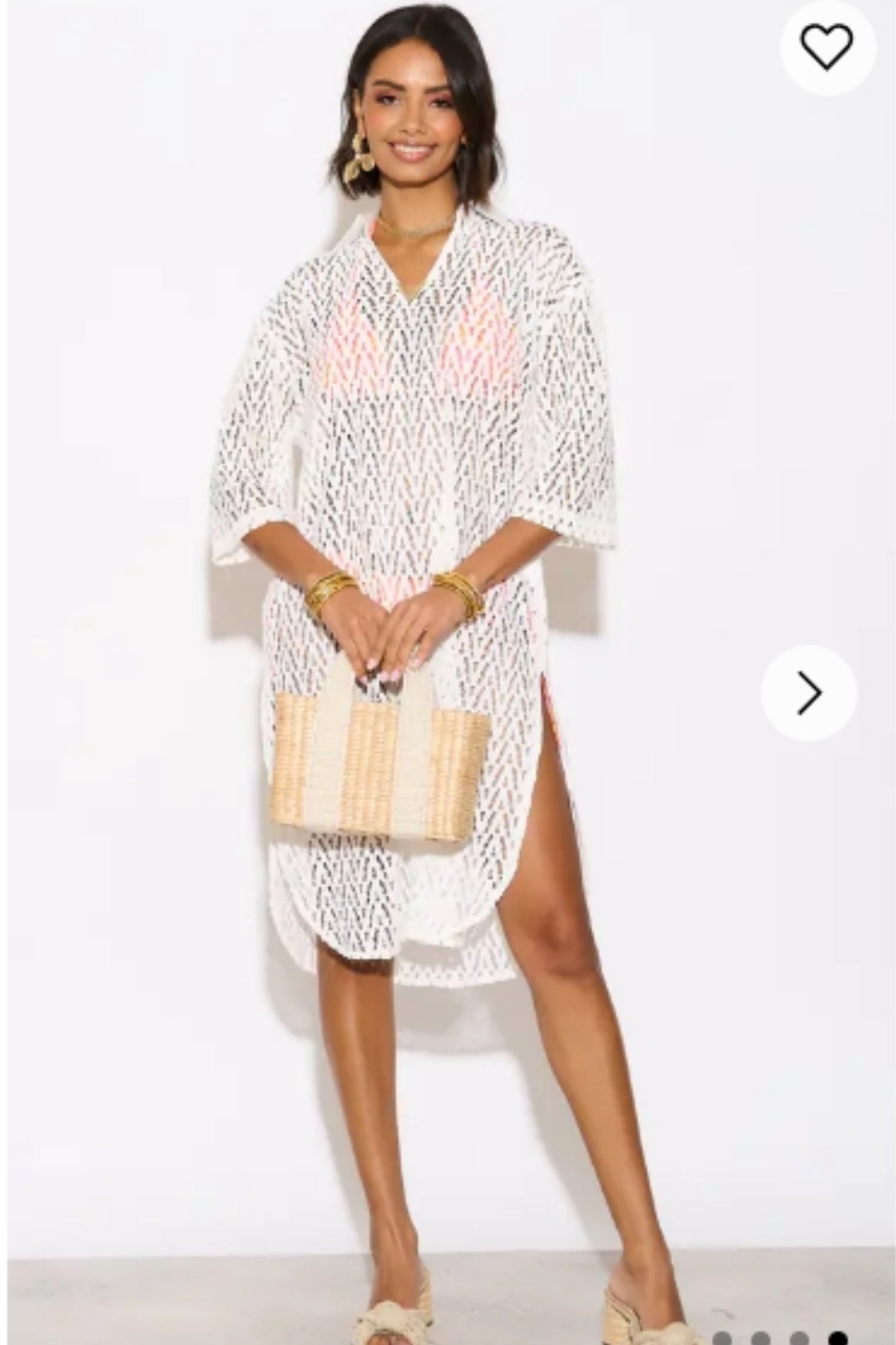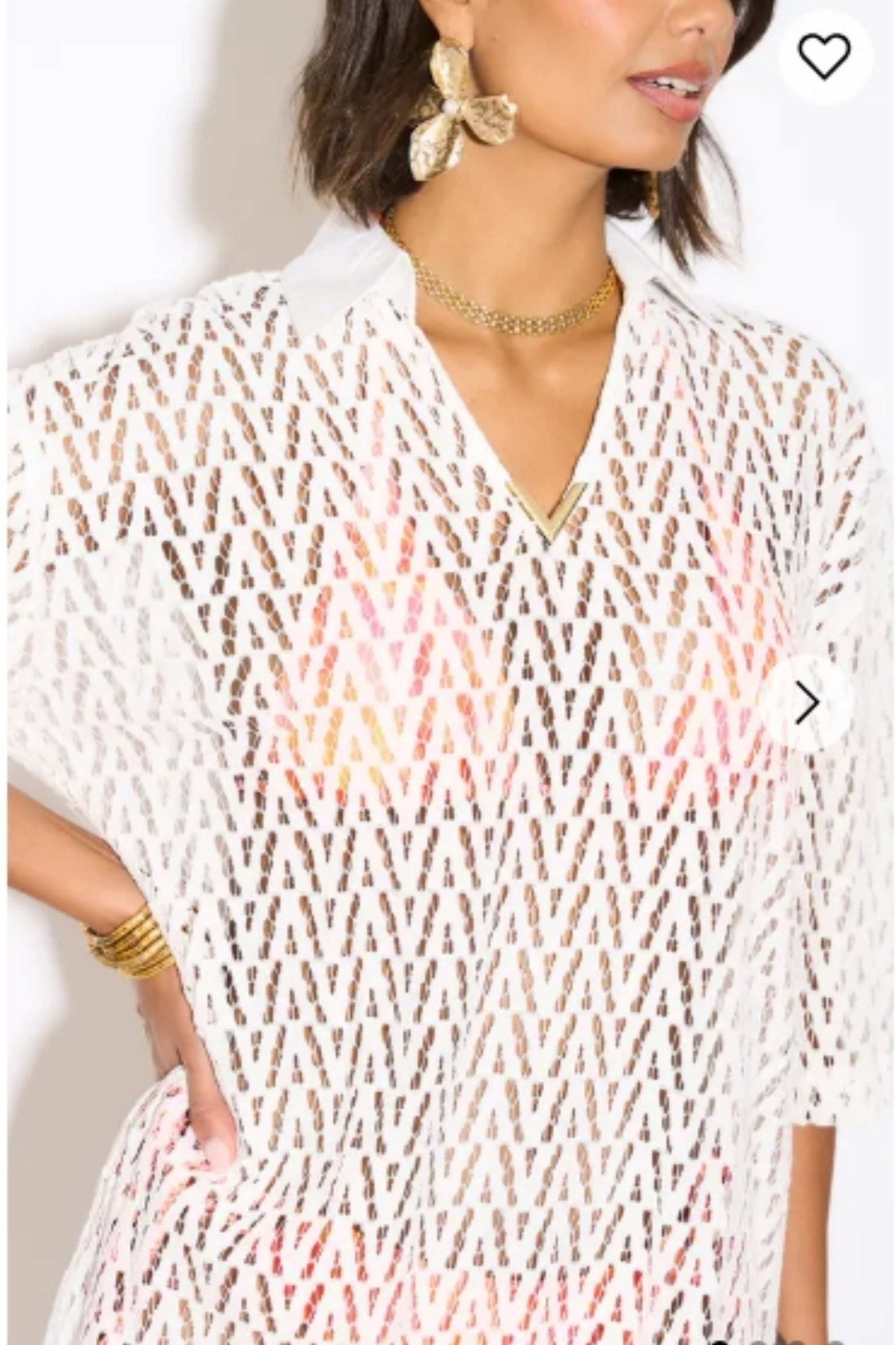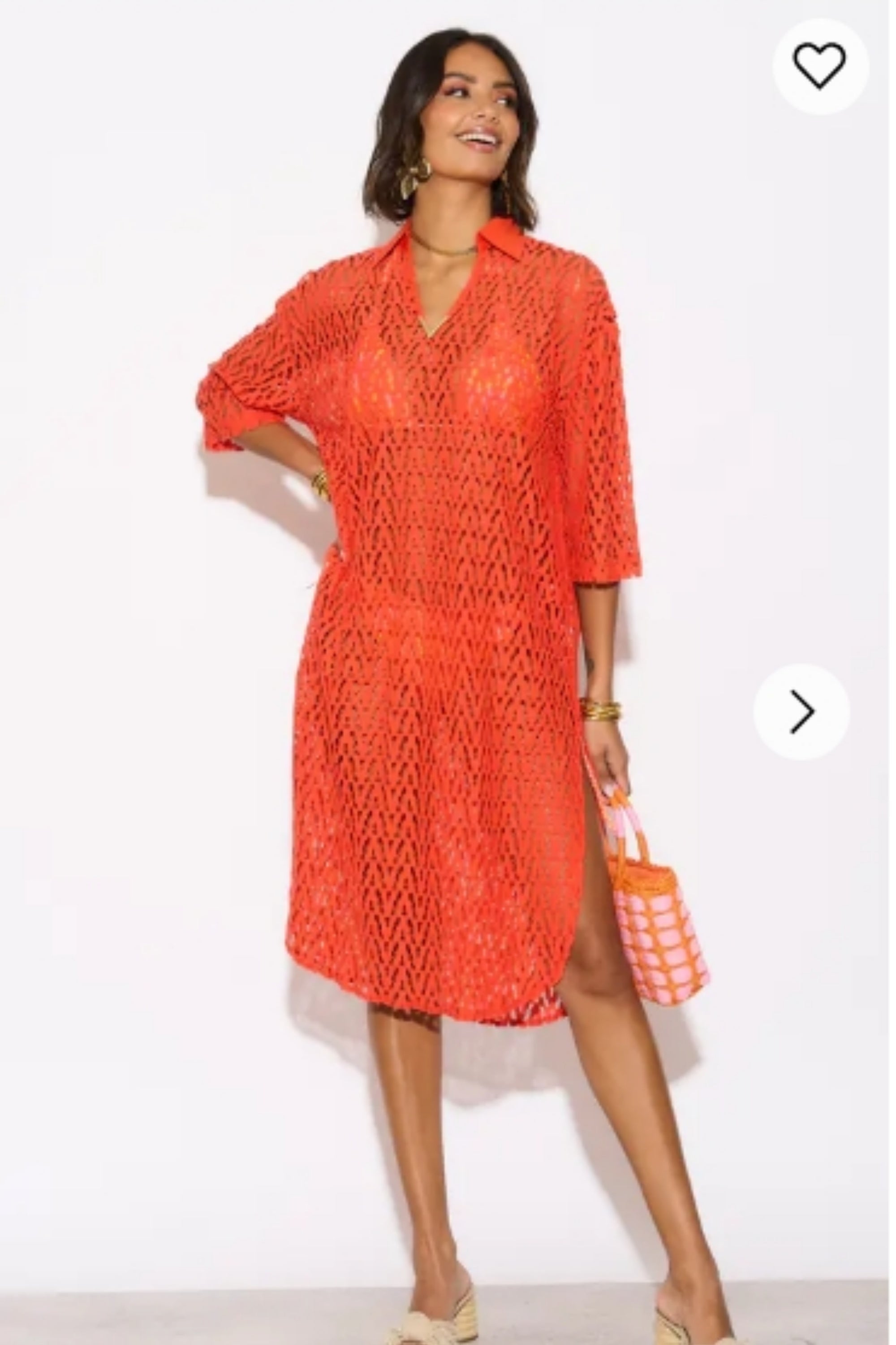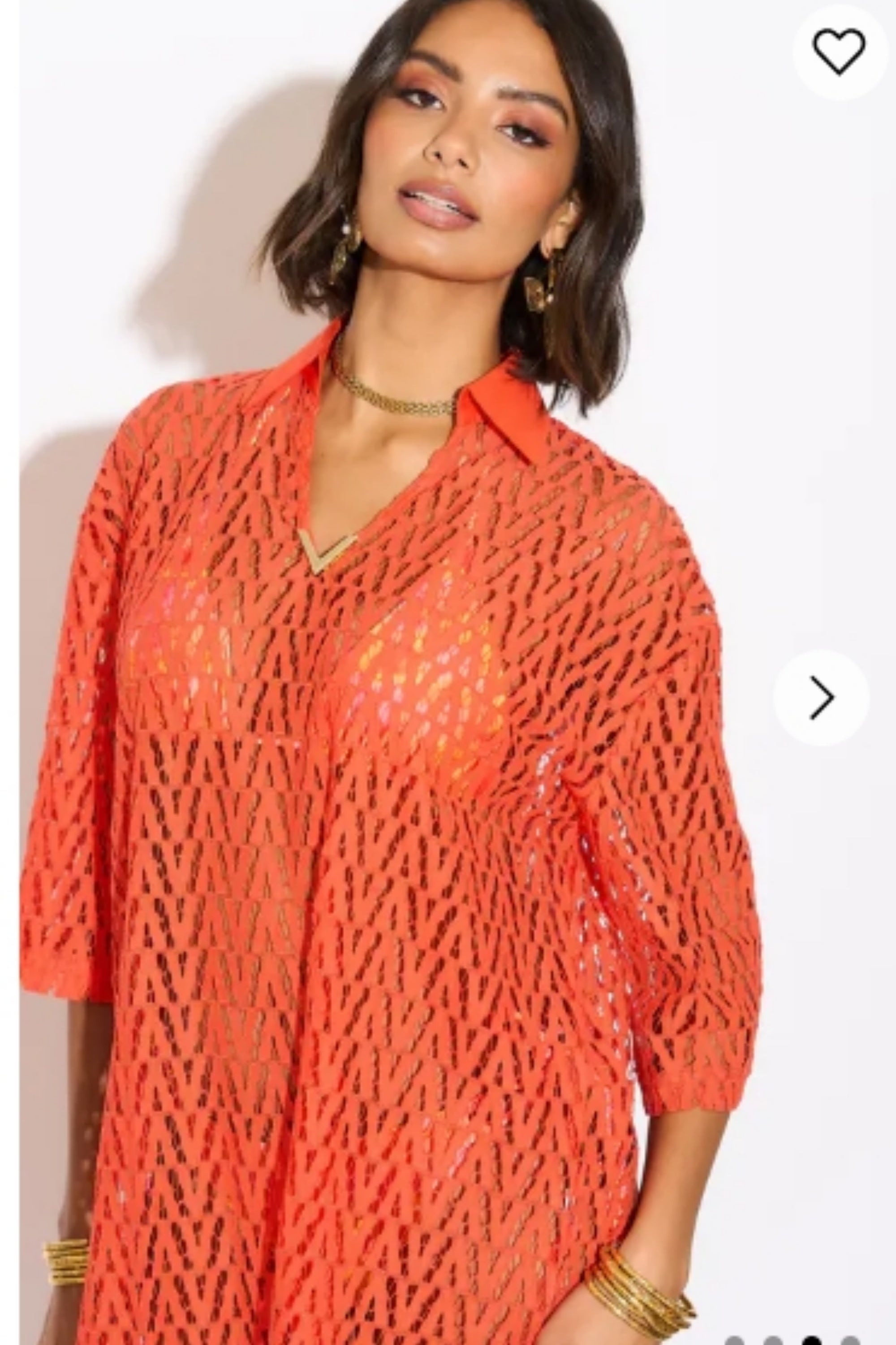 V pattern Lace kaftan dress in Orange Holiday wear collection