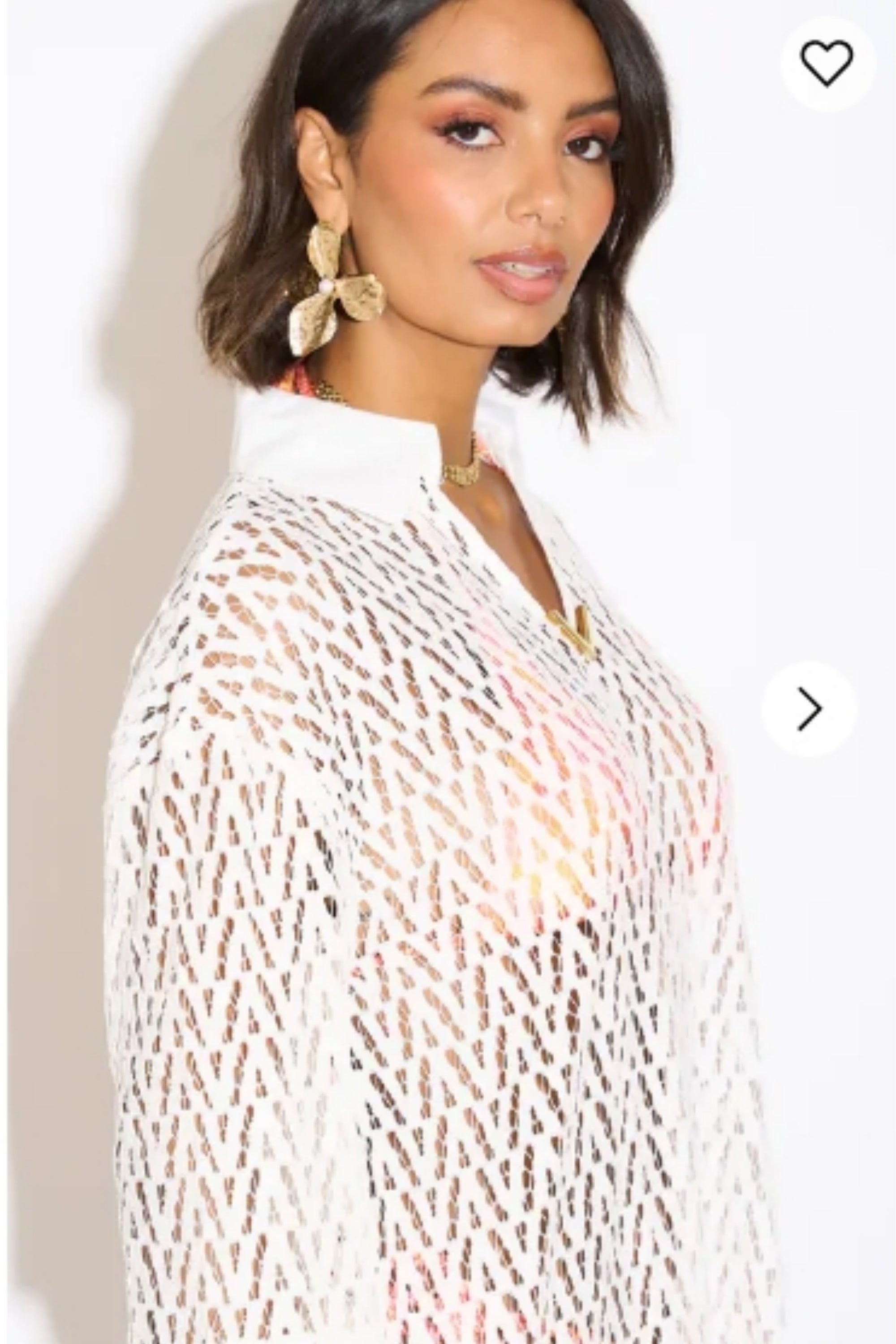 Pleated ruffles with multi dimoned stone embellished sleeves design organza shirt in white