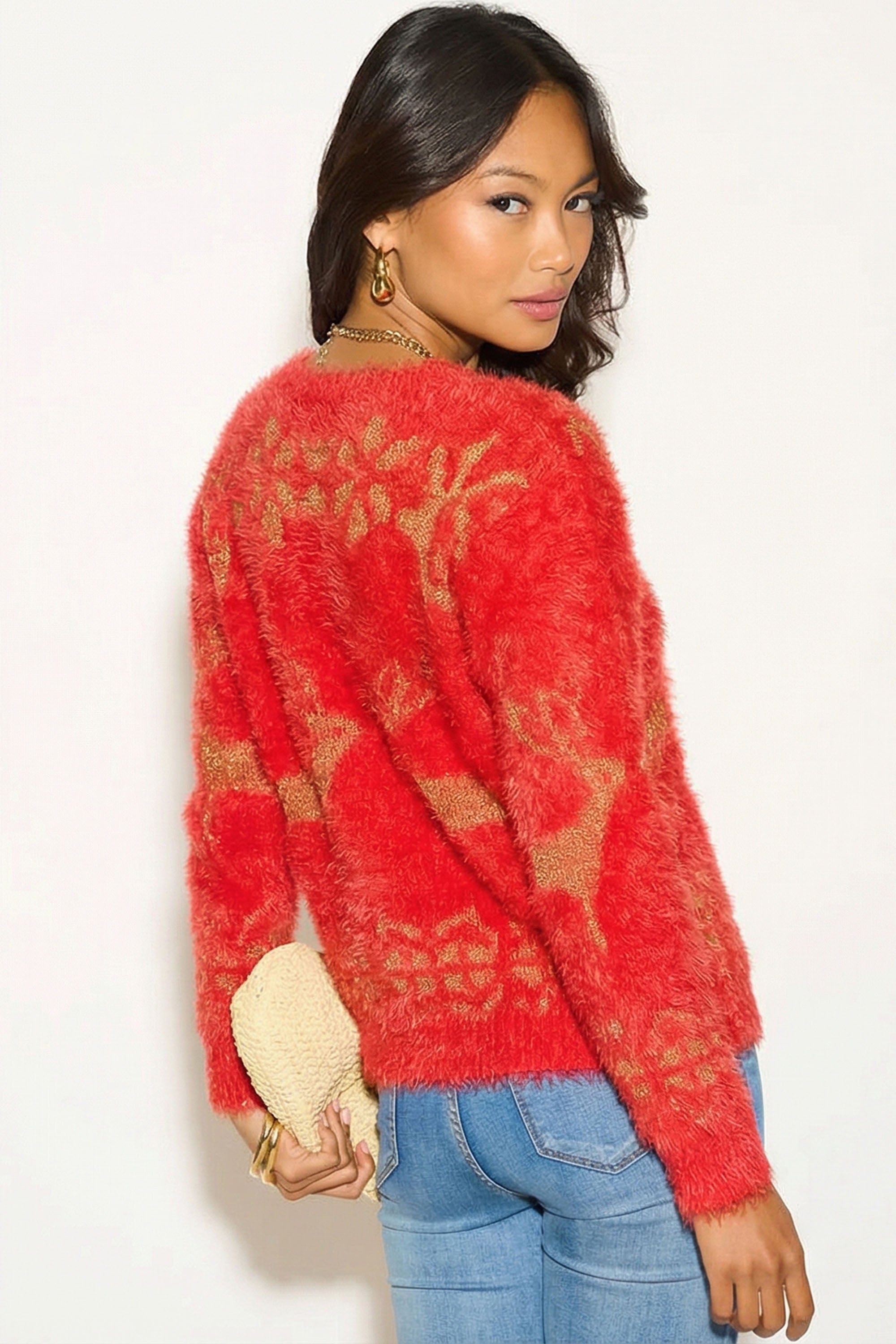 High-neck sleeveless metallic-knit with pattern print maxi dress in Red