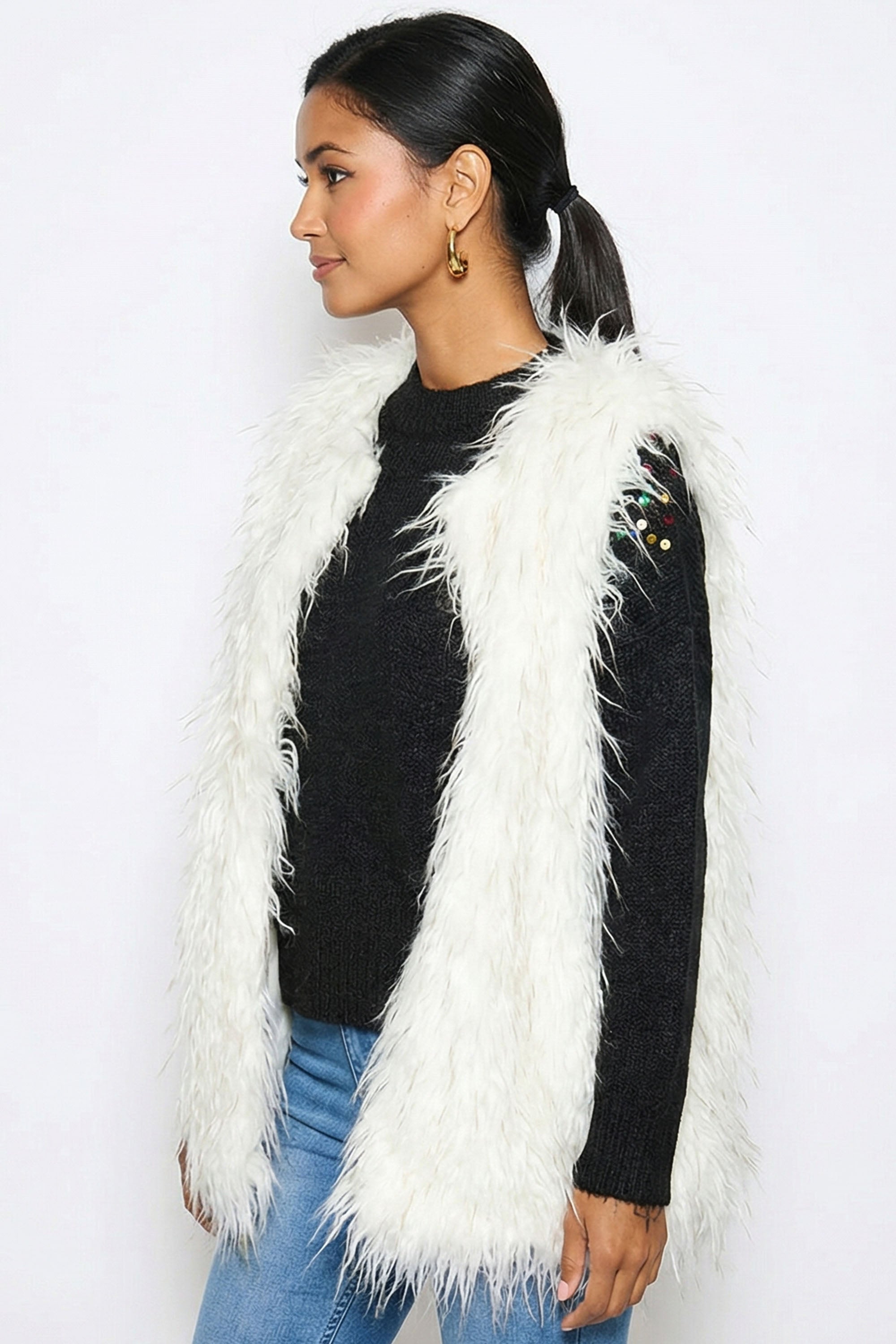 Oversized Faux Fur Gilet in White