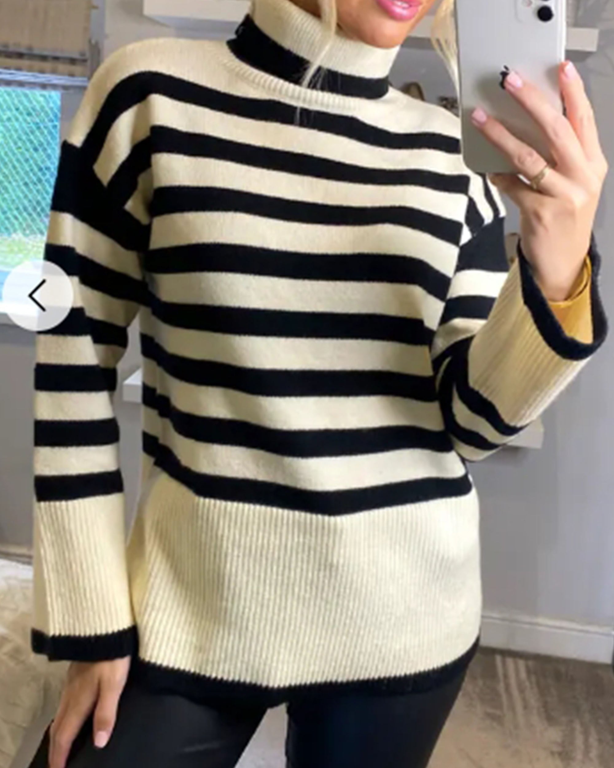 Soft Knit Striped roll-neck design cozy wool-blended jumper in white