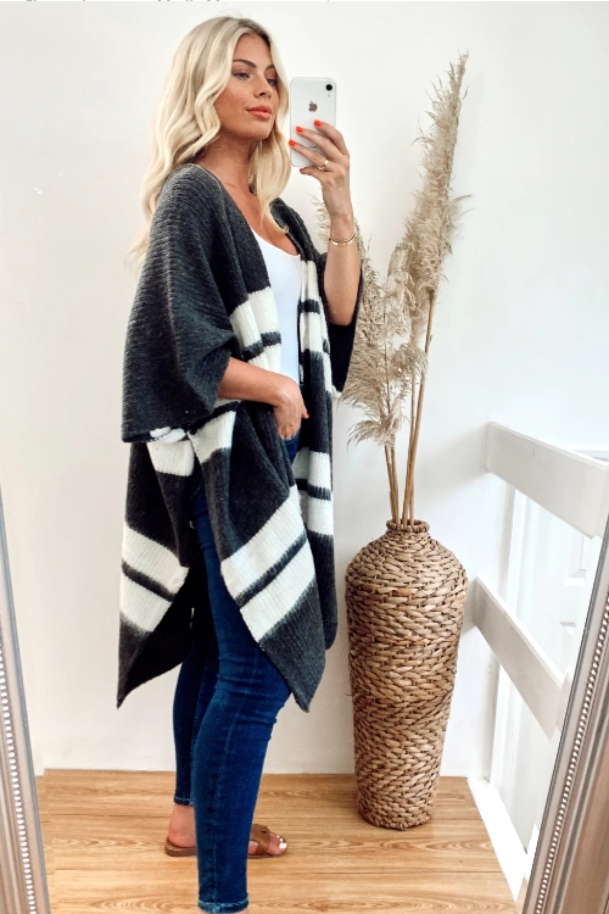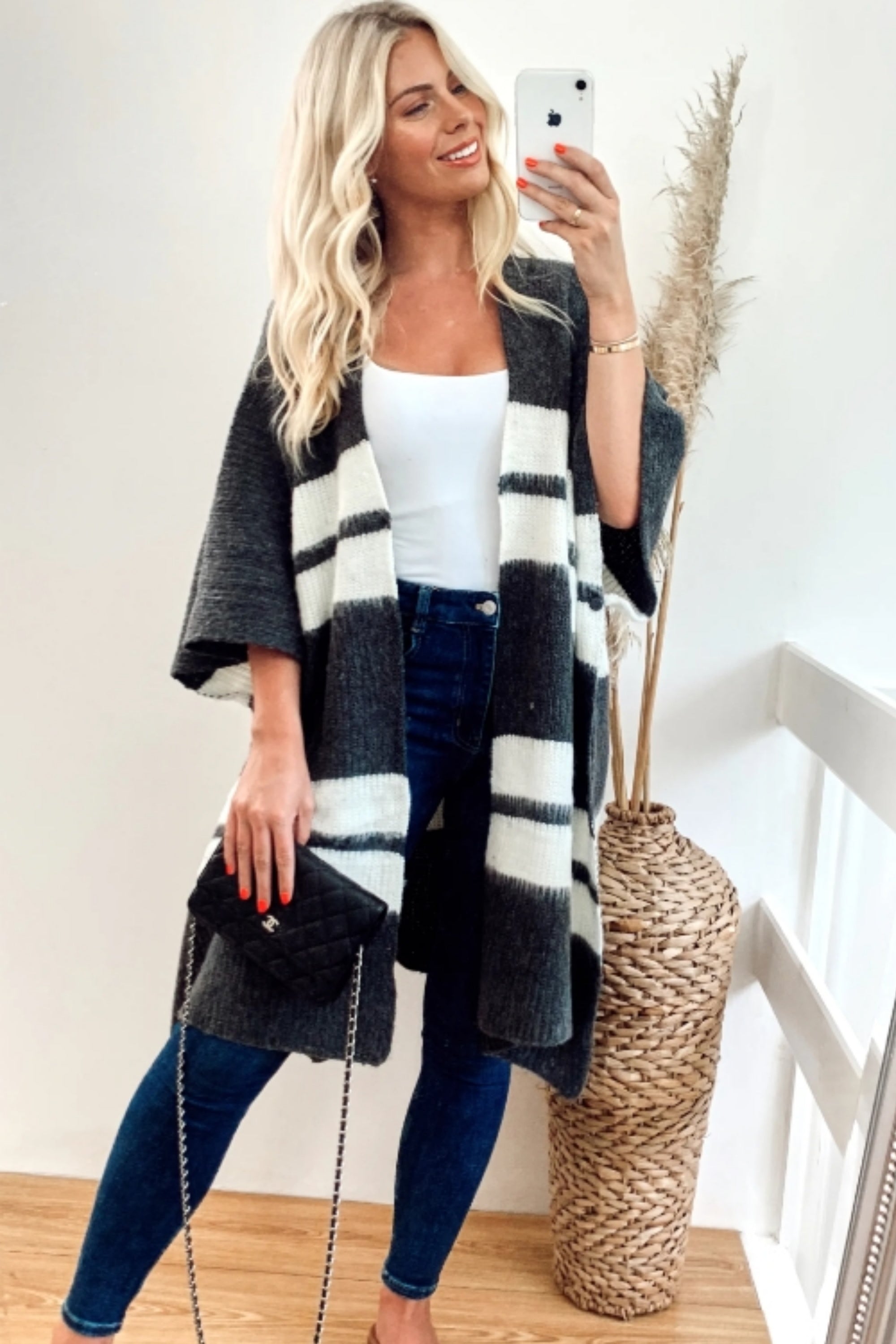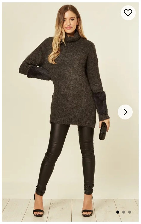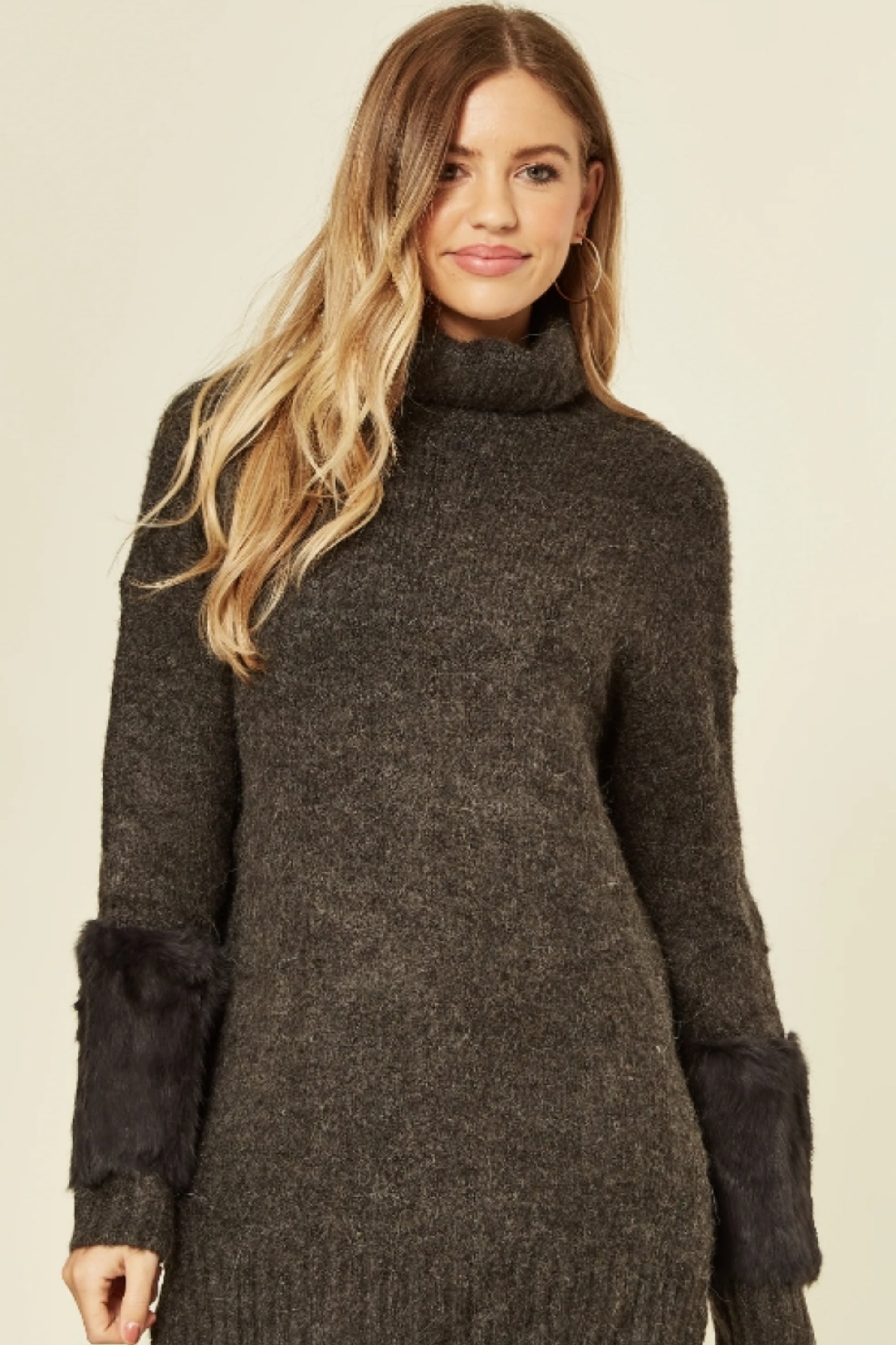 Black Cropped Cardigan with Tassel Fringe & Faux Fur