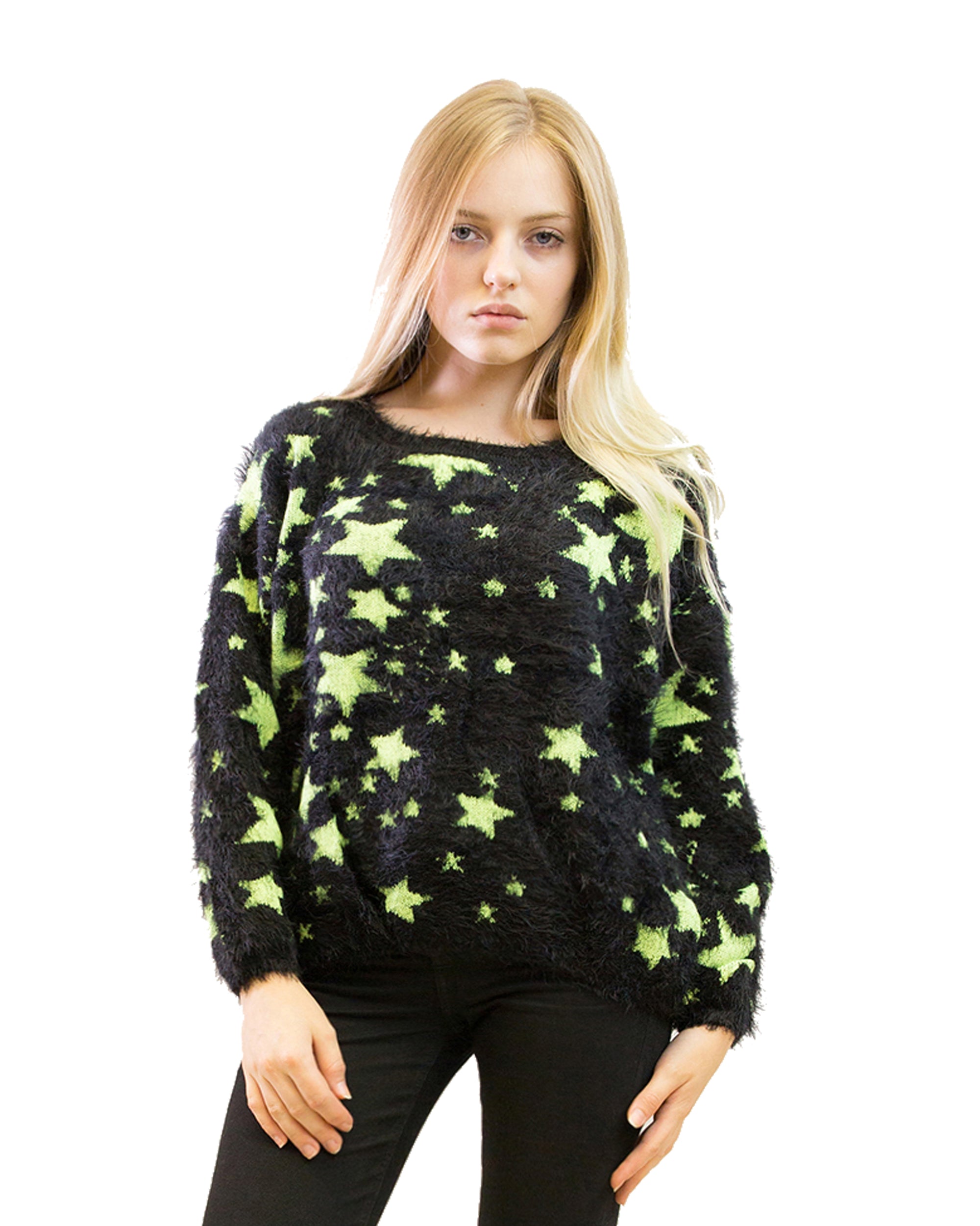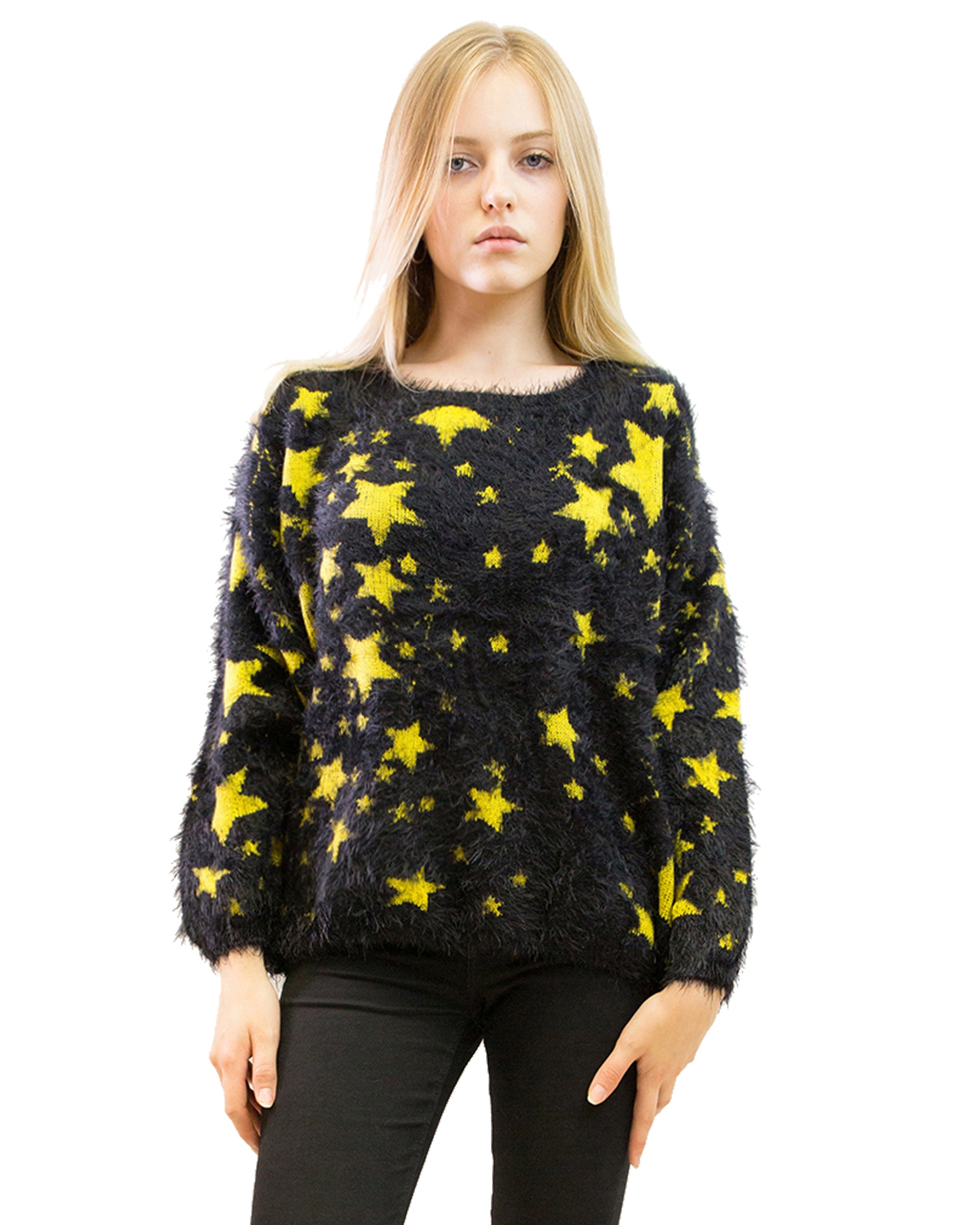 Fluffy snowflake Print Christmas Jumper (YELLOW)