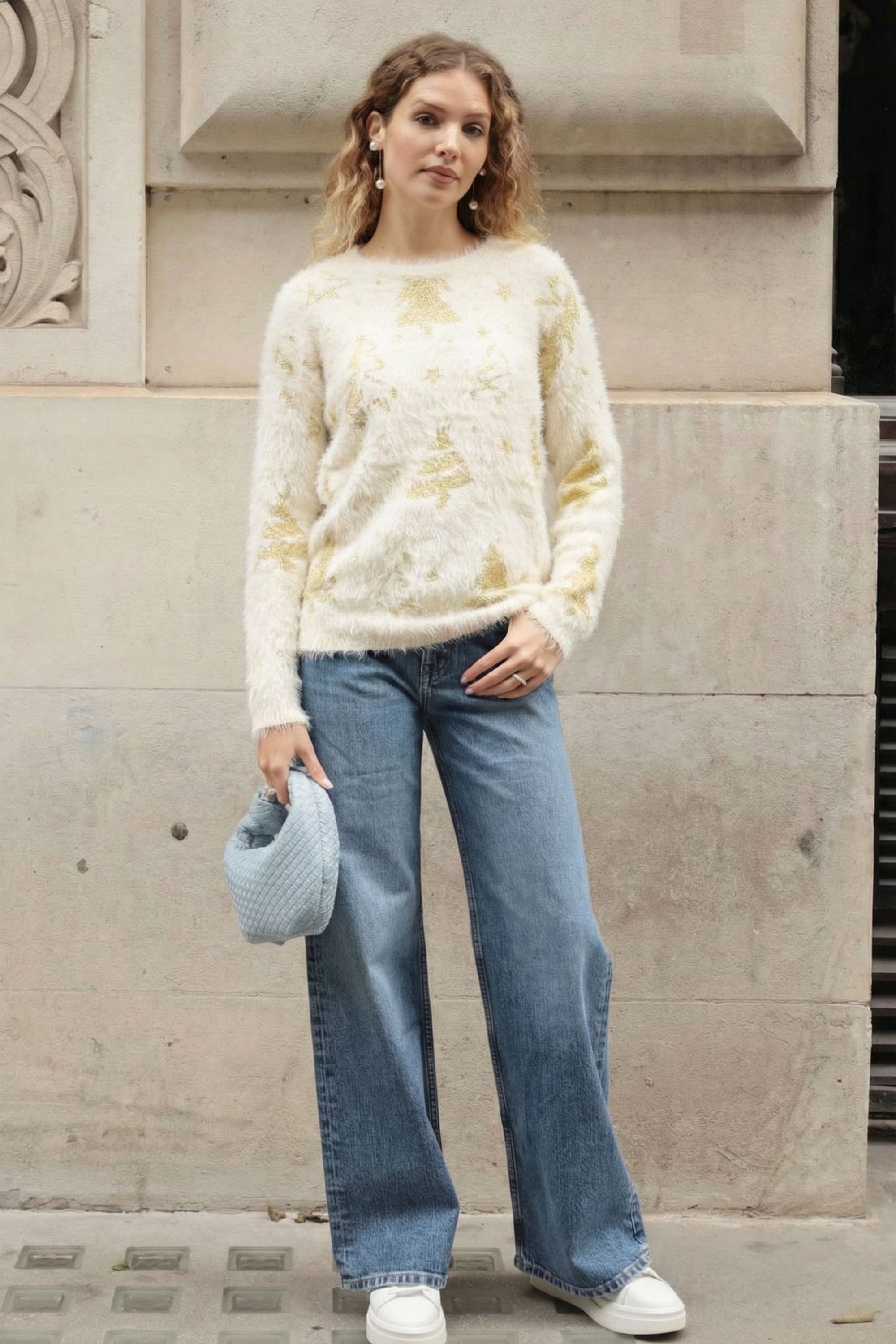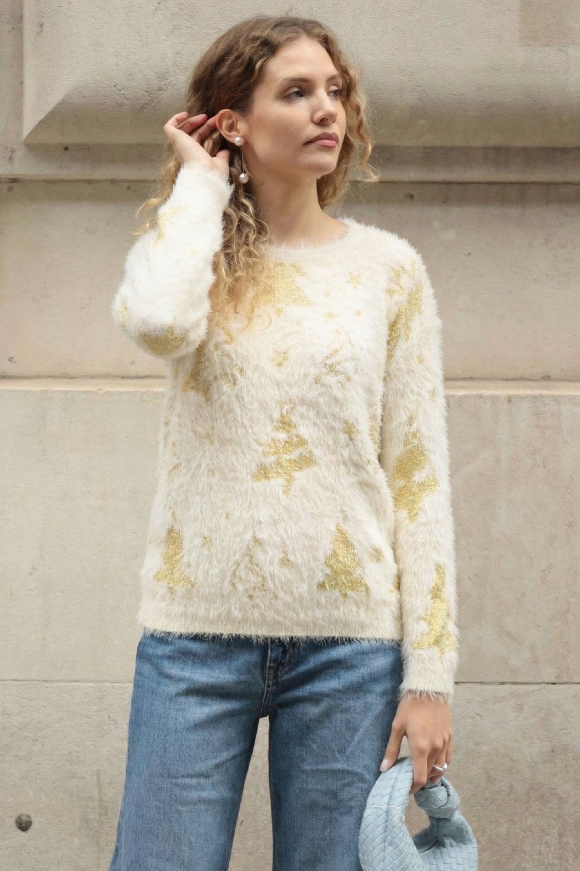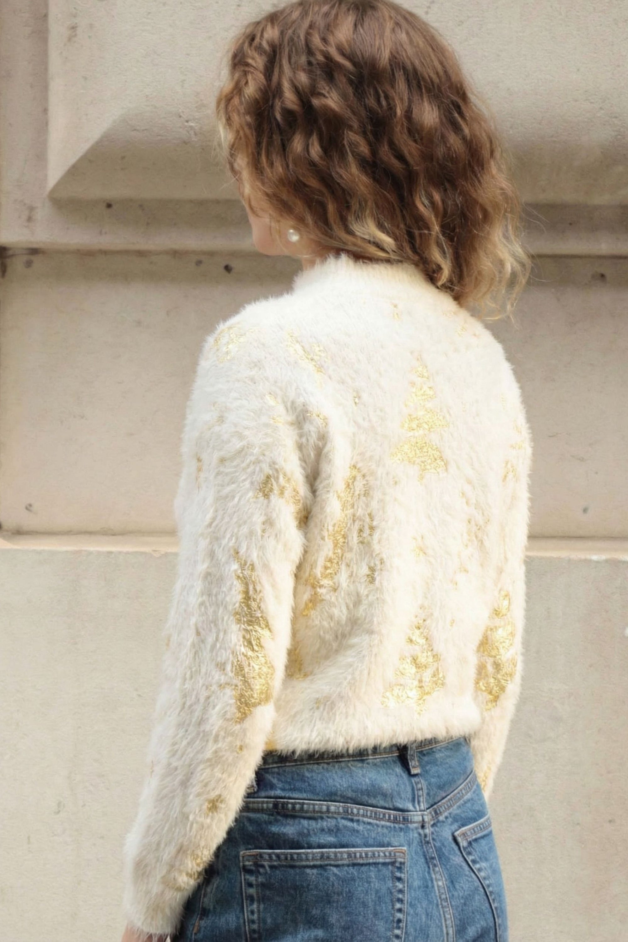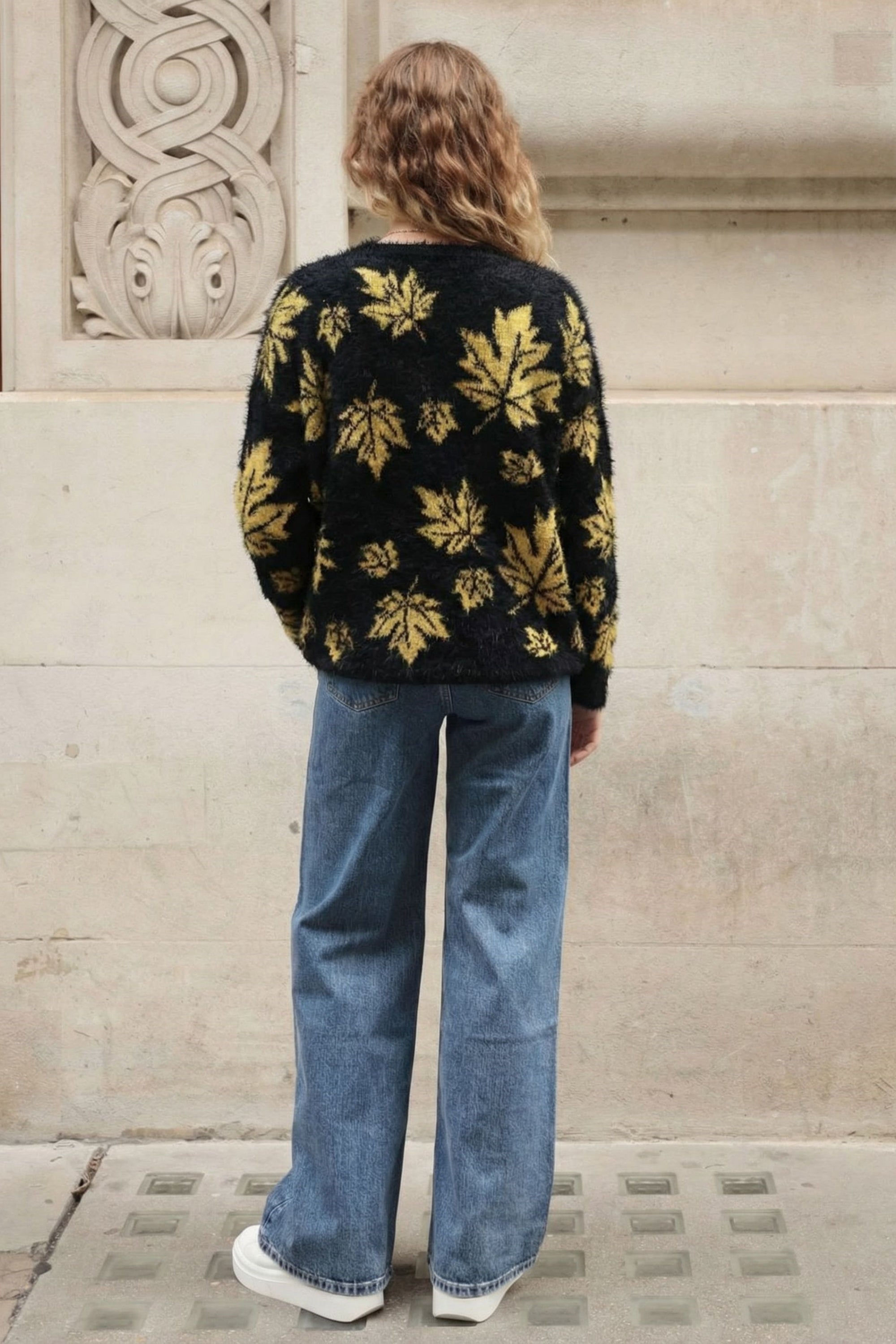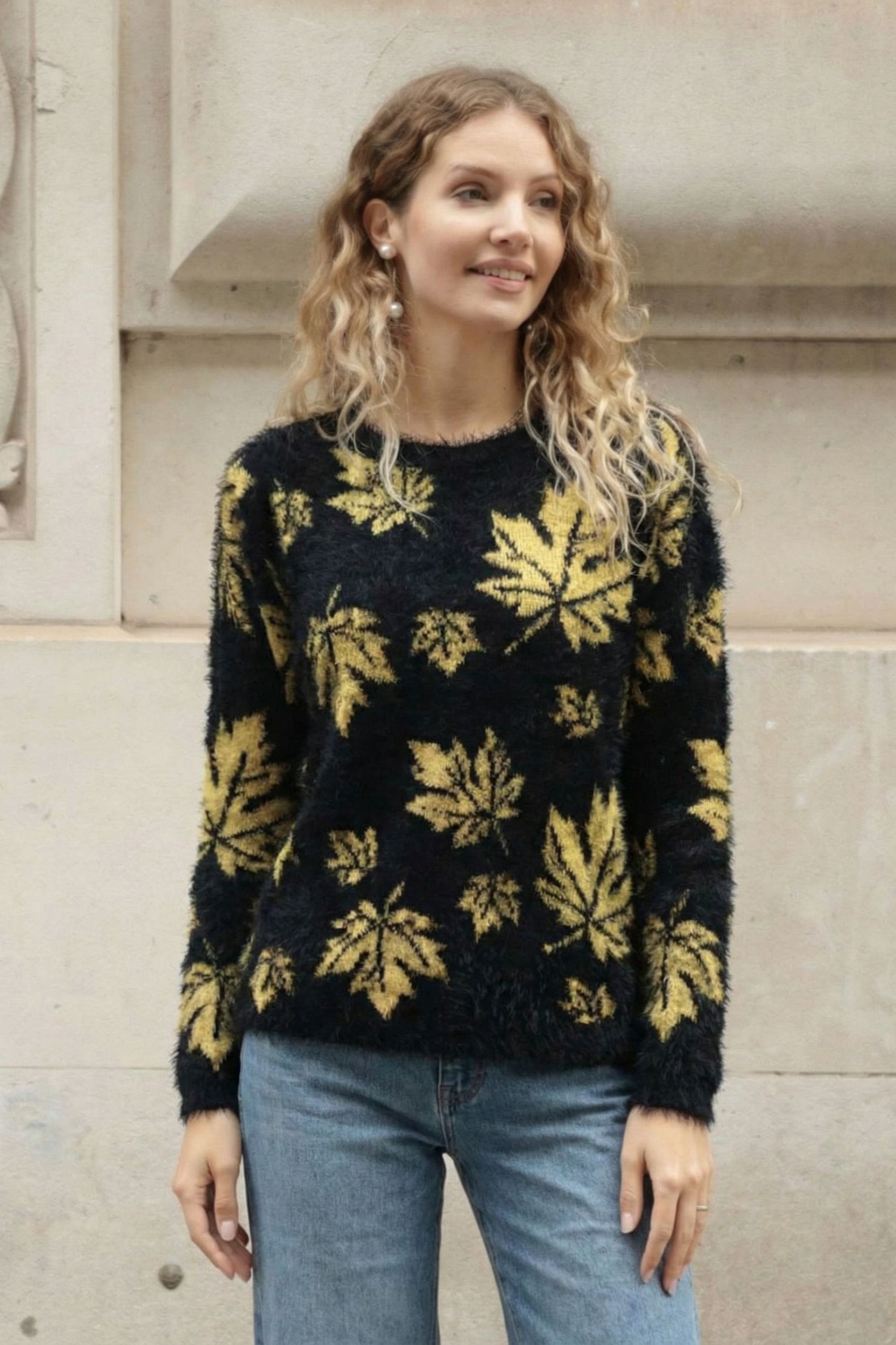 Leaves Print Neon Colour Fluffy Jumper (Yellow)