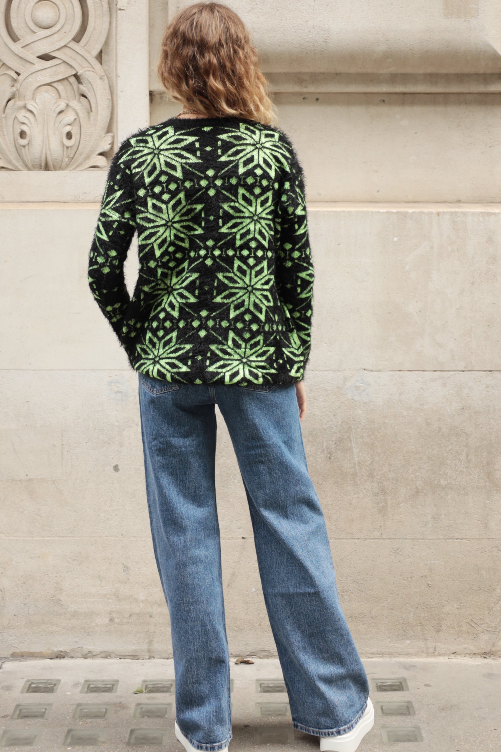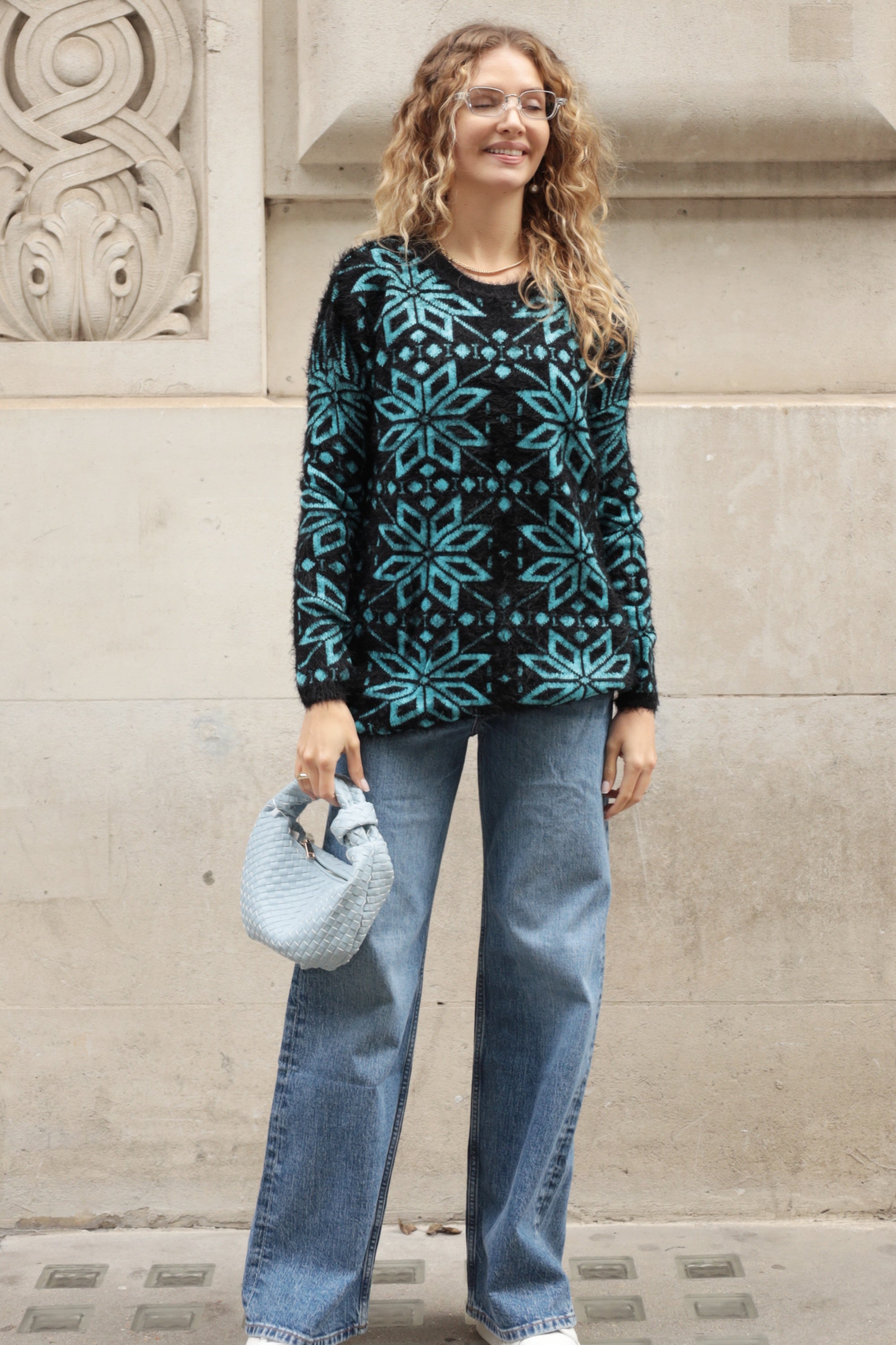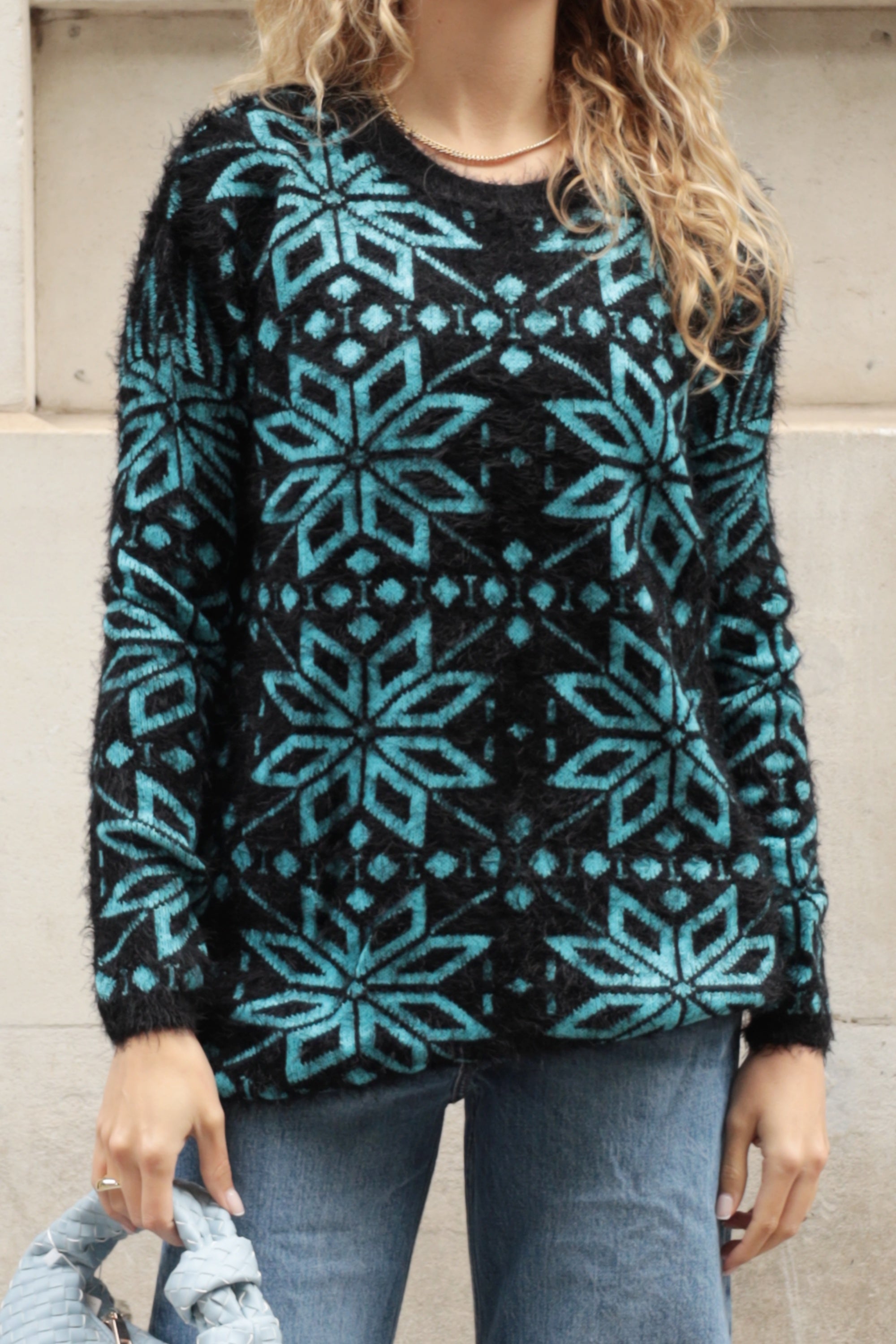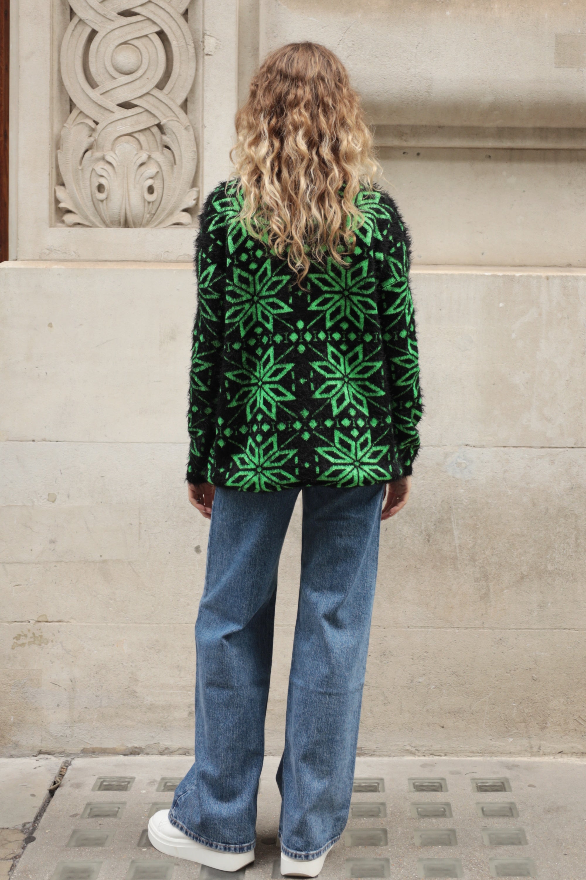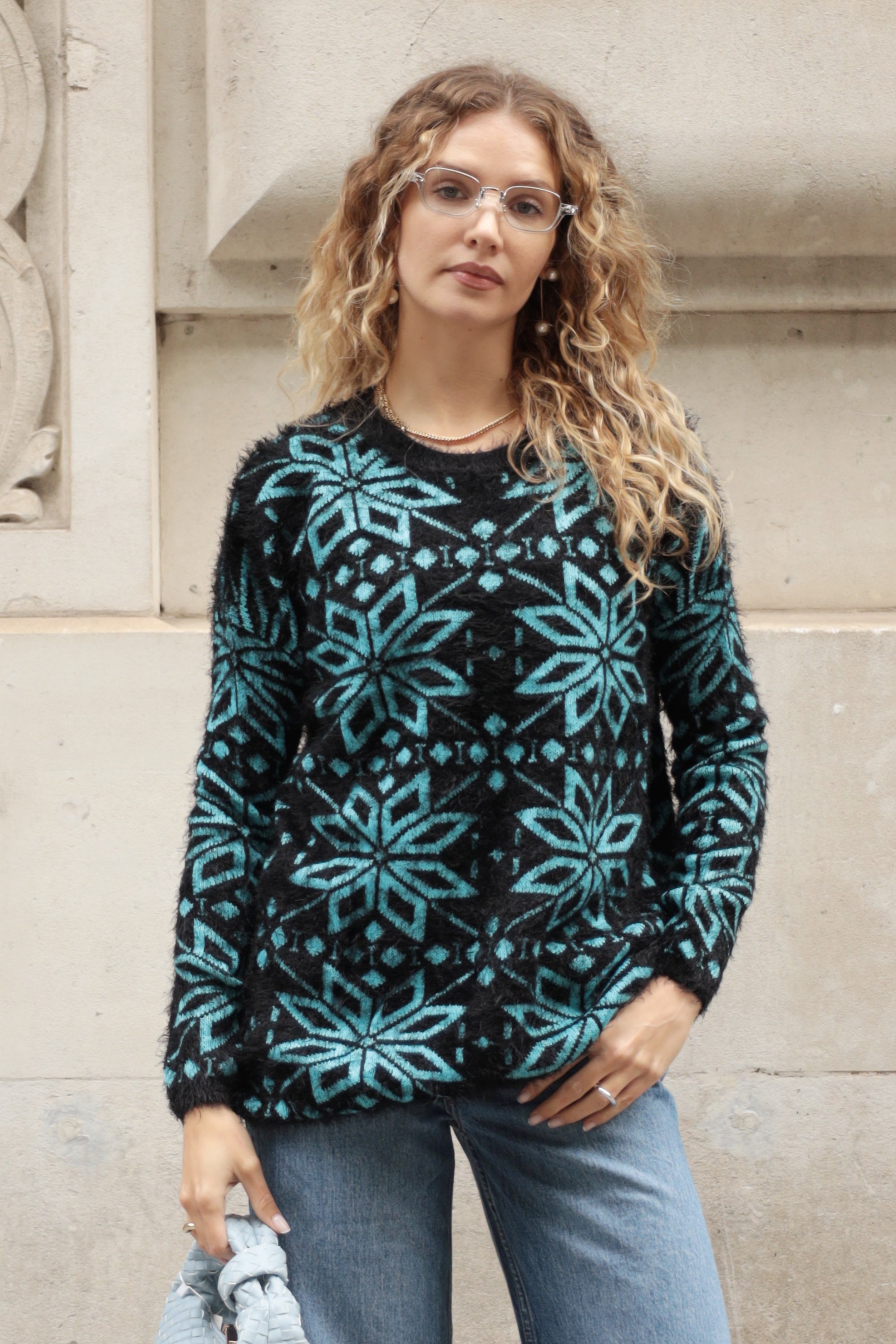 Fluffy snowflake Print Christmas Jumper(GREEN)