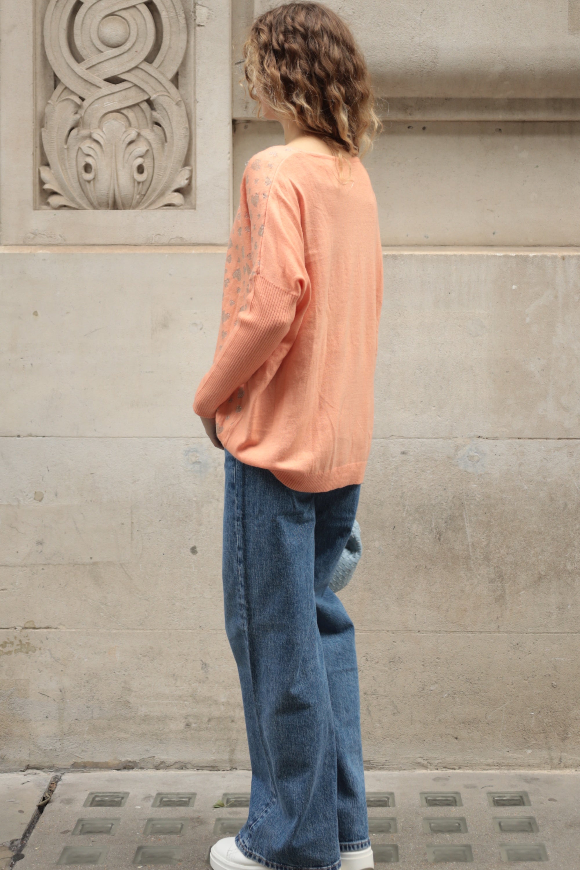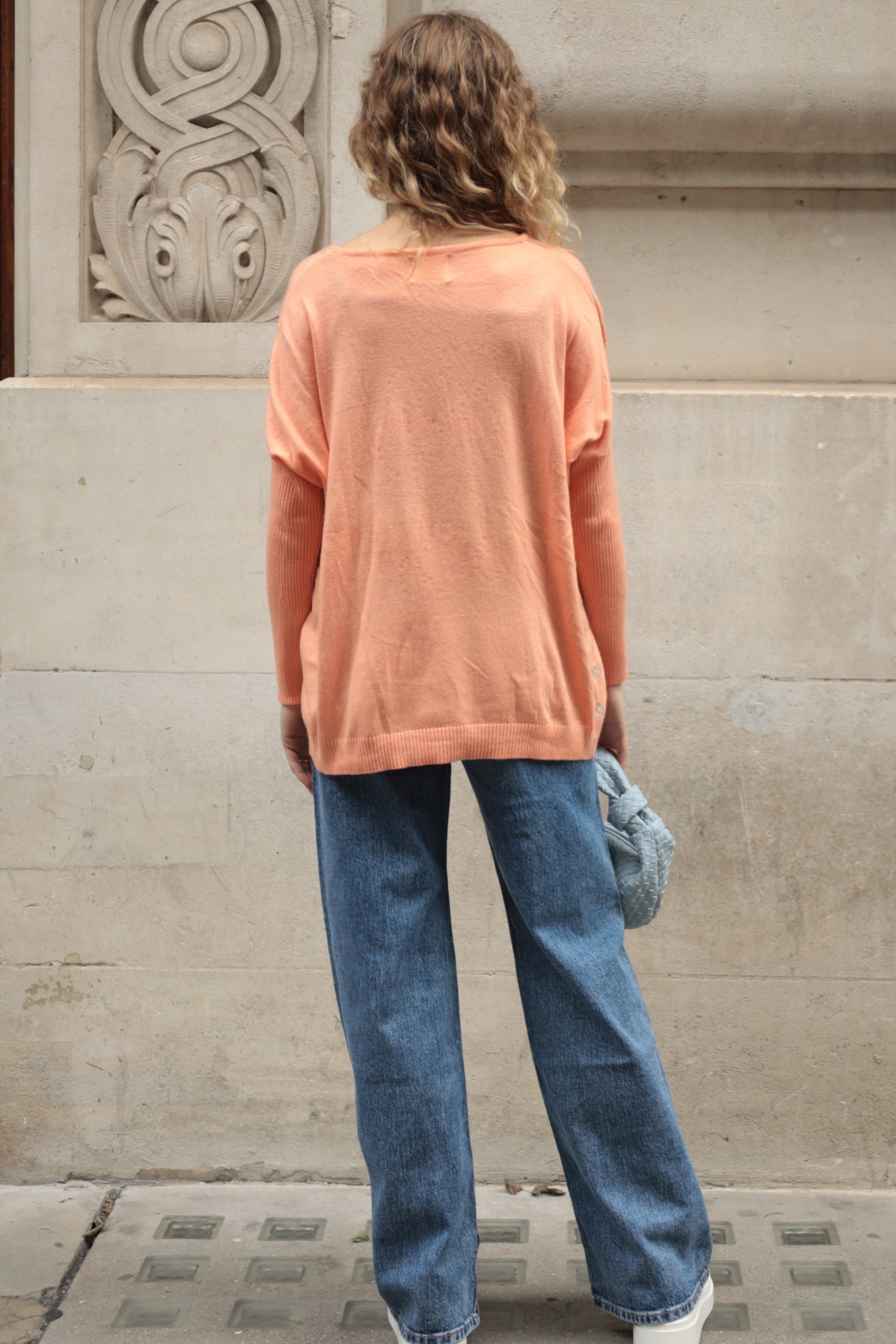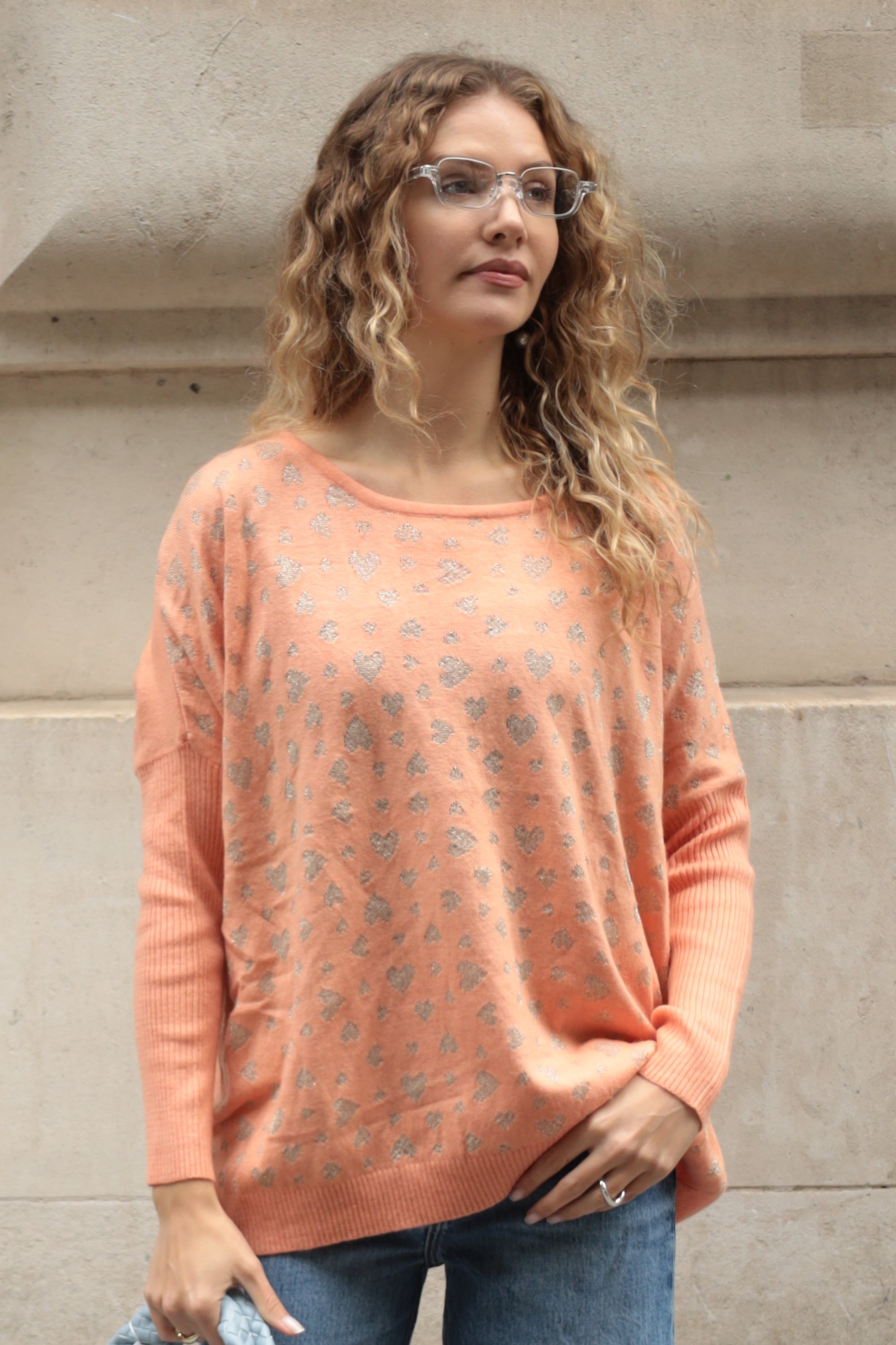 Stripe Print Neon Colour Soft Fluffy Jumper (Orange)