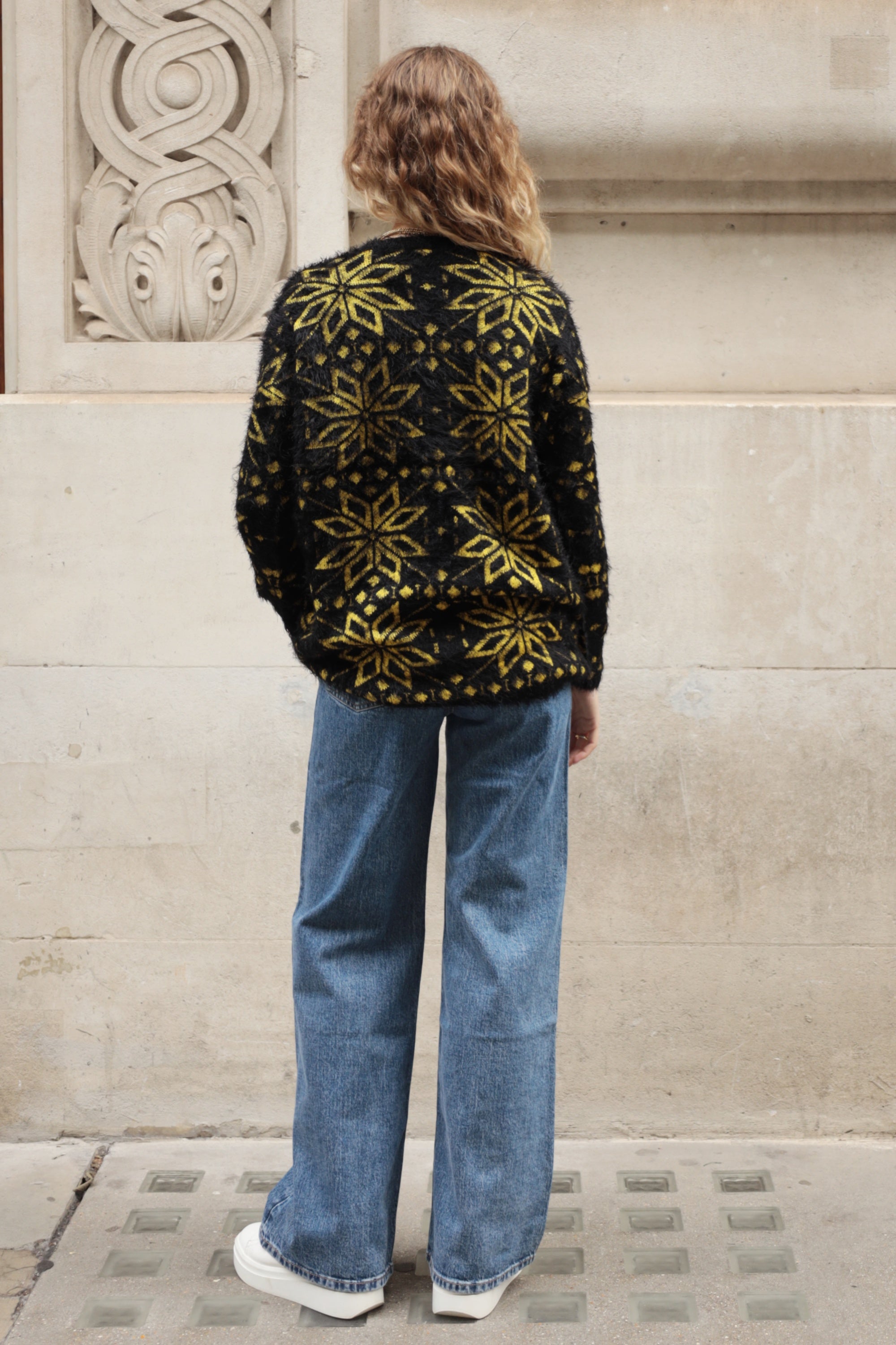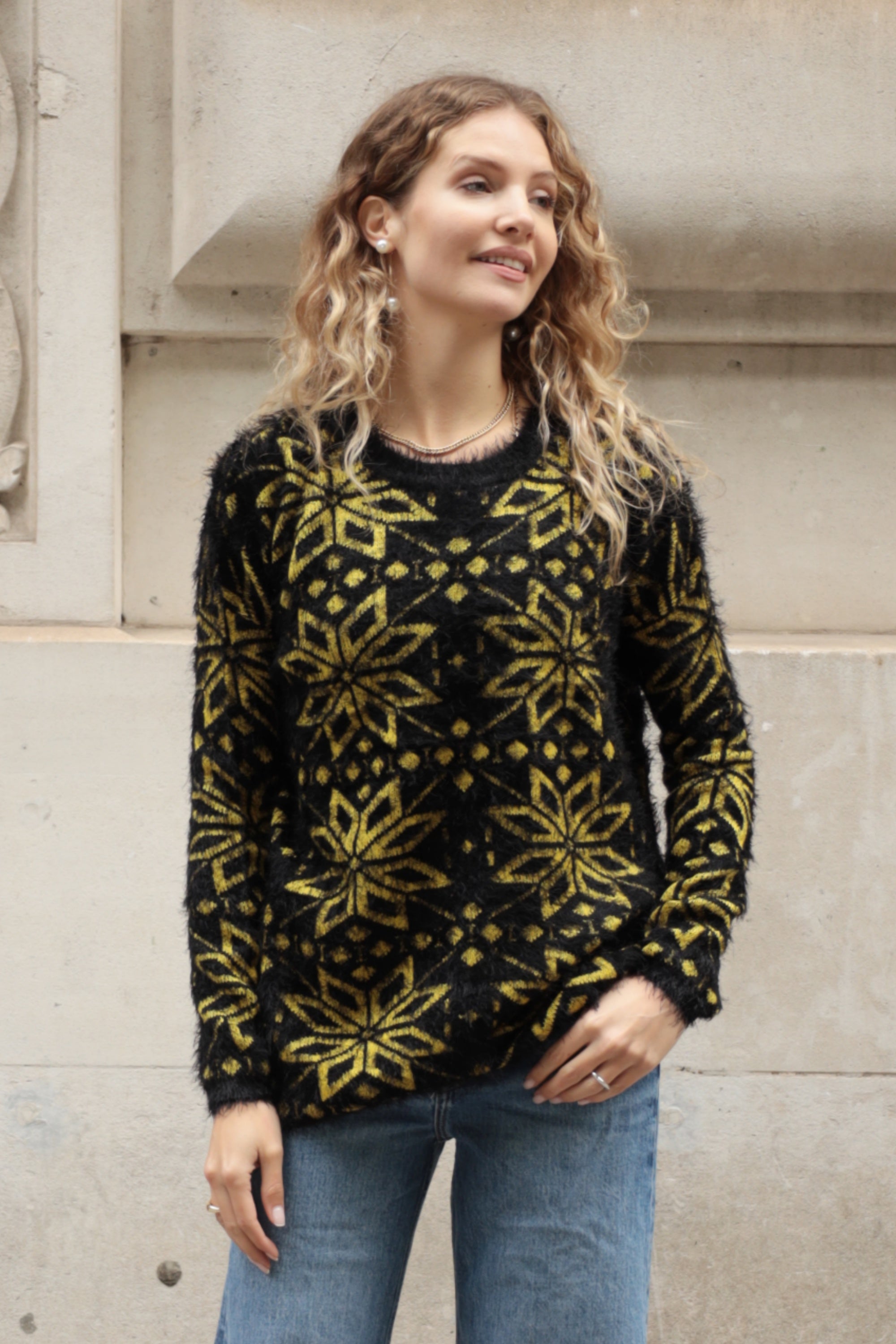 Fluffy snowflake Print Christmas Jumper (Yellow)