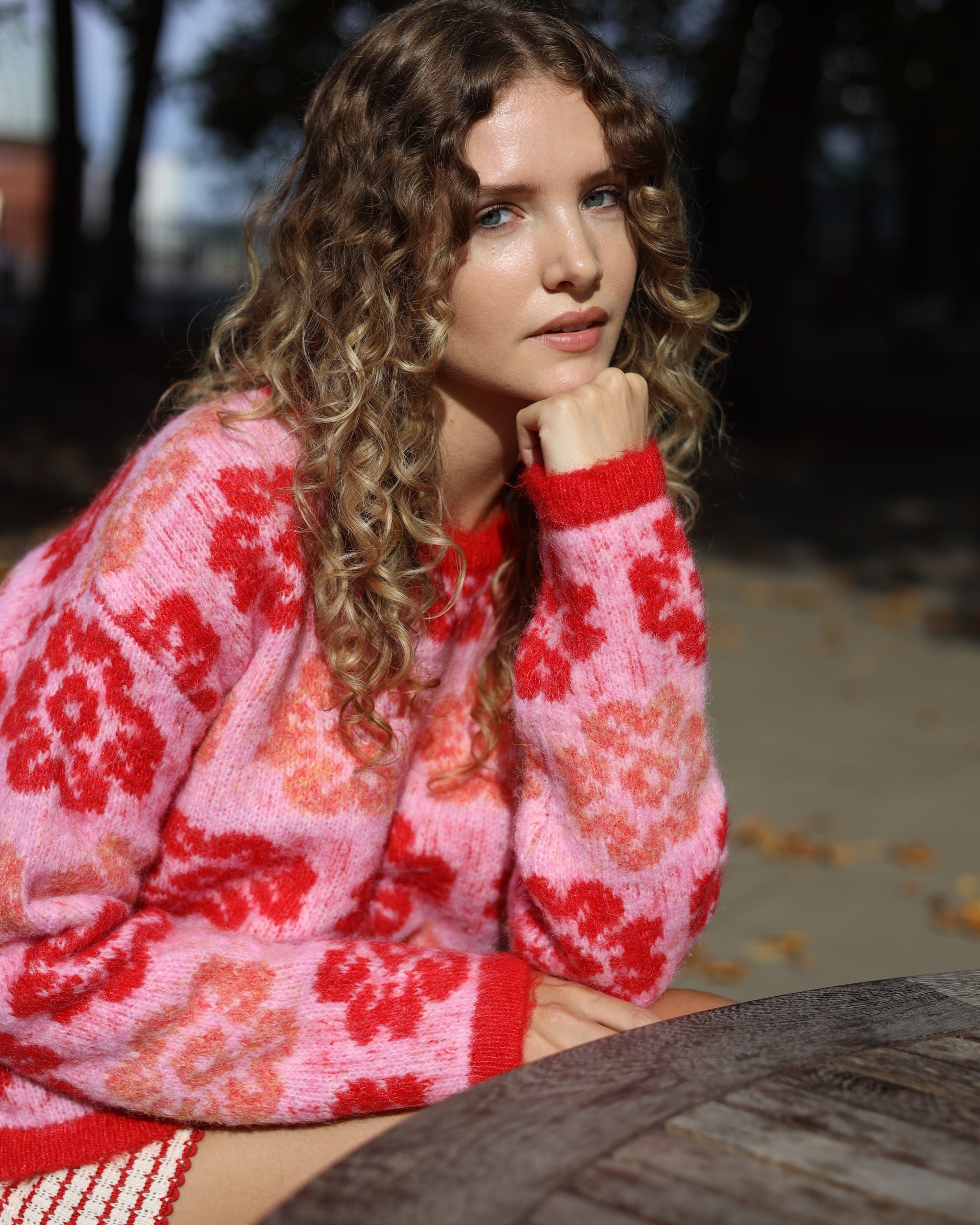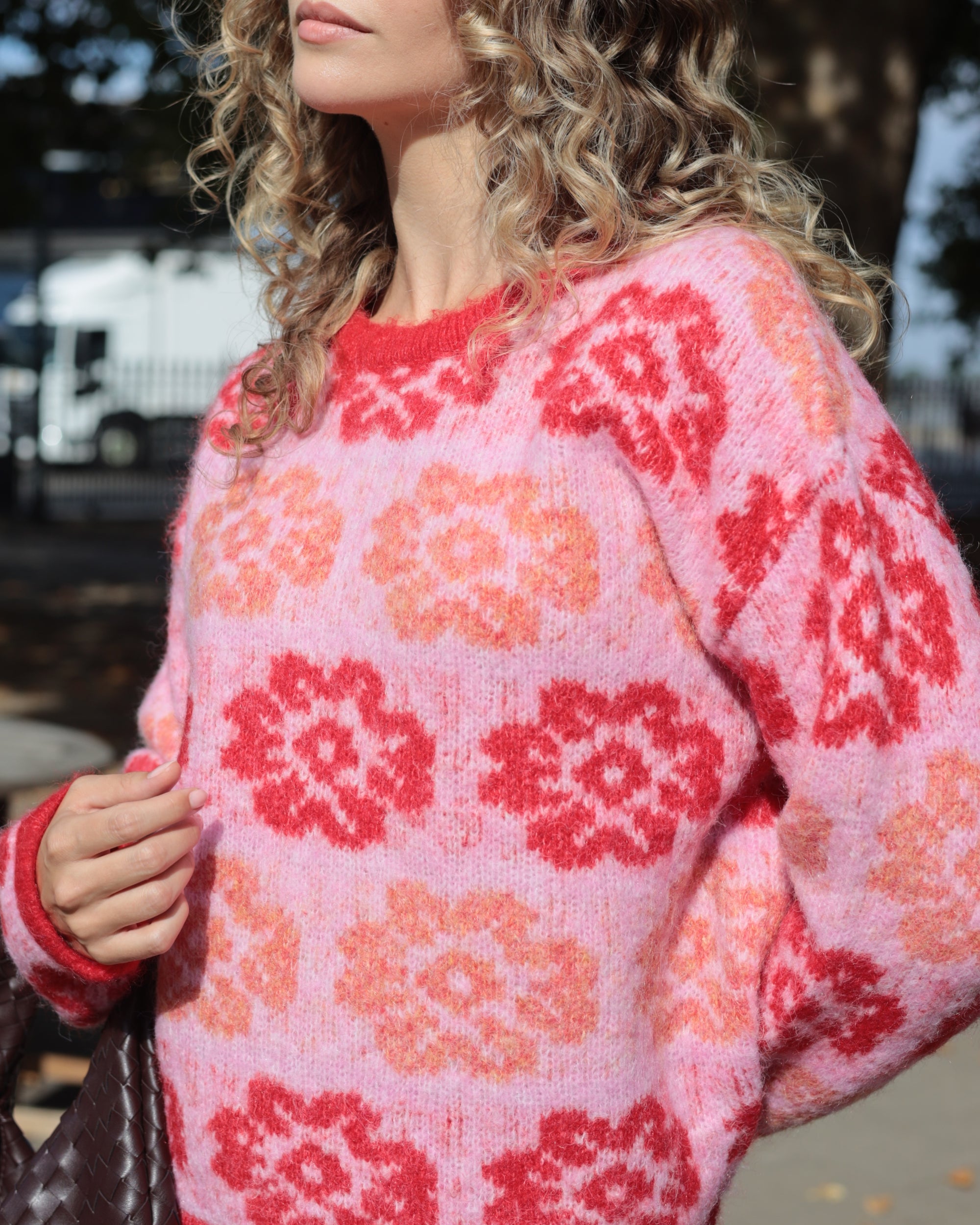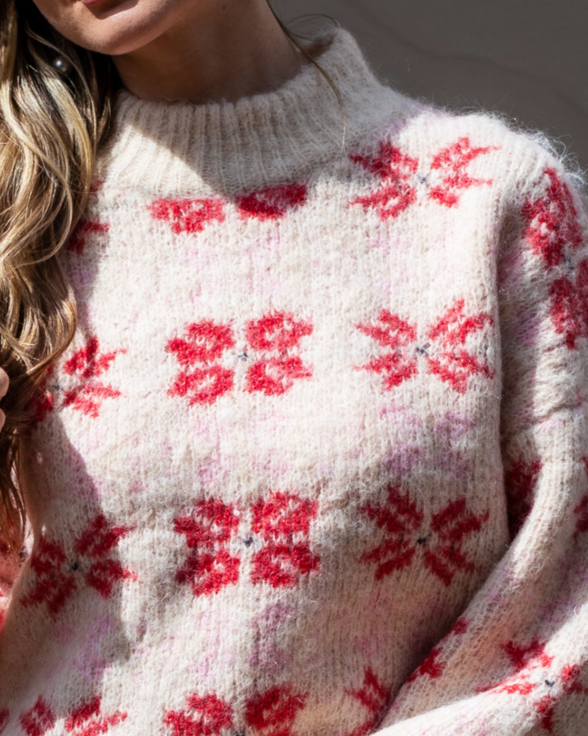 Classic & Cozy Snowflake Knit Jumper in Pink