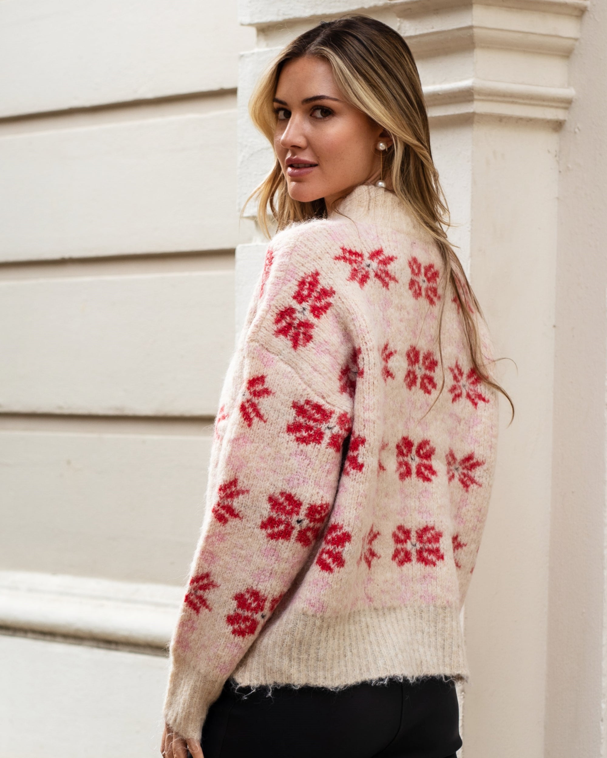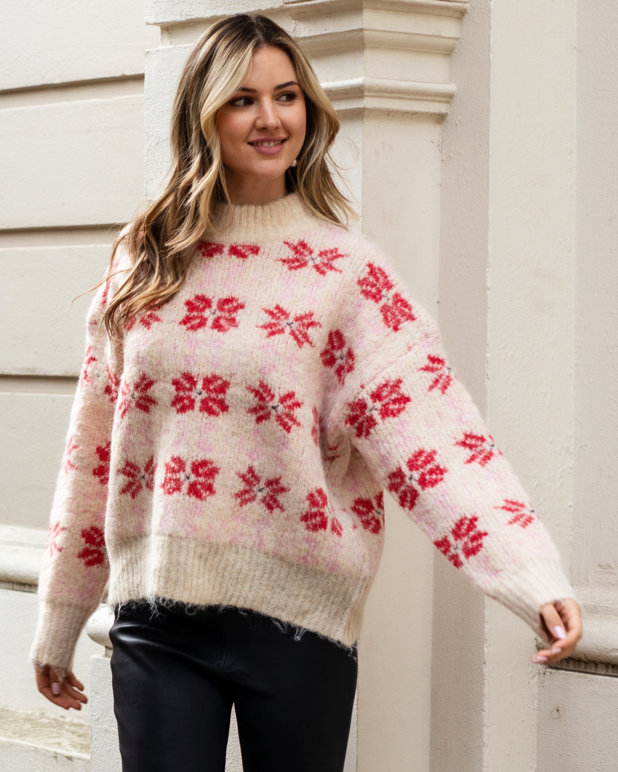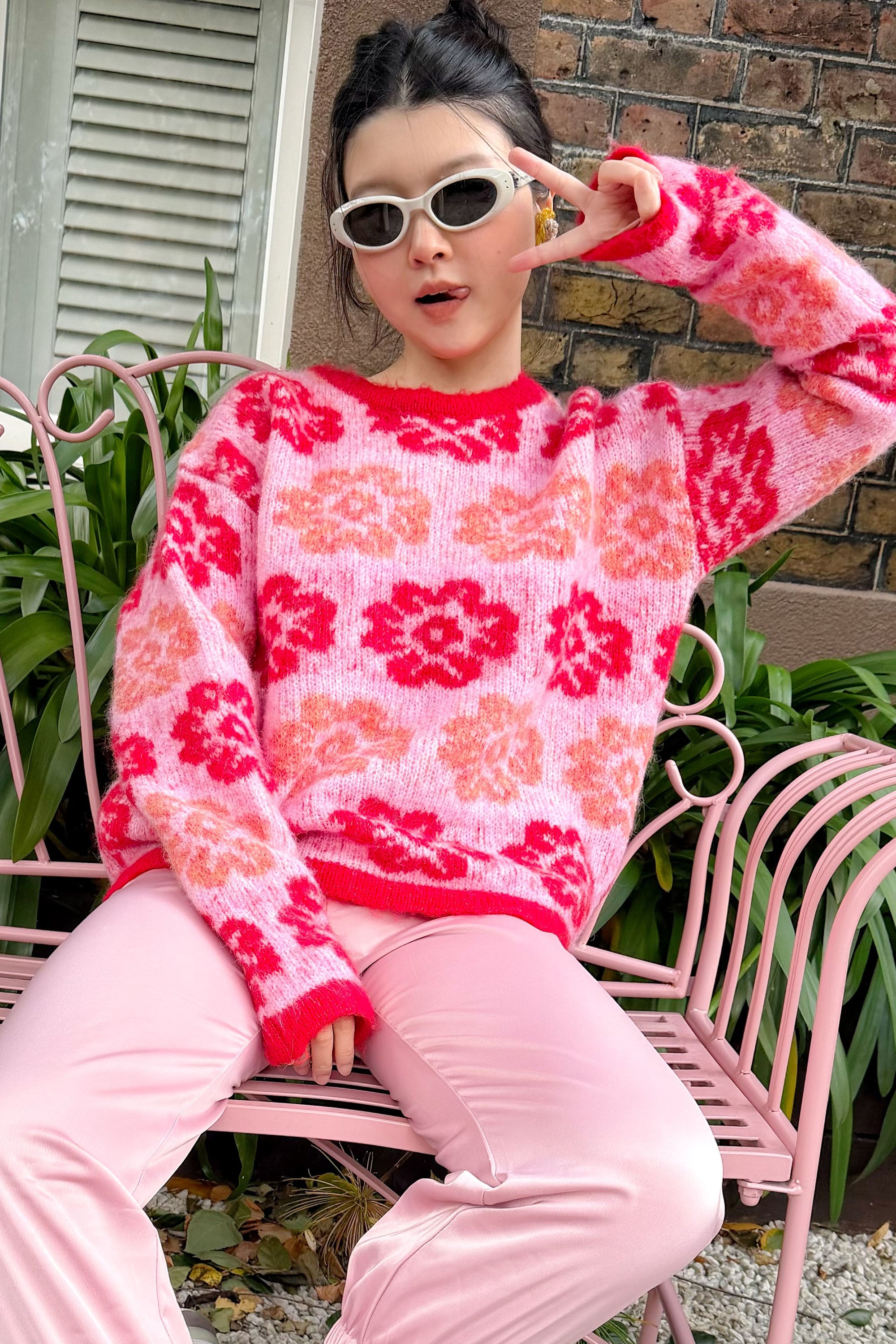 Classic & Cozy Snowflake Knit Jumper in Pink