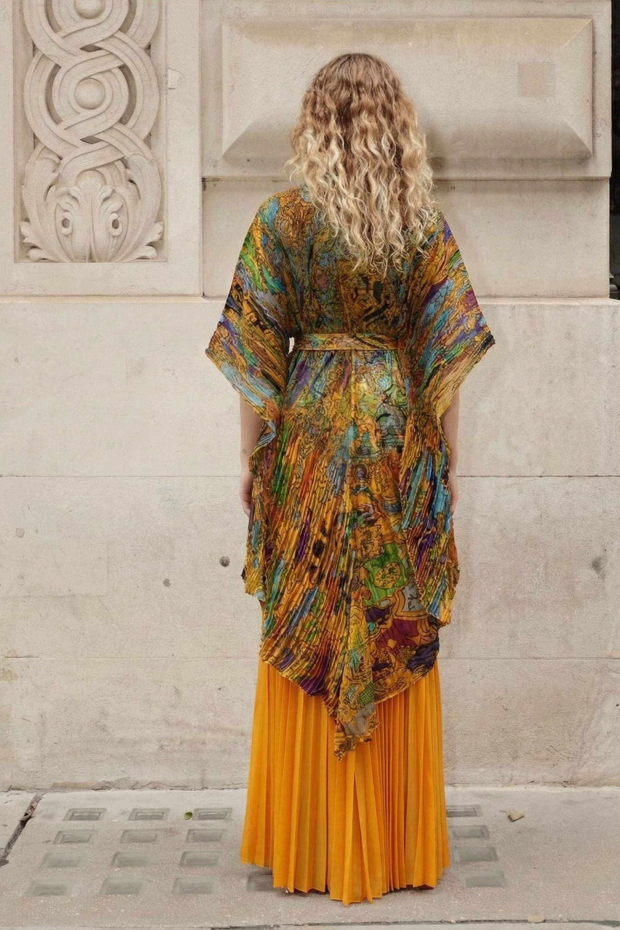 Oversized Full pleated Tie Dye color Cardigan in Red/Orange