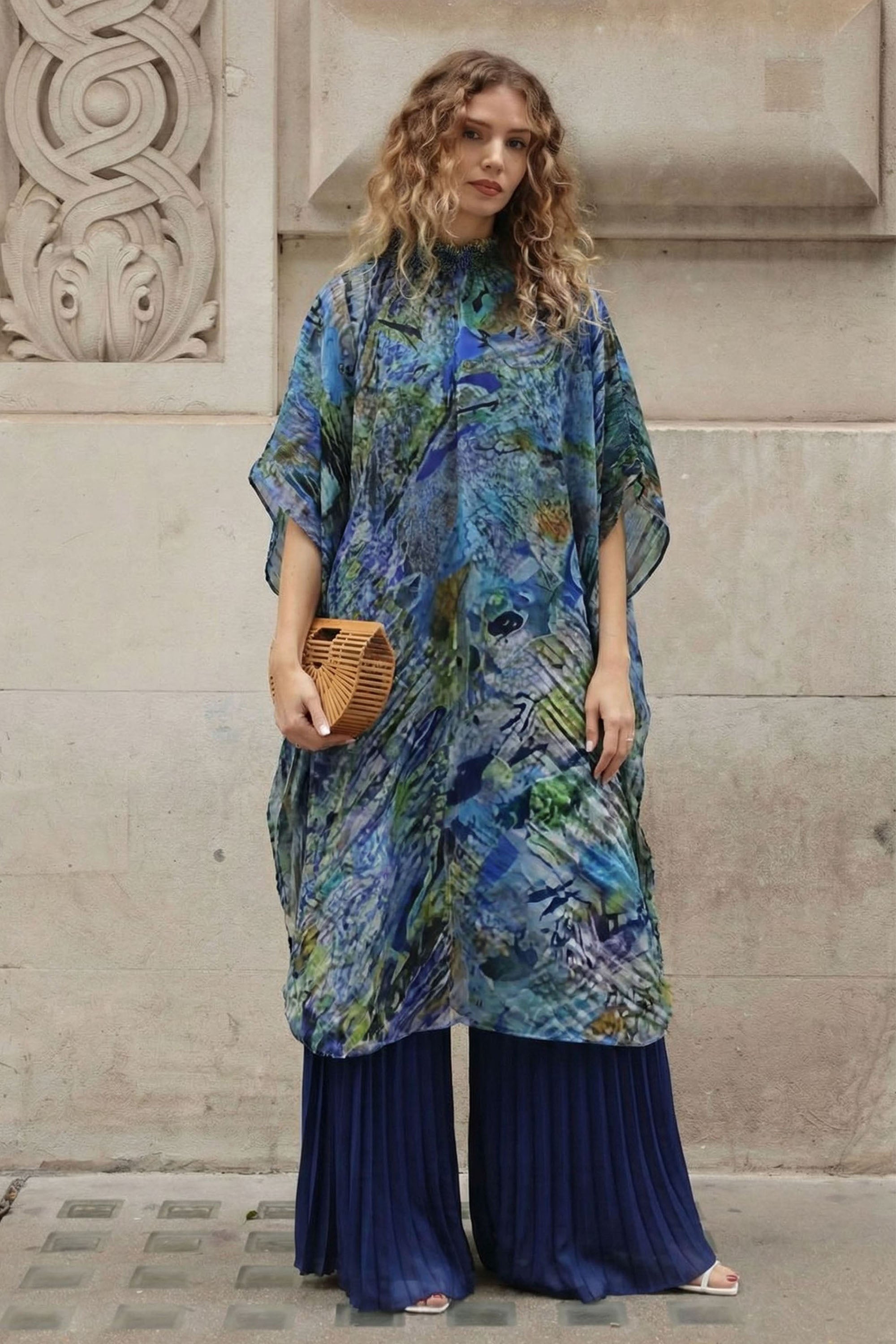 Full pleated Tie Dye Color top and trousers in Blue