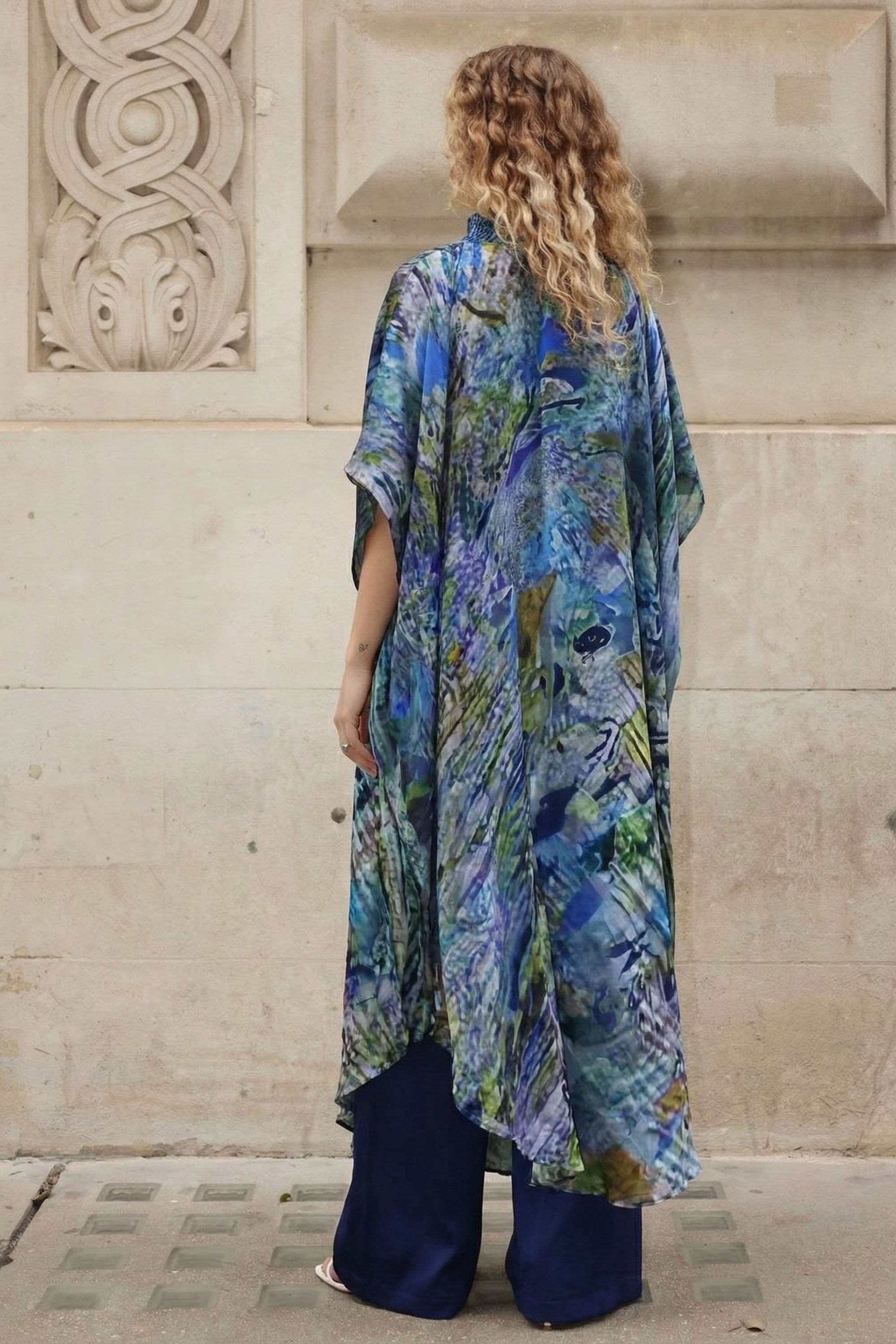 Oversized Full pleated Tie Dye color Cardigan in Blue/Black