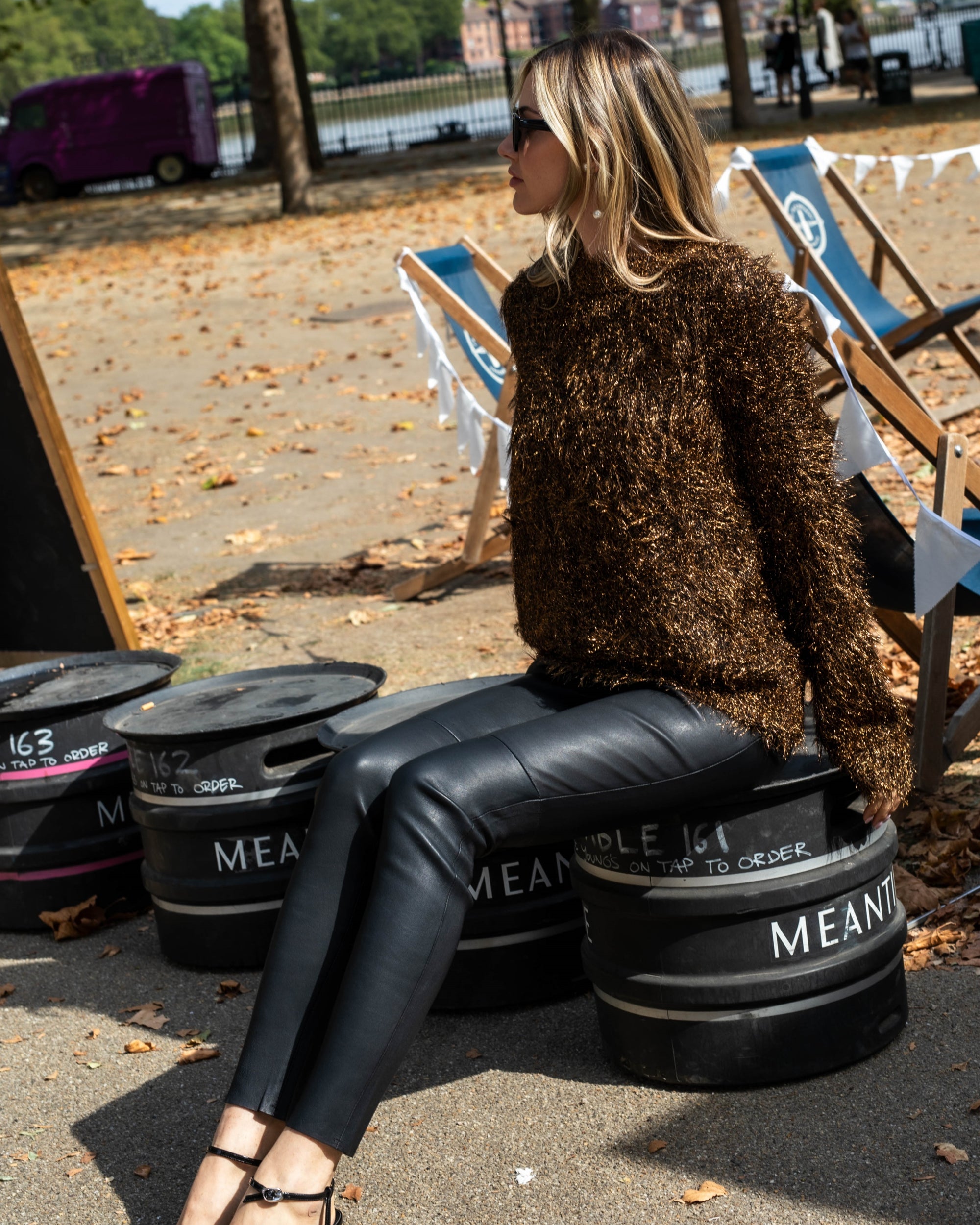 Pearl Bead Pointelle knit bodycon midi dress in Beige