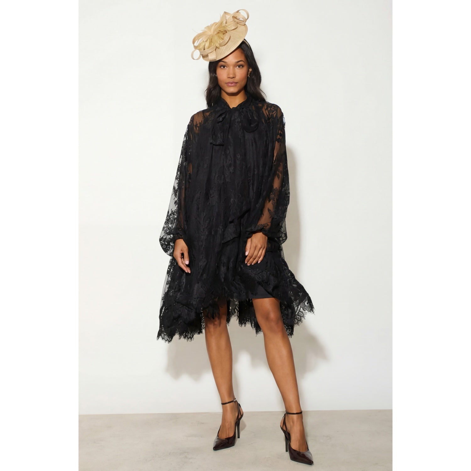 Rose Floral Tie-Neck Oversized Midi Dress In Black