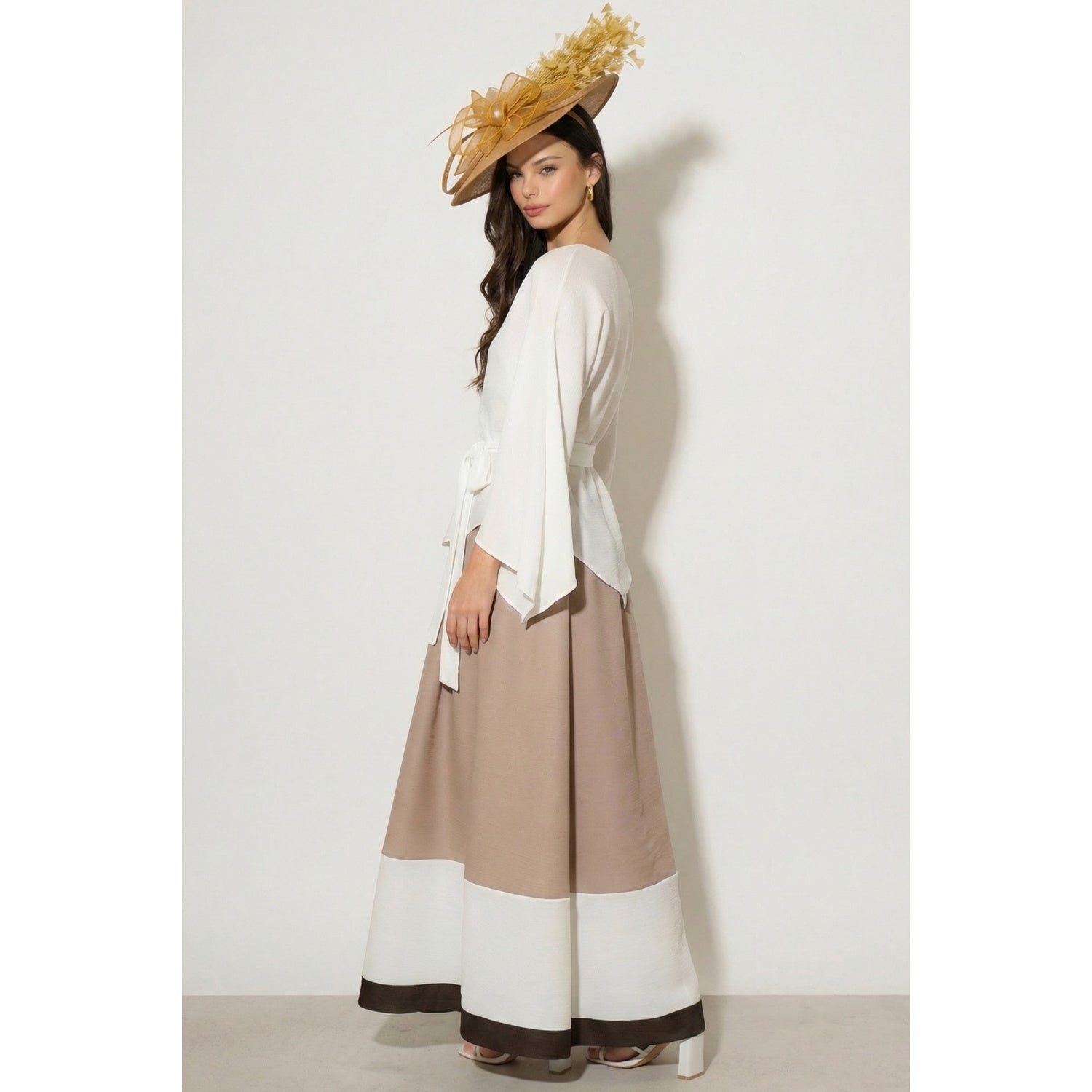 Pleated long dress with organza pleated cape sleeves in Light Pink