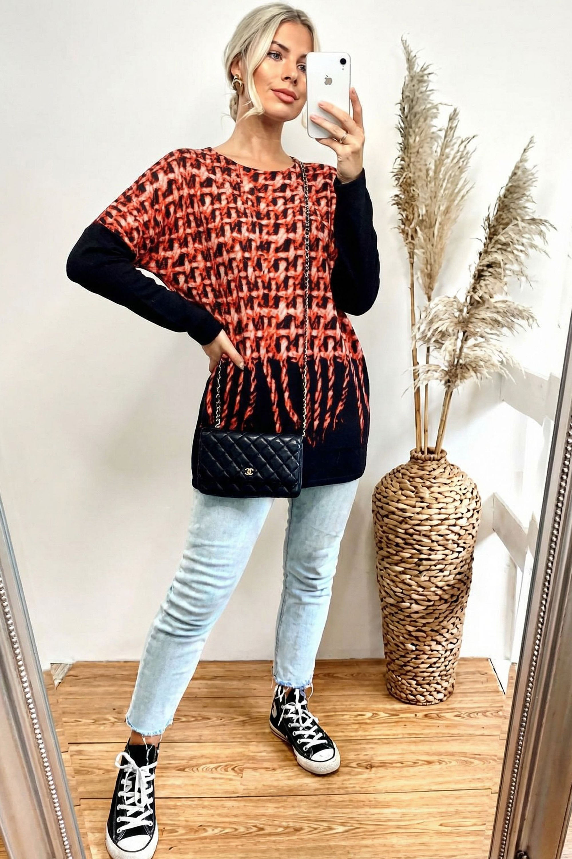 Star Striped Print Batwing Knitted Jumper Top (BLUE)