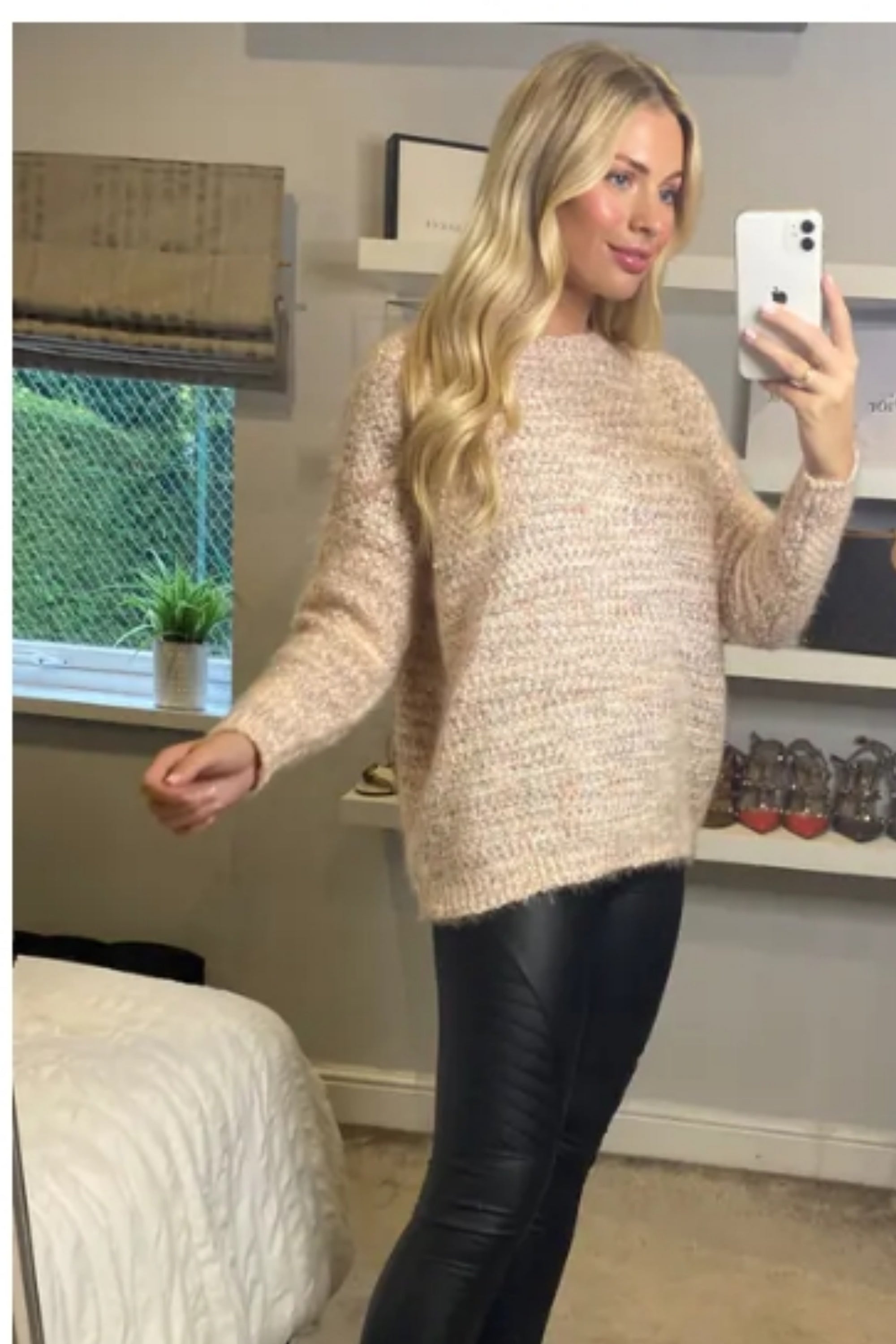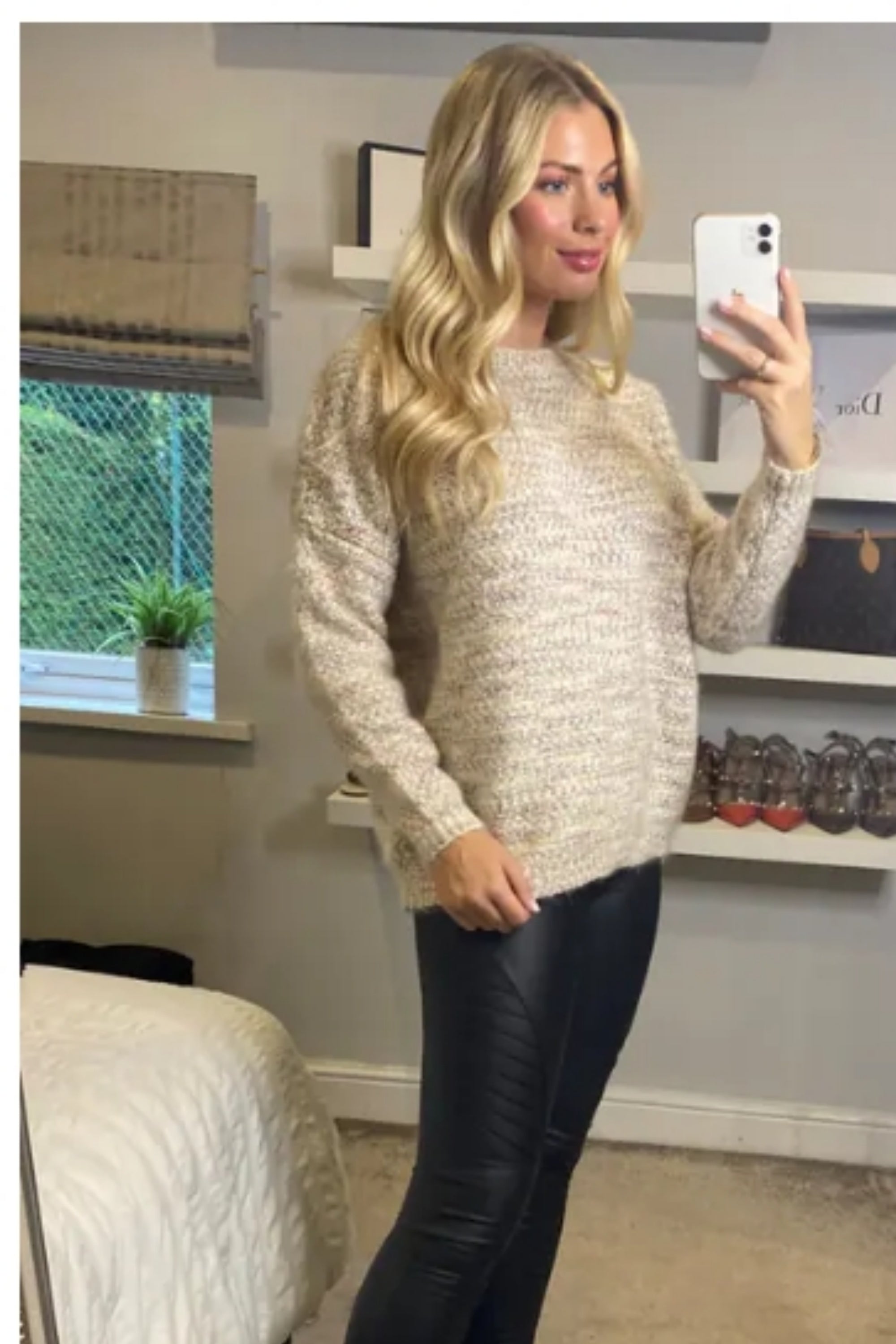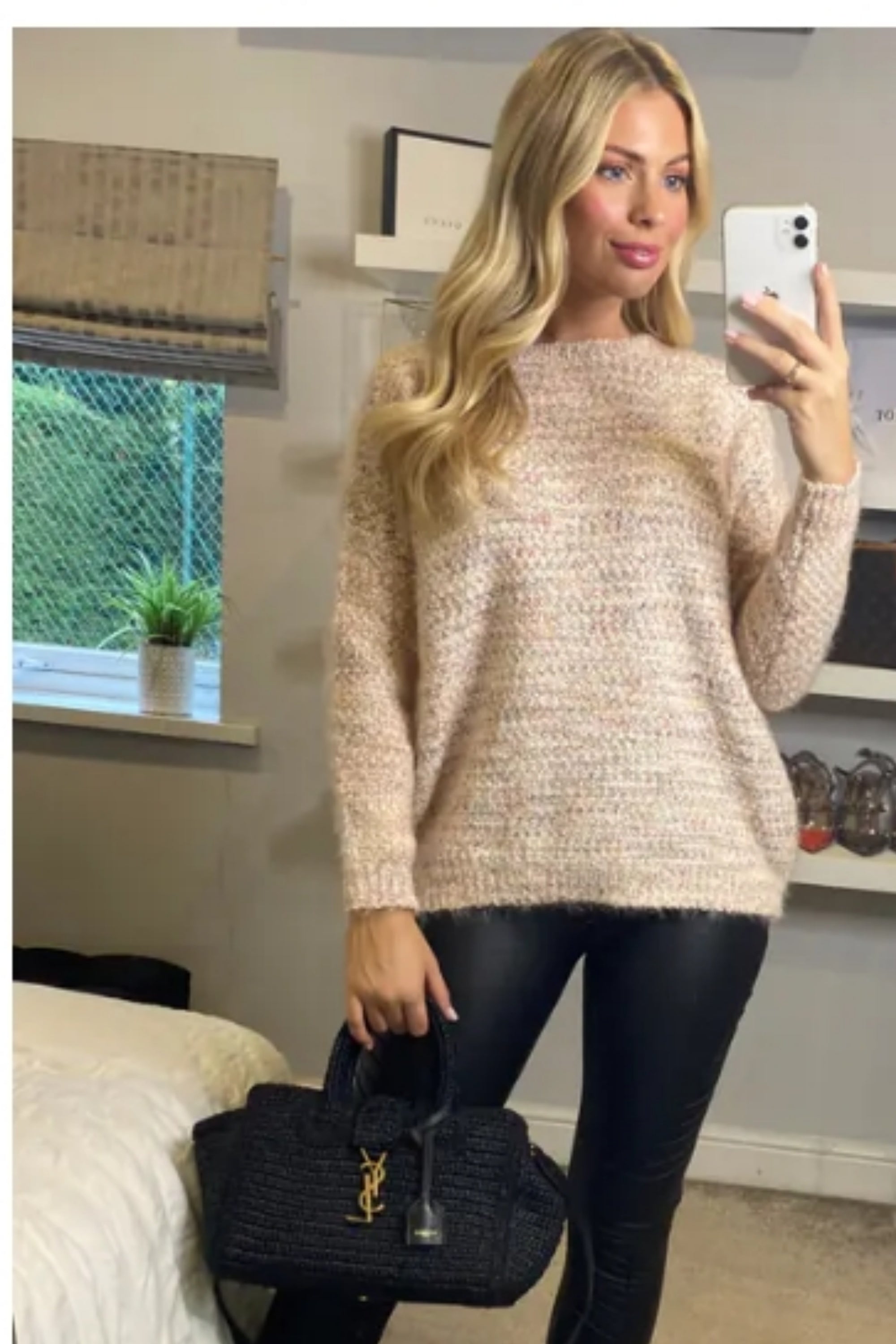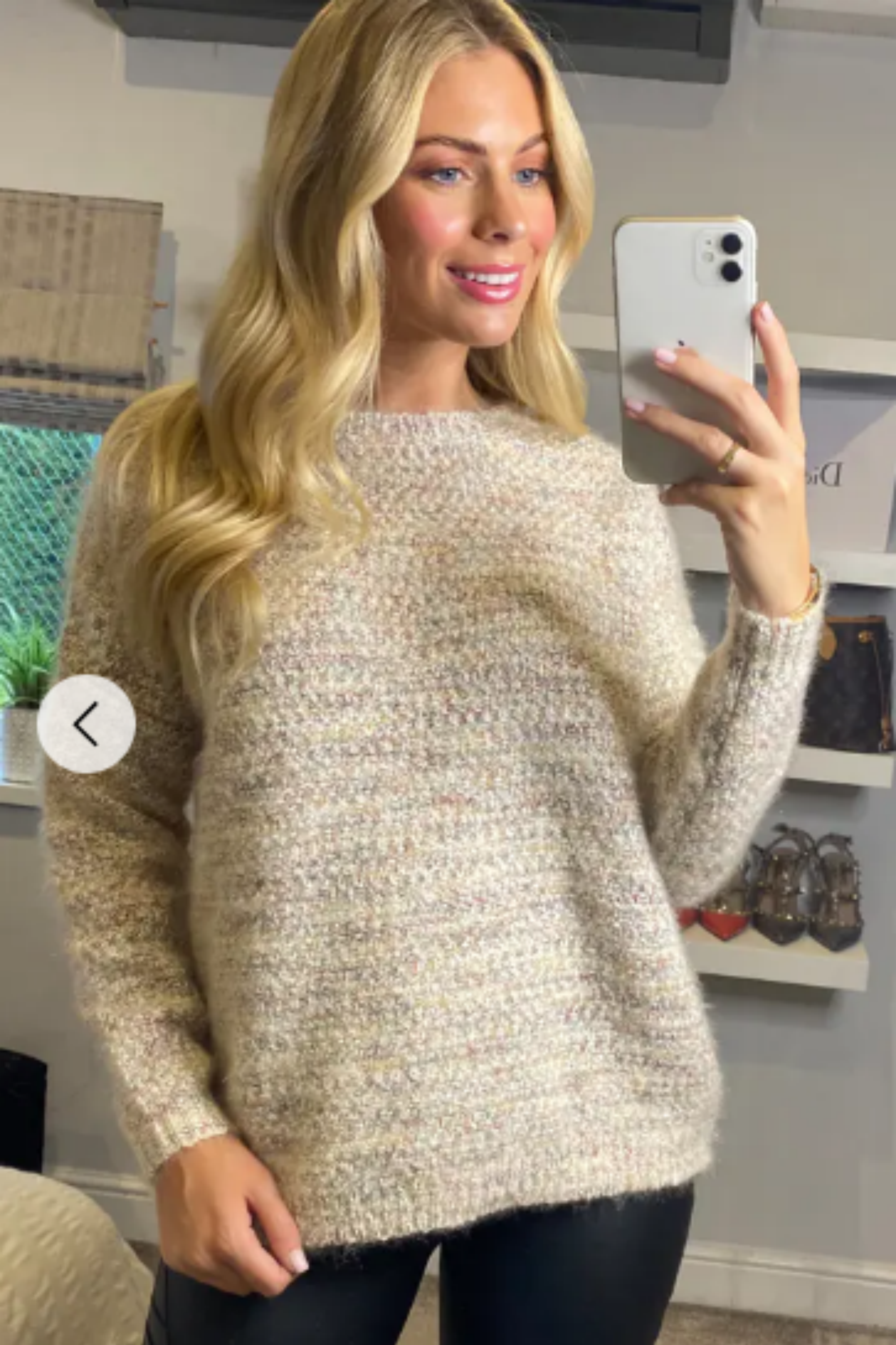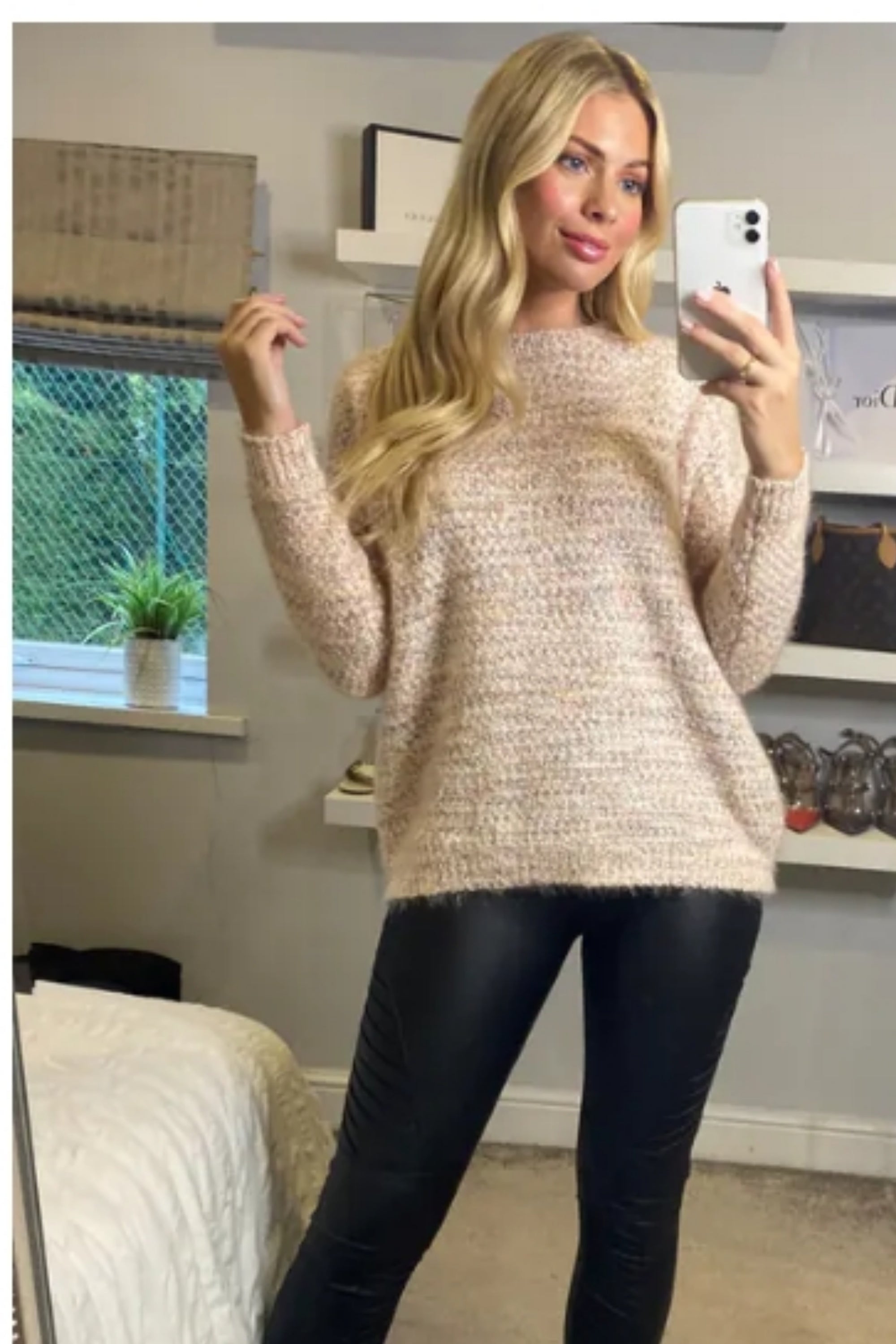 Knitted Plain Colour Brushed Bell Sleeves Jumper