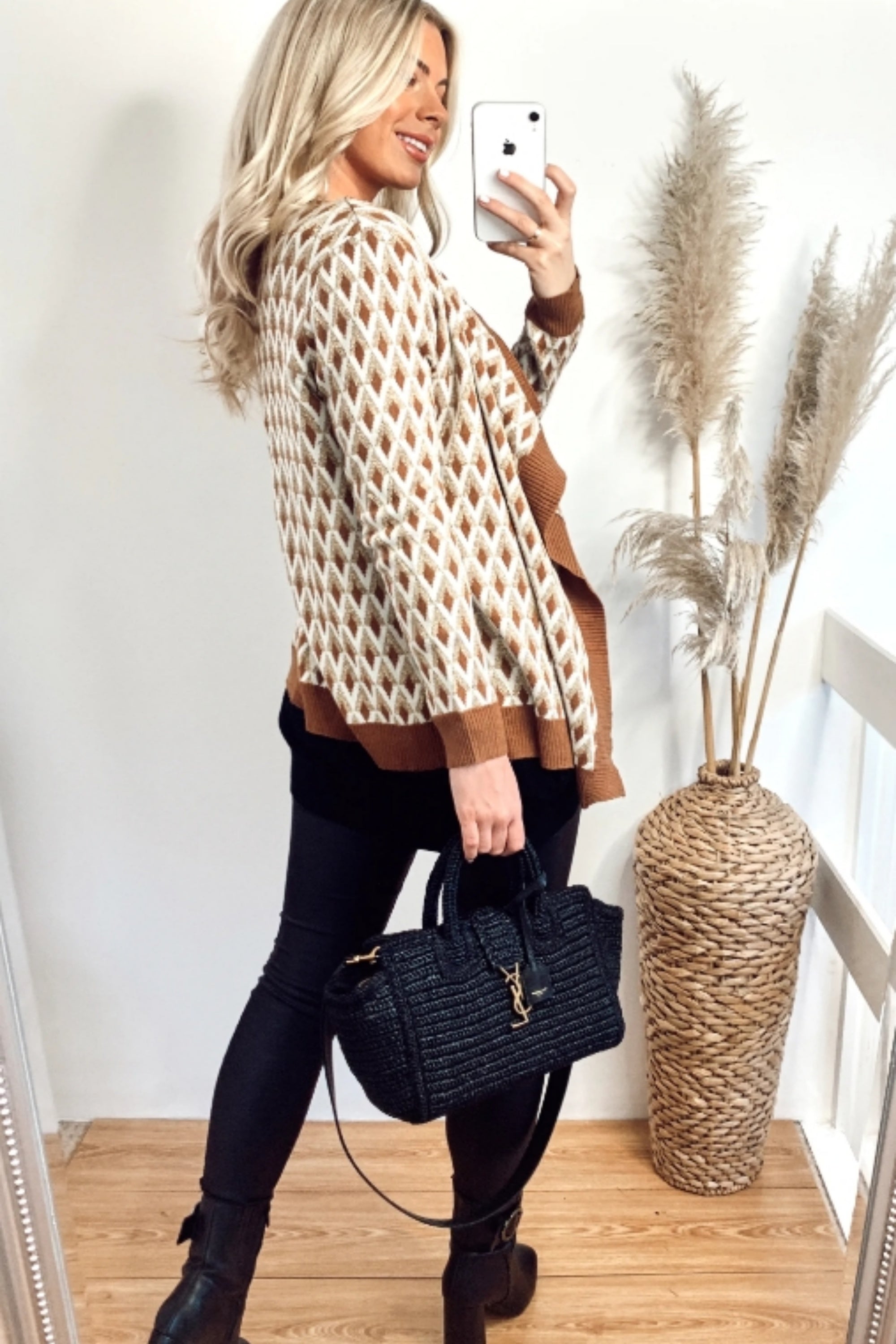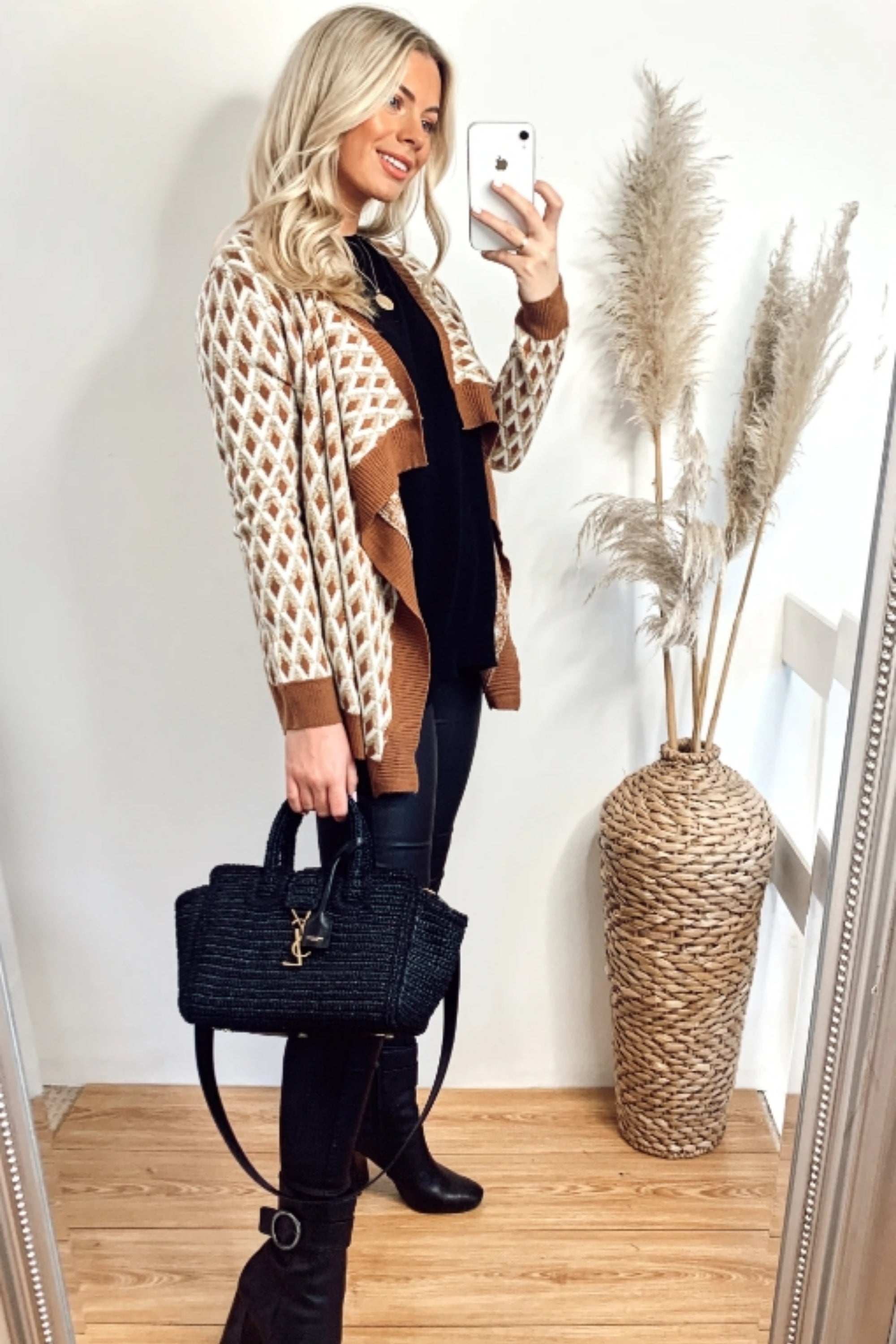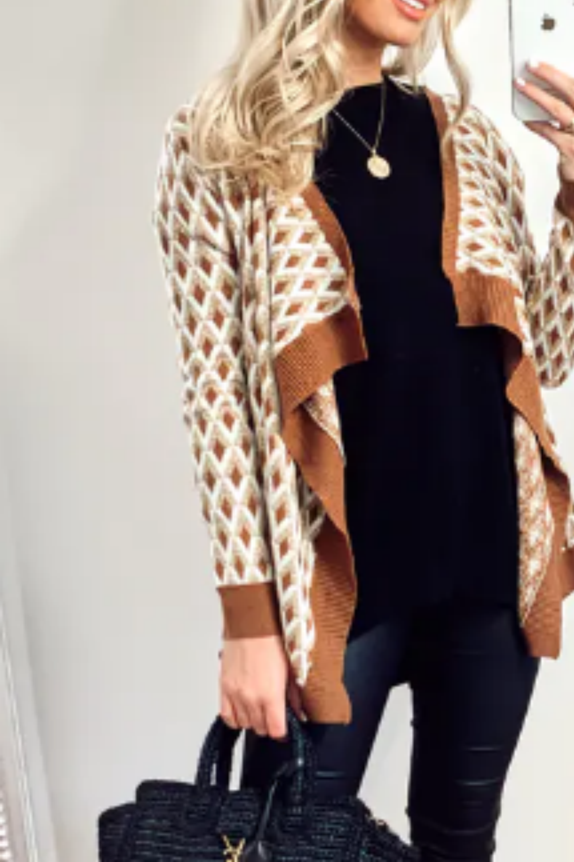 Black faux leather contrast fine knit jacket