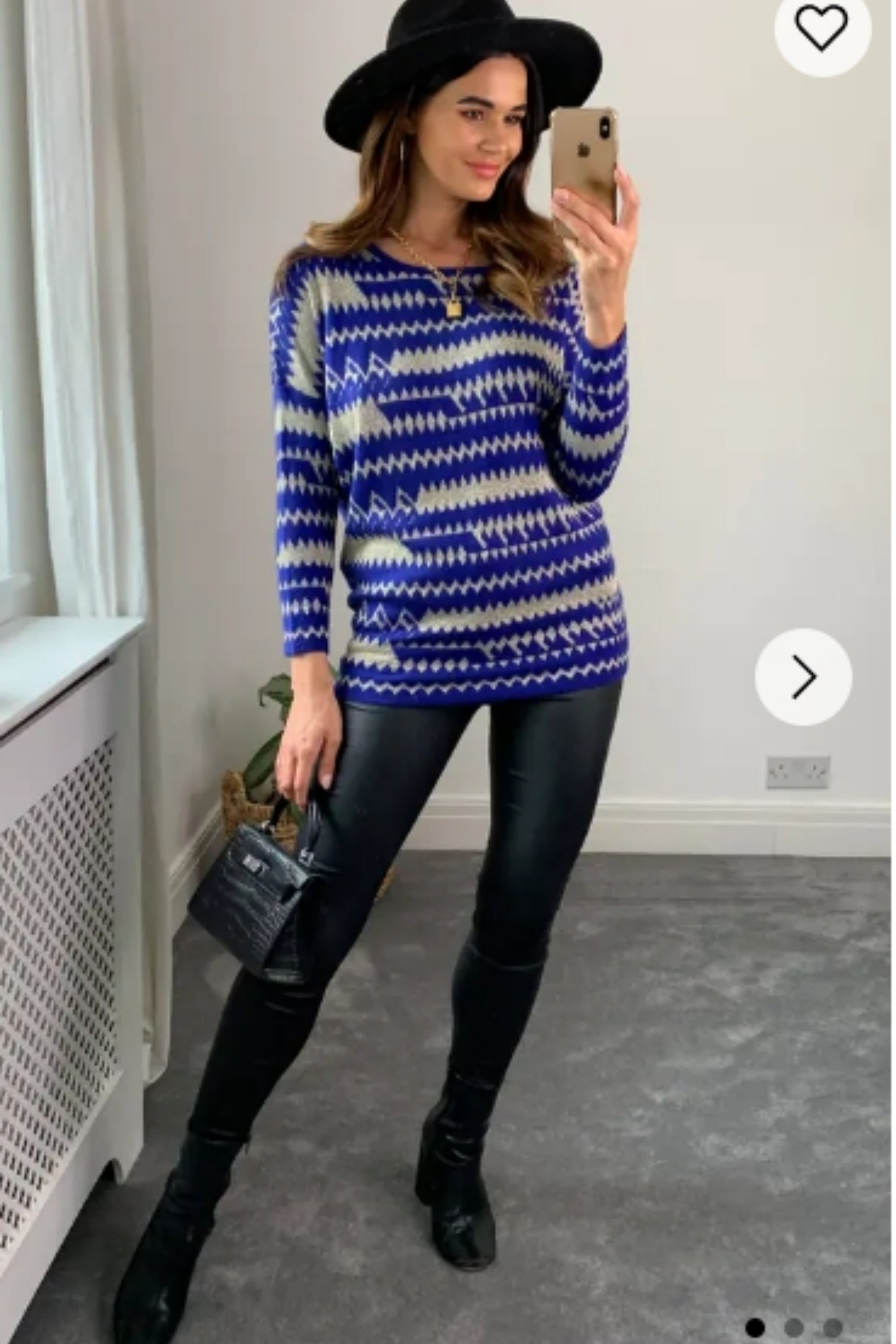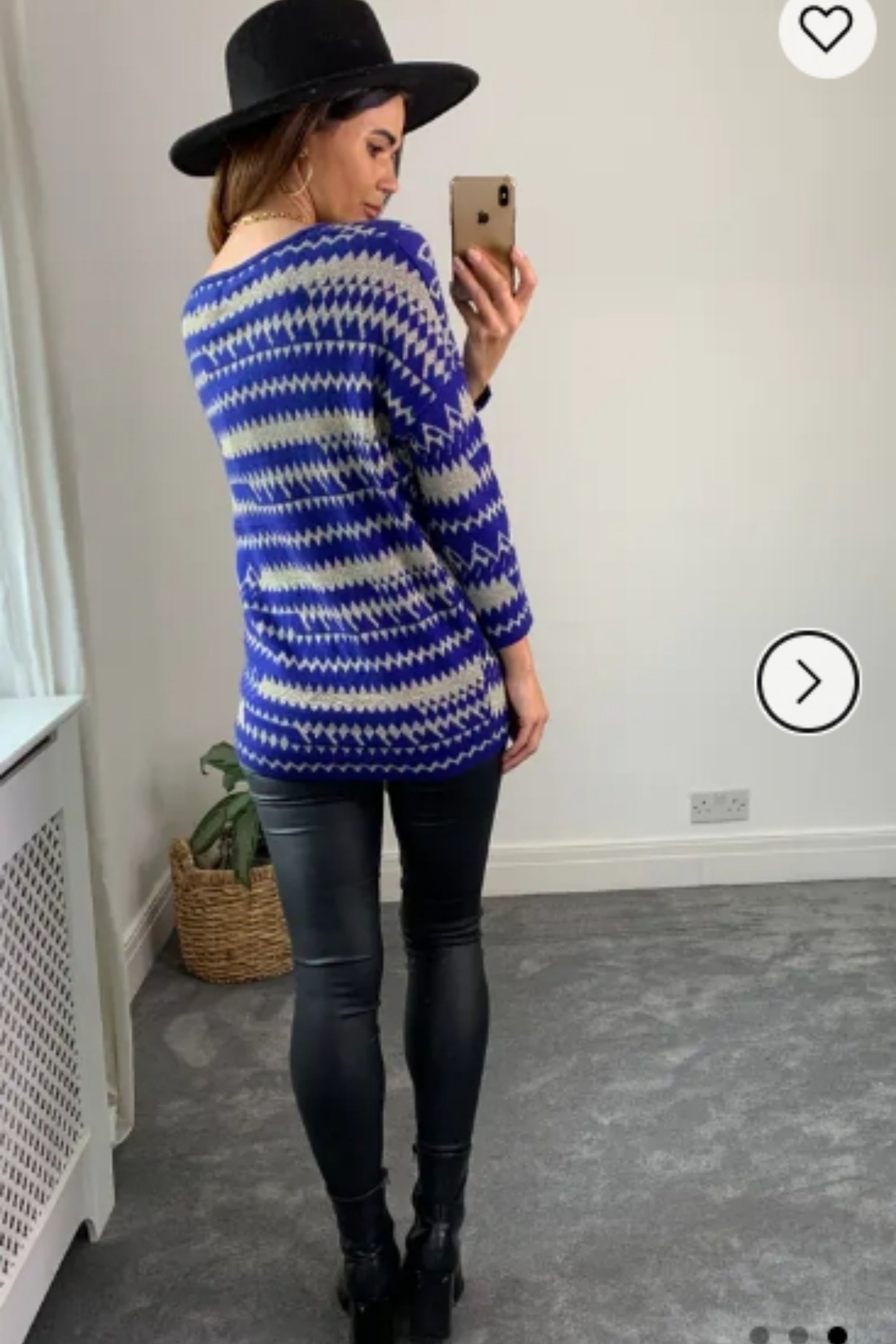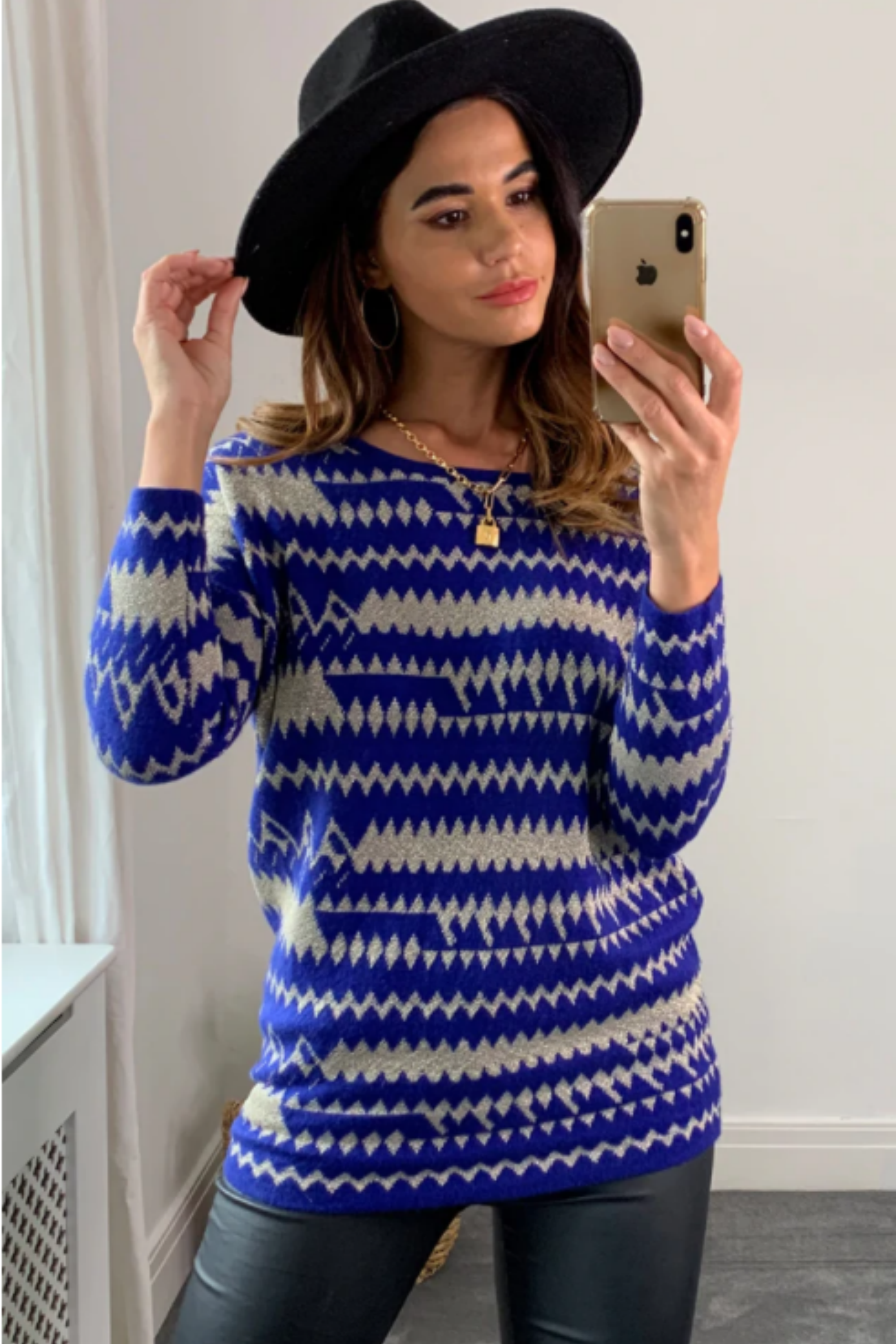 Metallic gold trims Fair isle Print Jumper