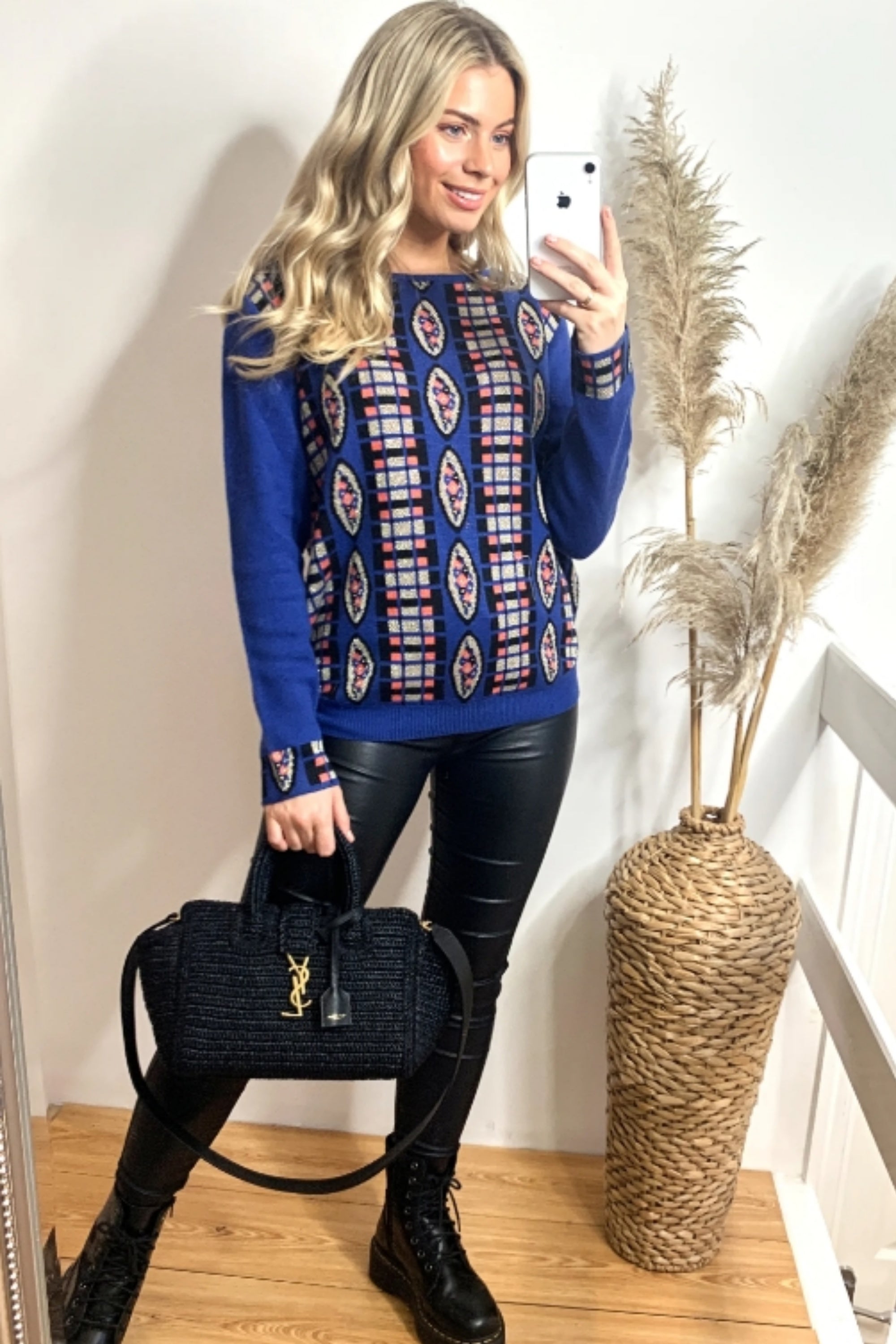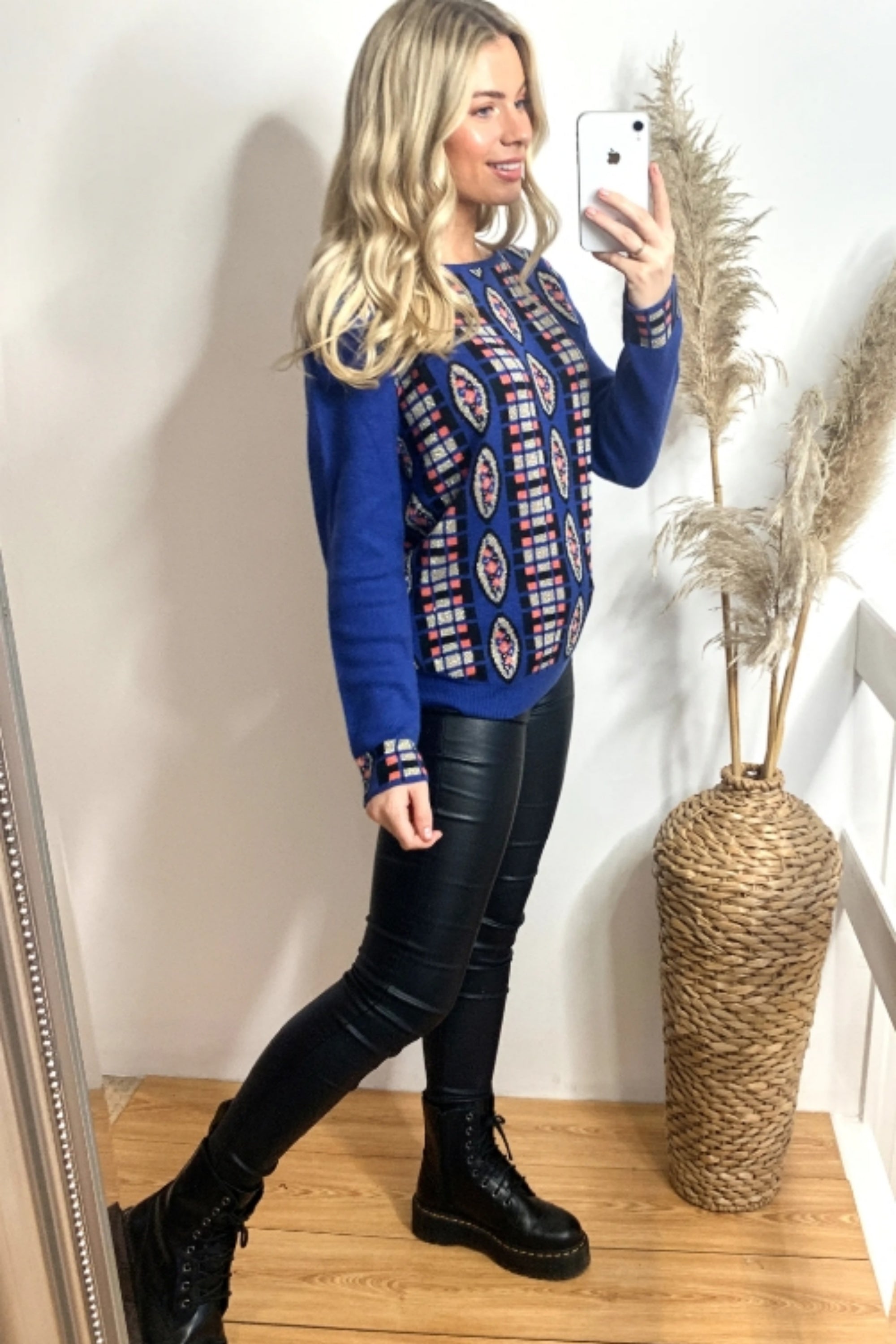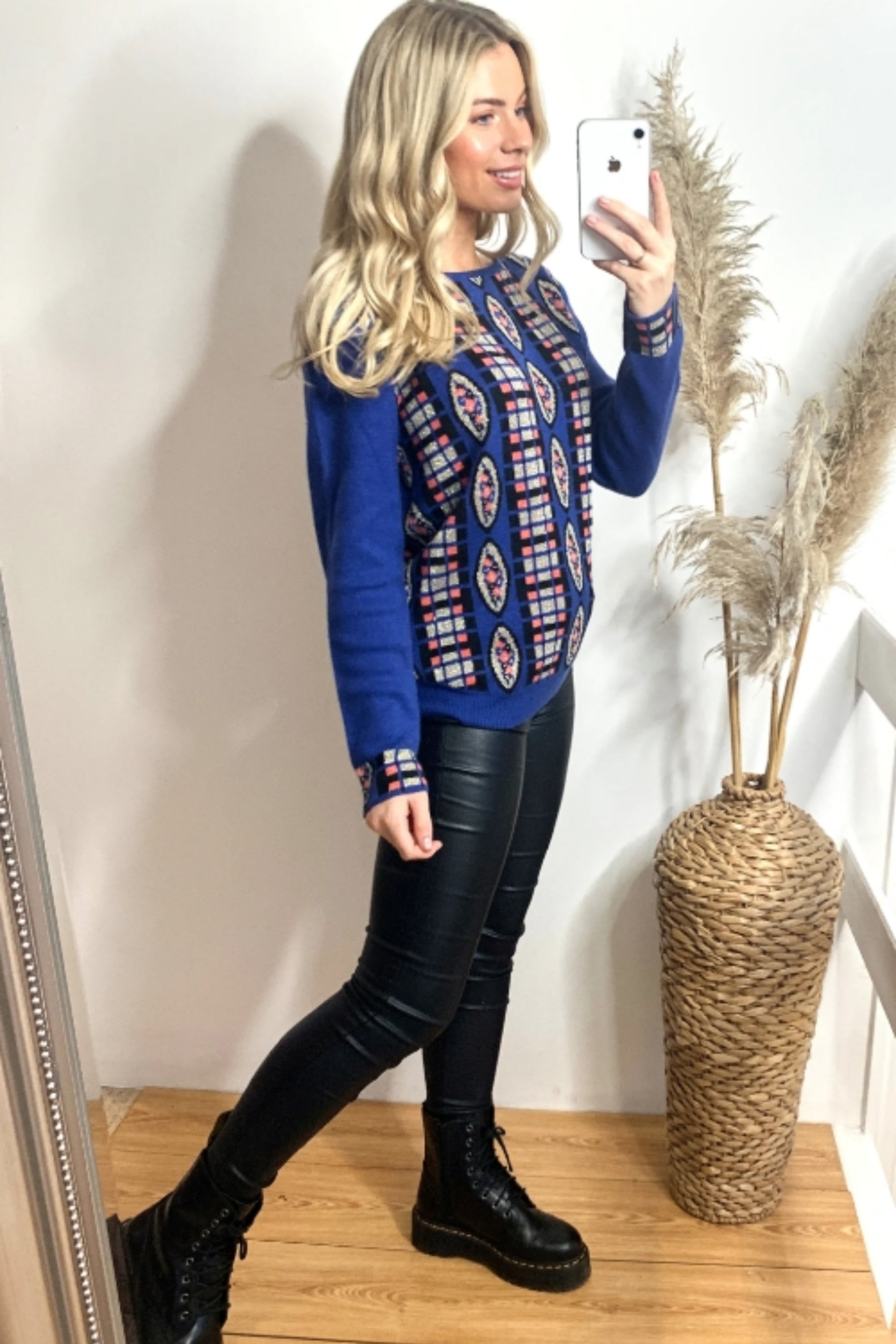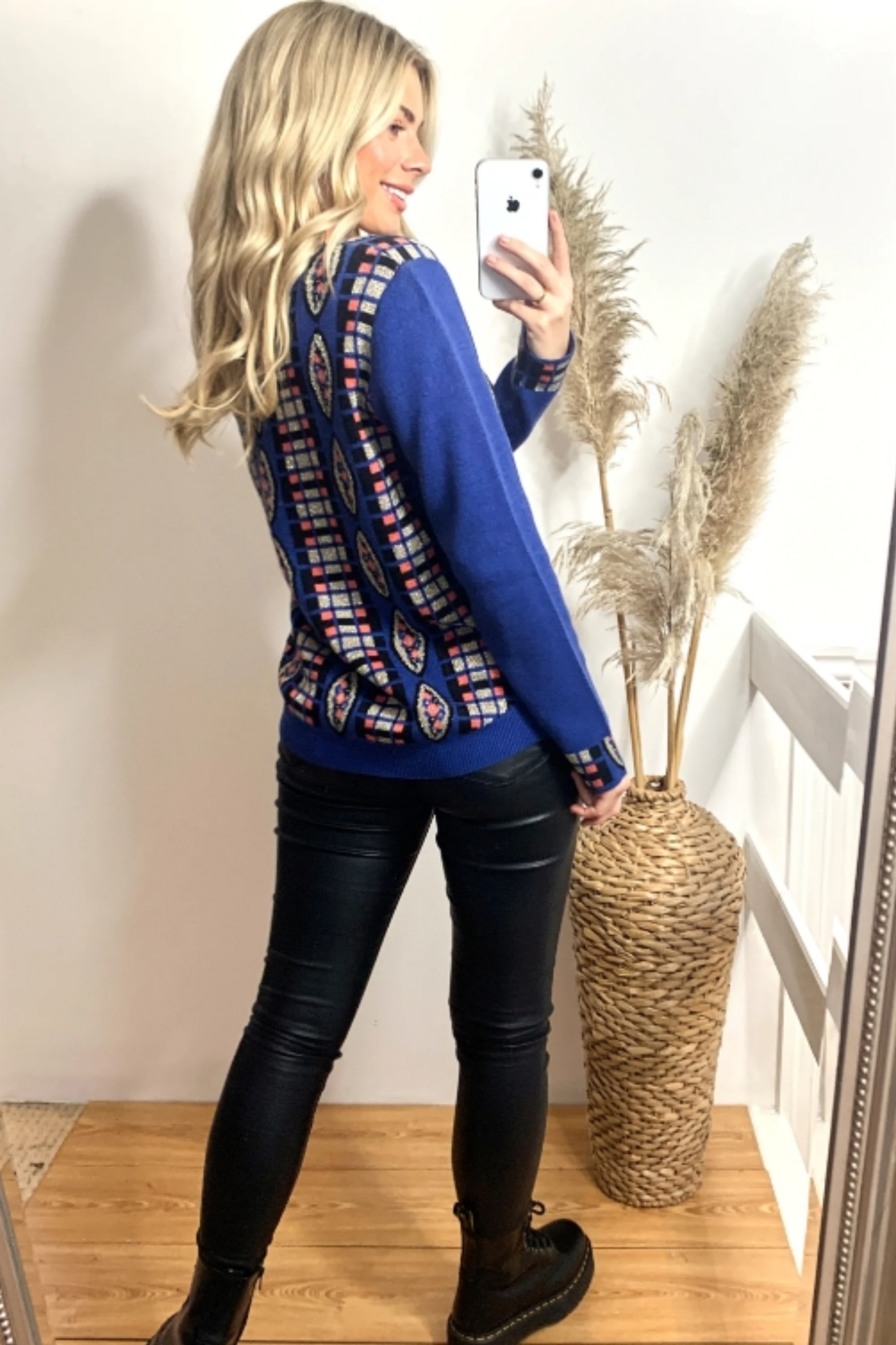 Metallic gold trims Fair-isle Print Jumper