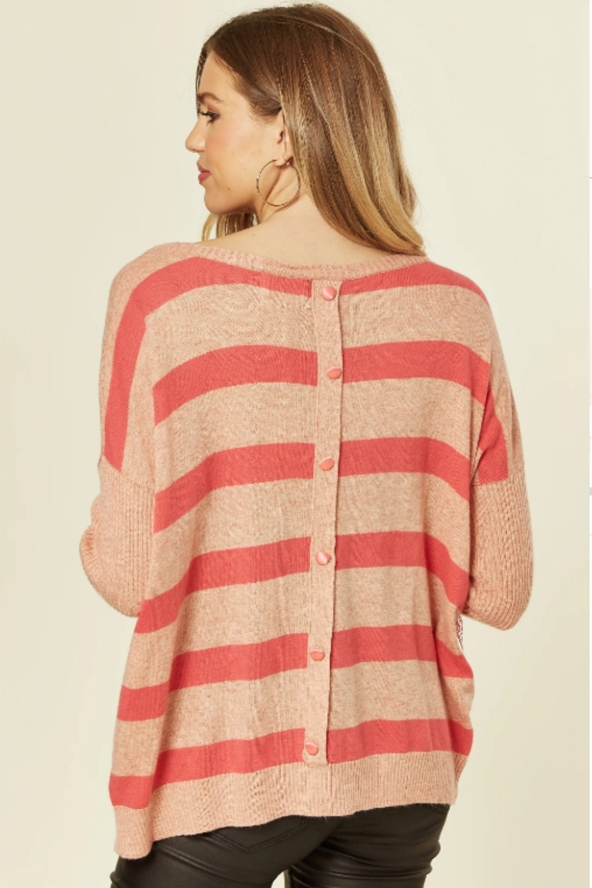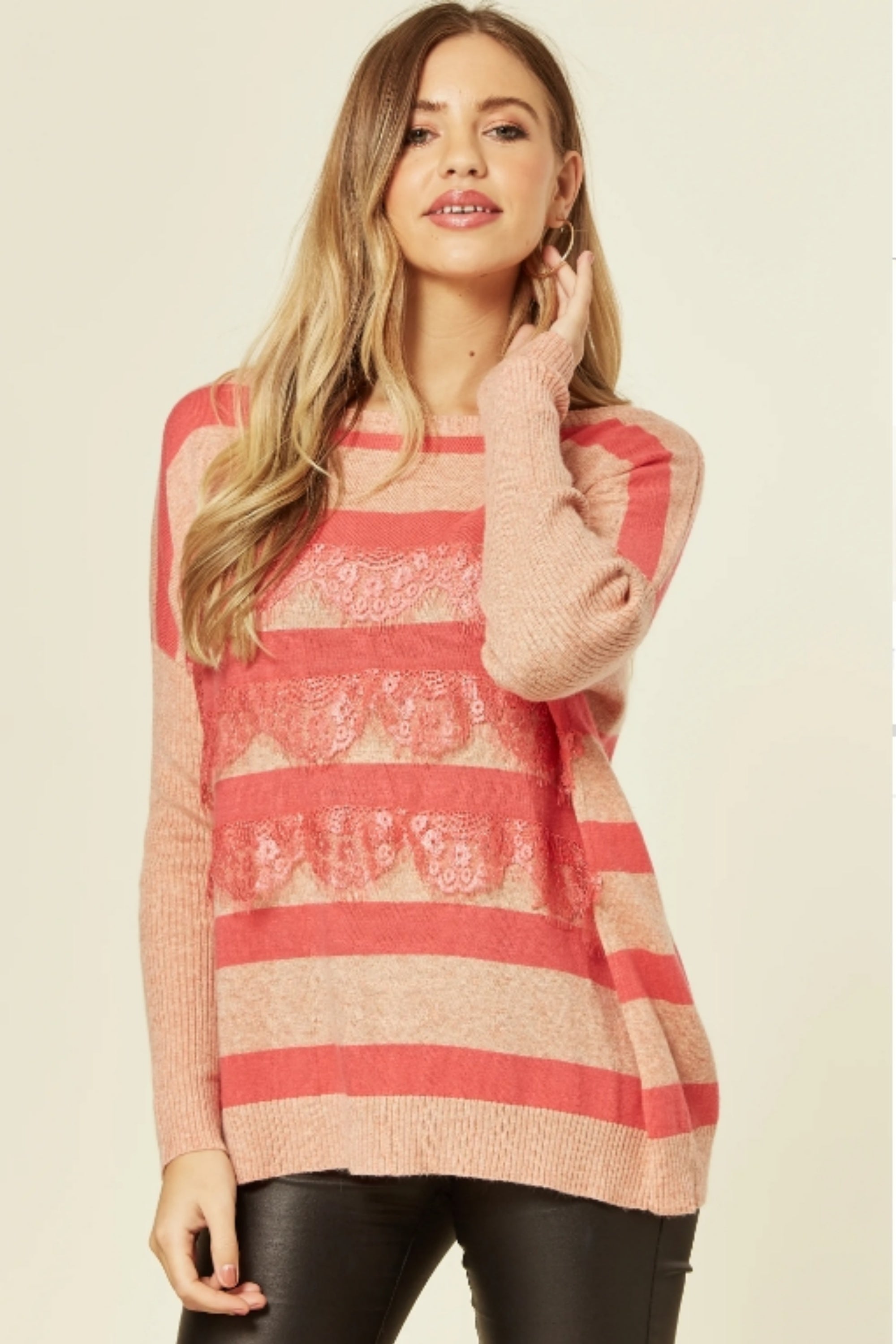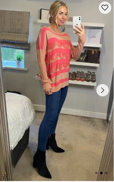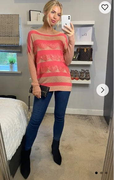 Pink stripe with eyelash lace jumper