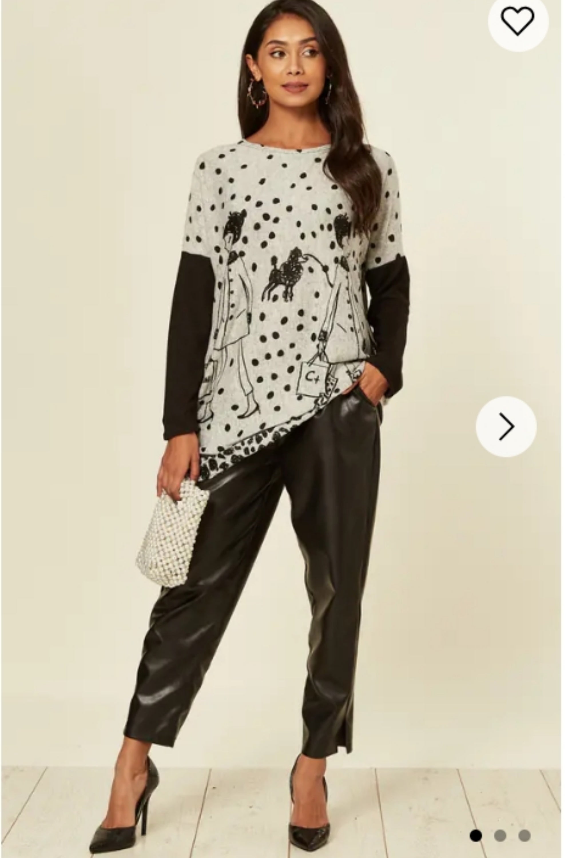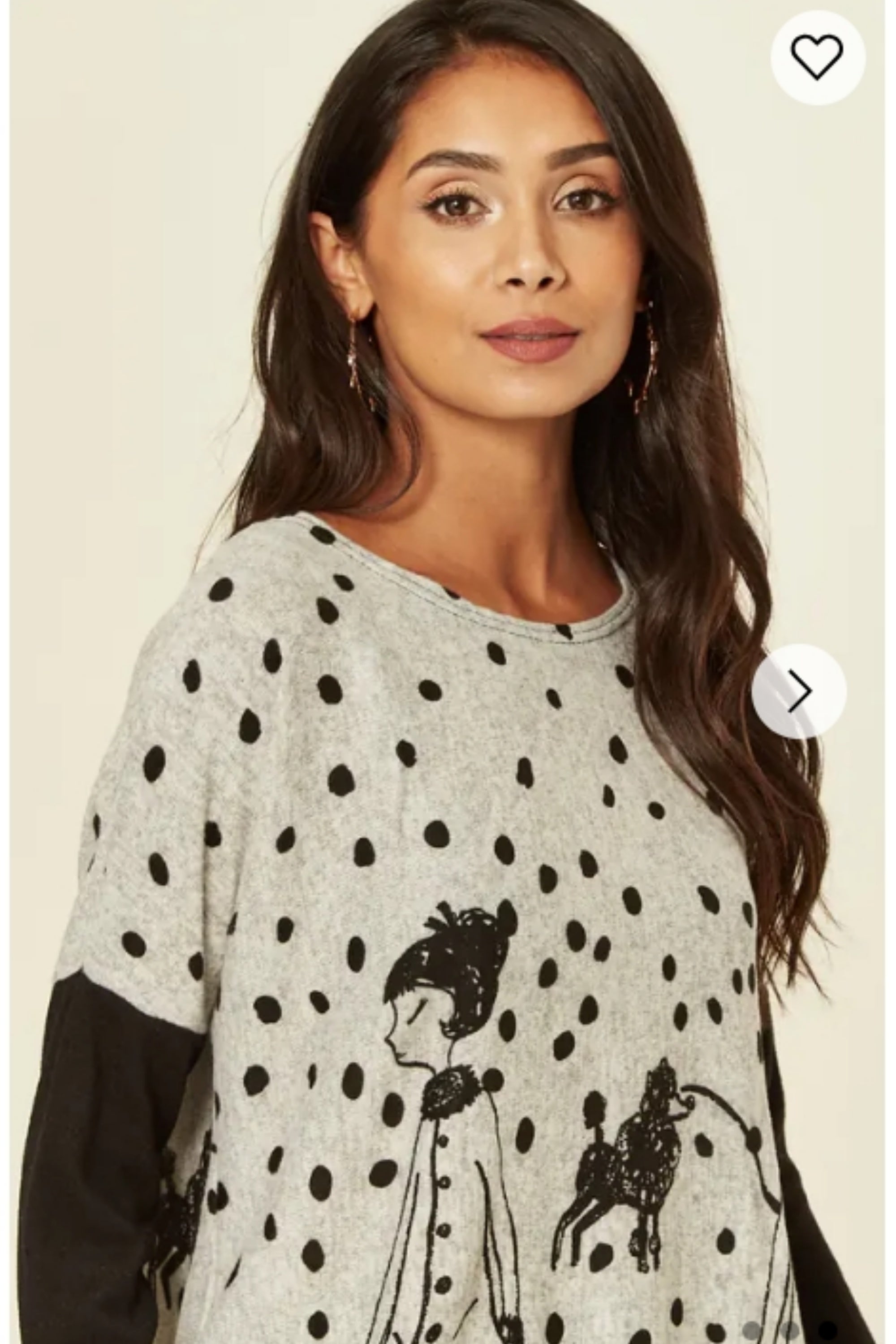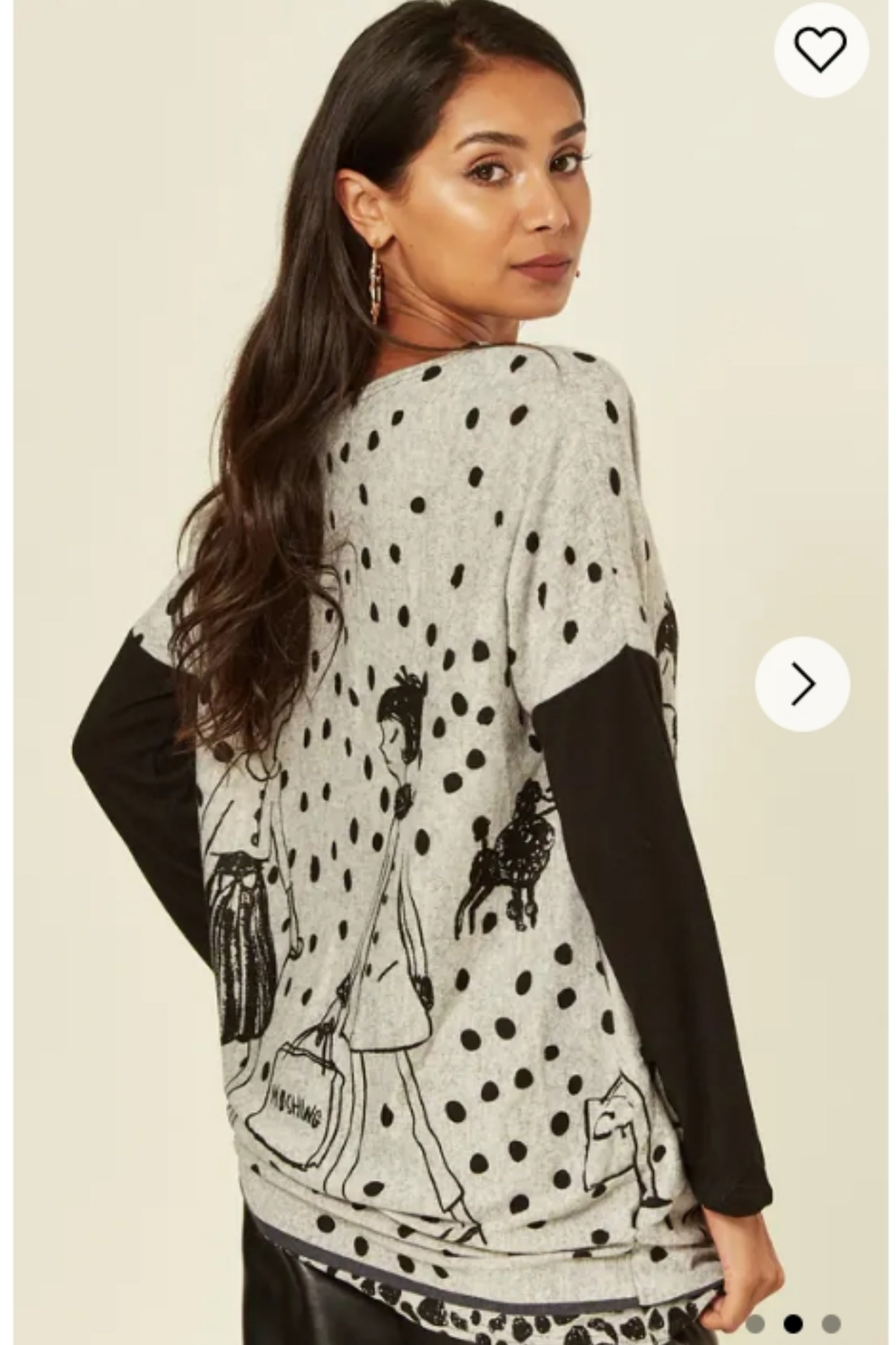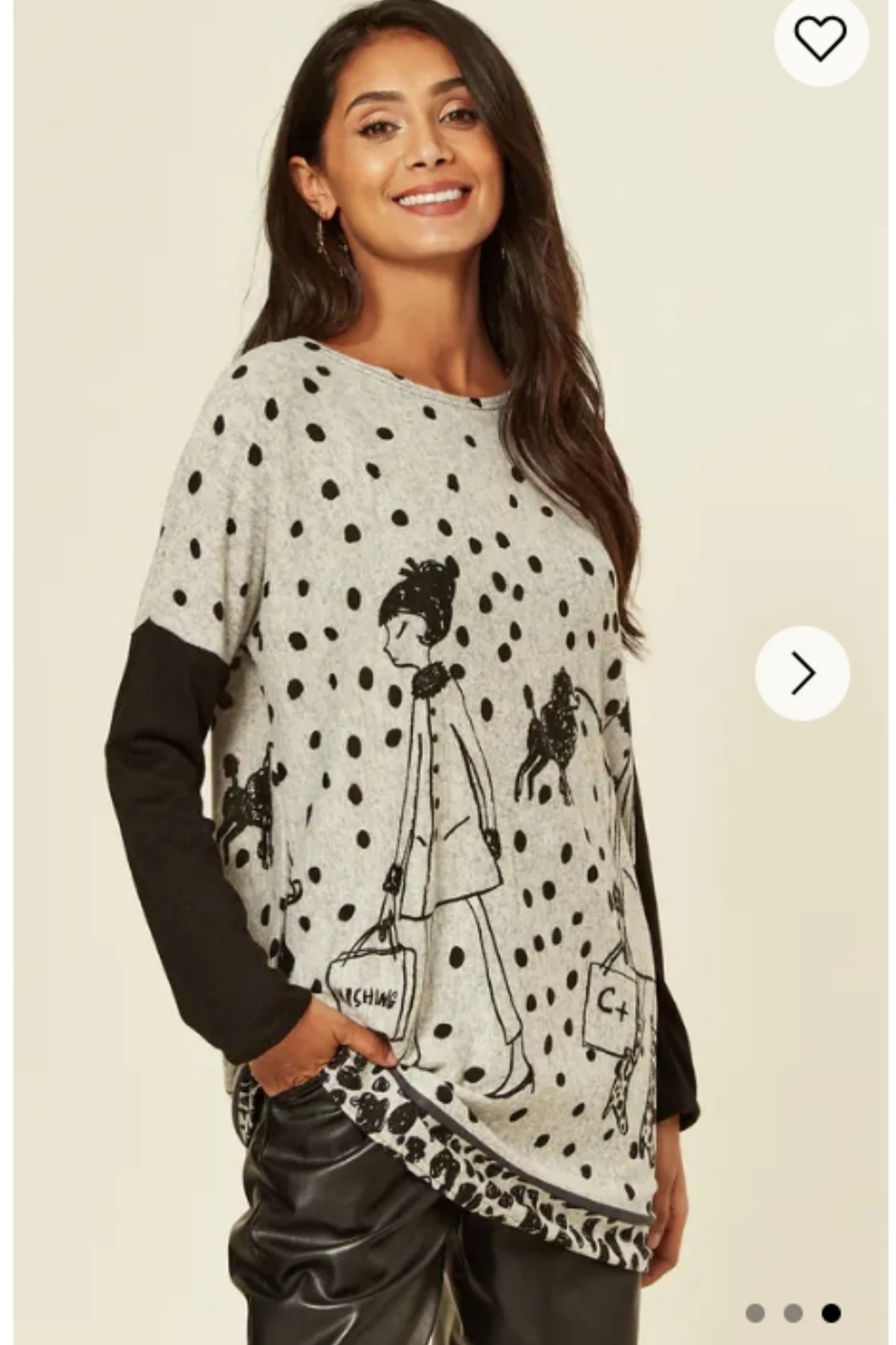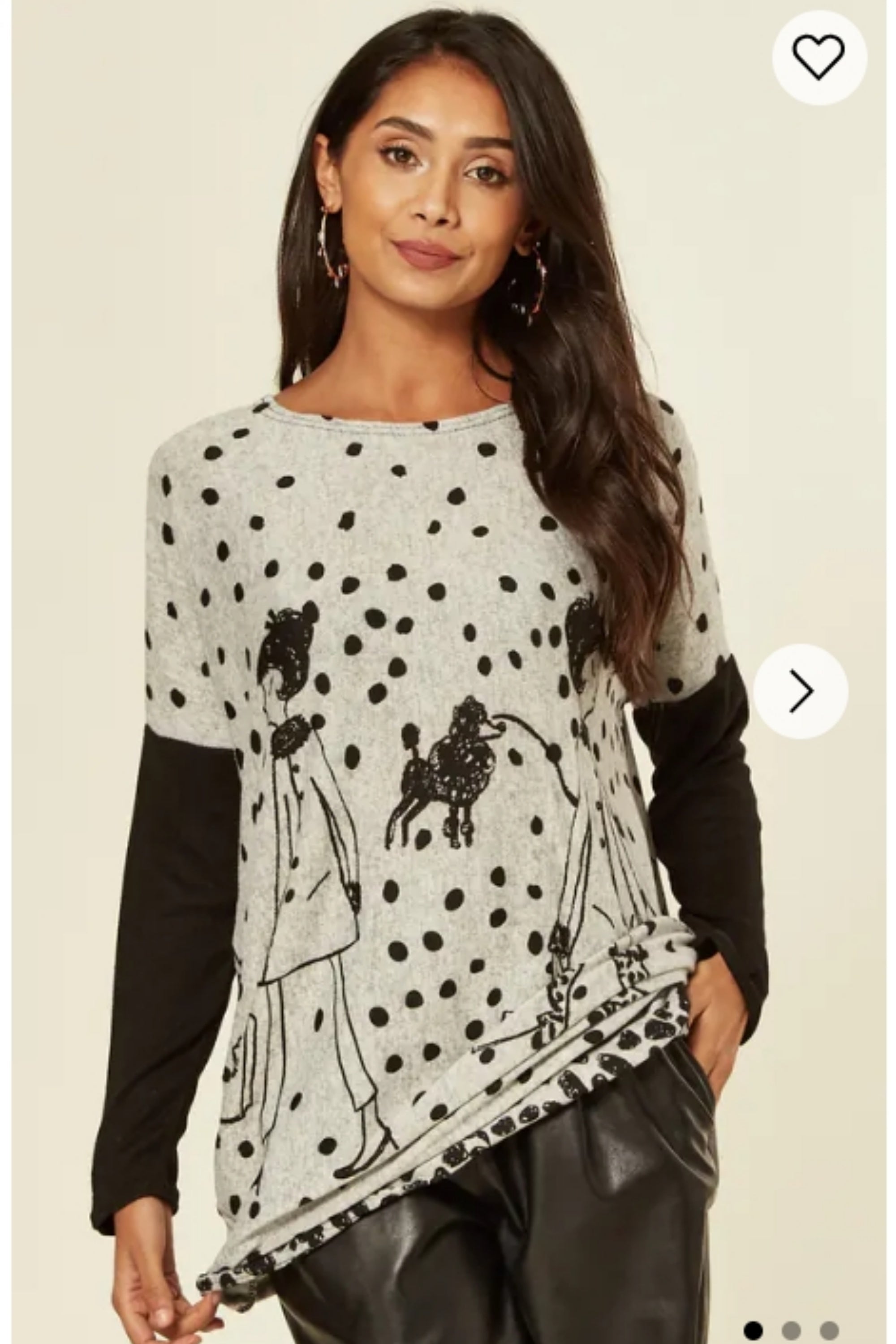 Polka dot and walking doggy print oversized jumper top
