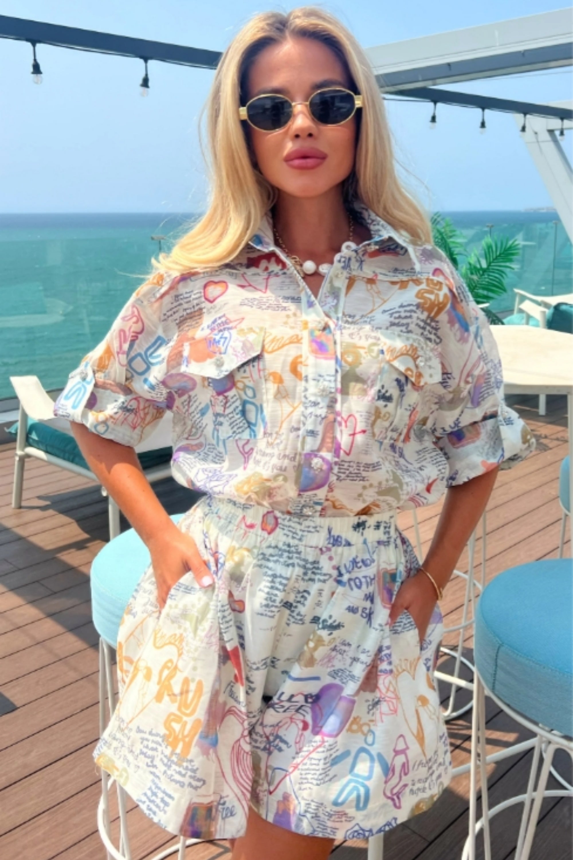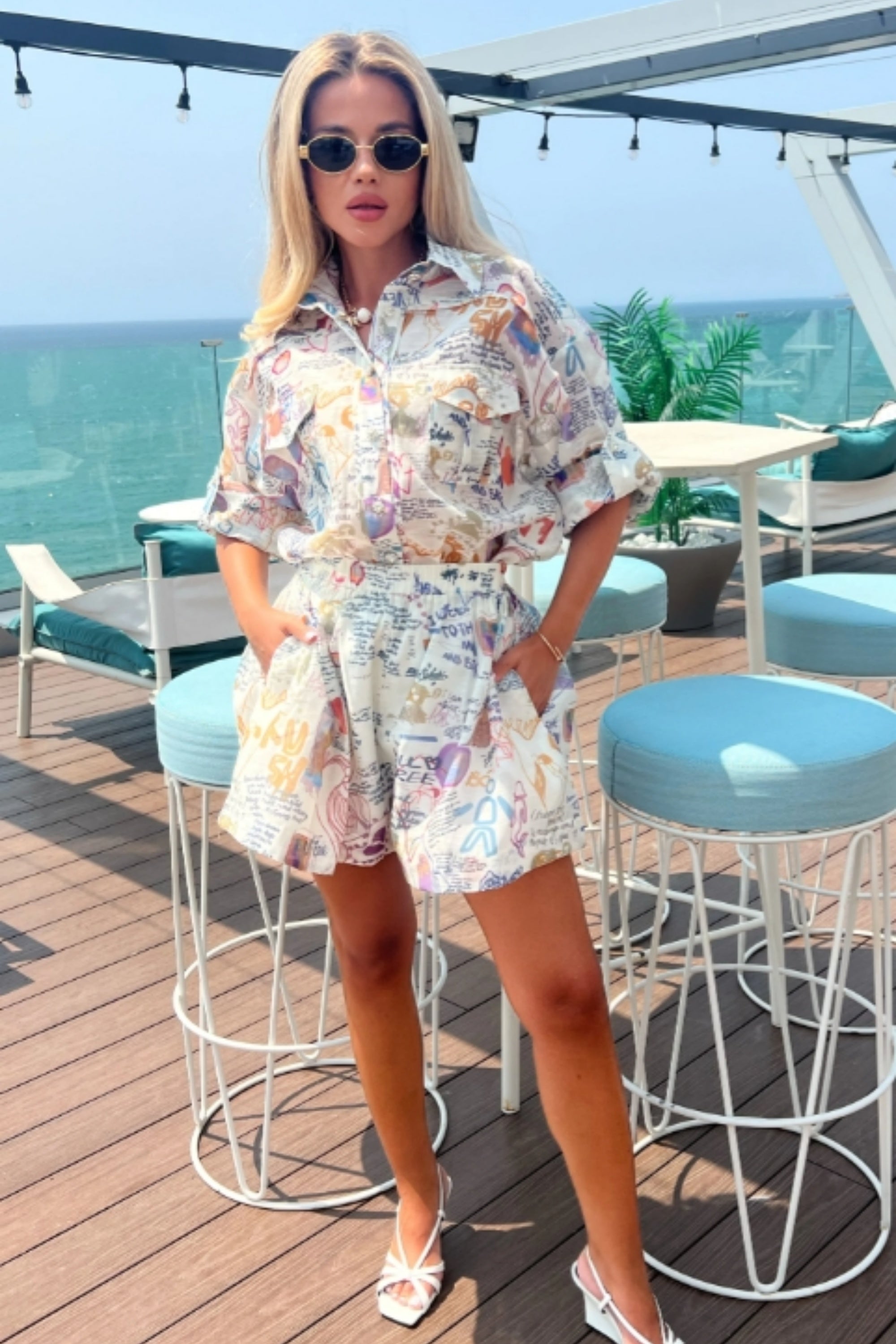 Cotton blend Duben shirt and shorts in relaxed fit co-ords Suits in Cream