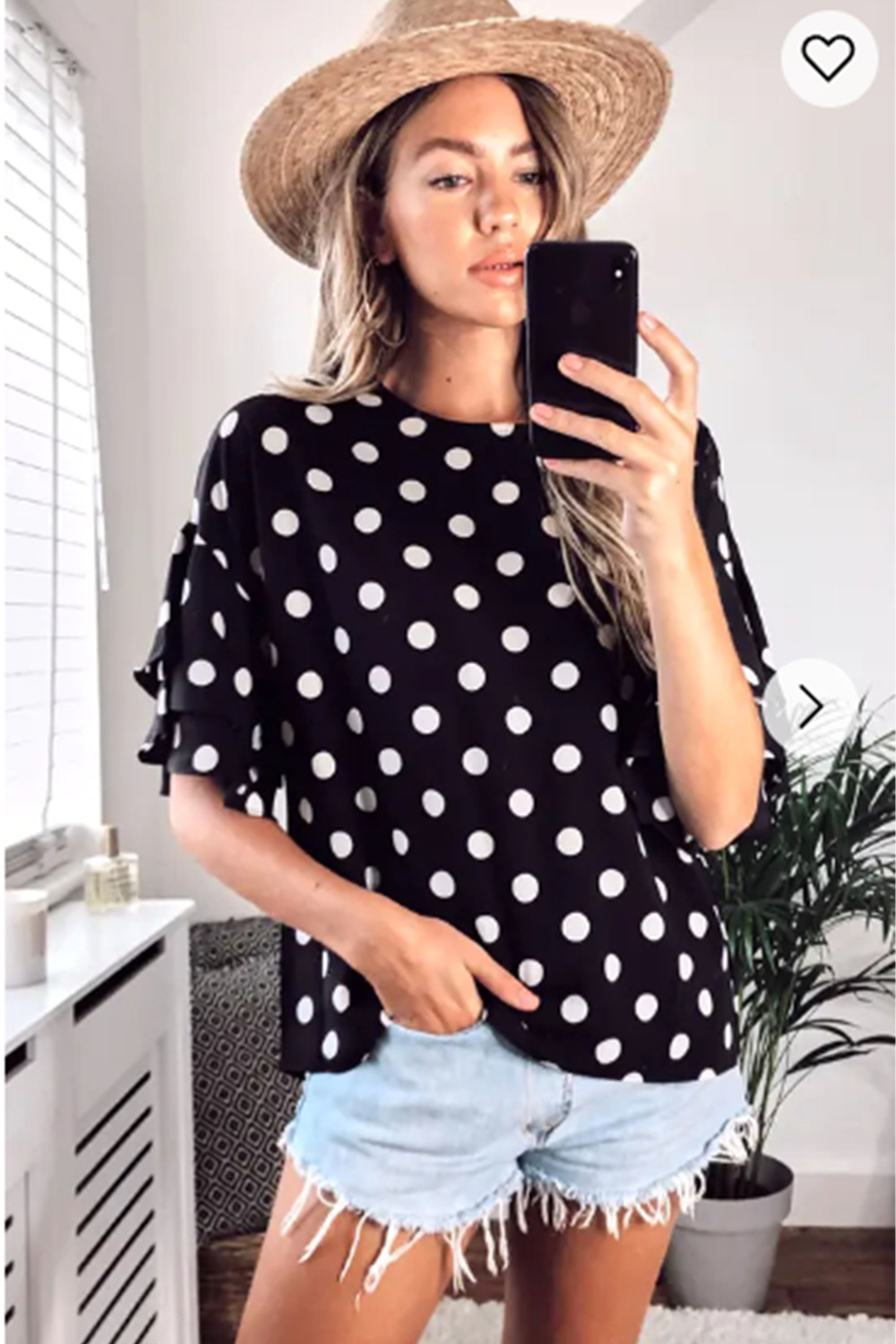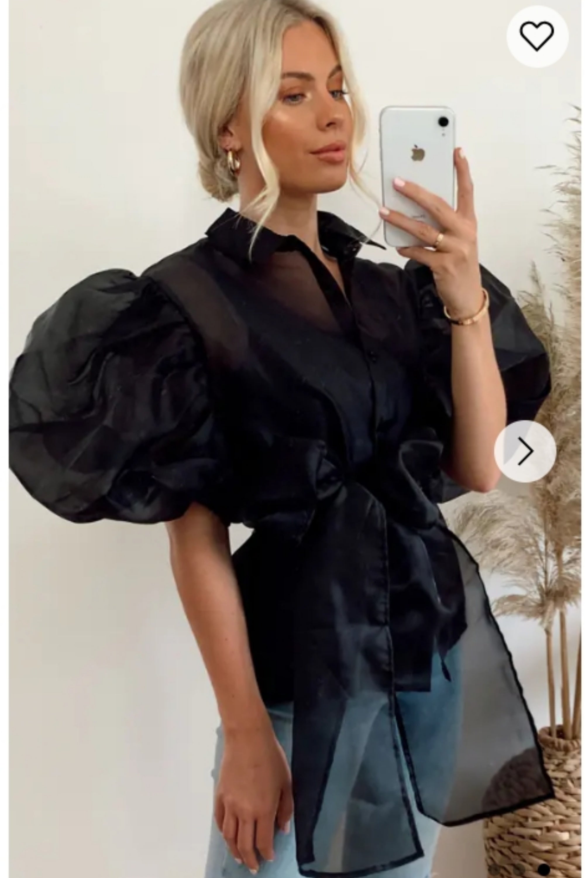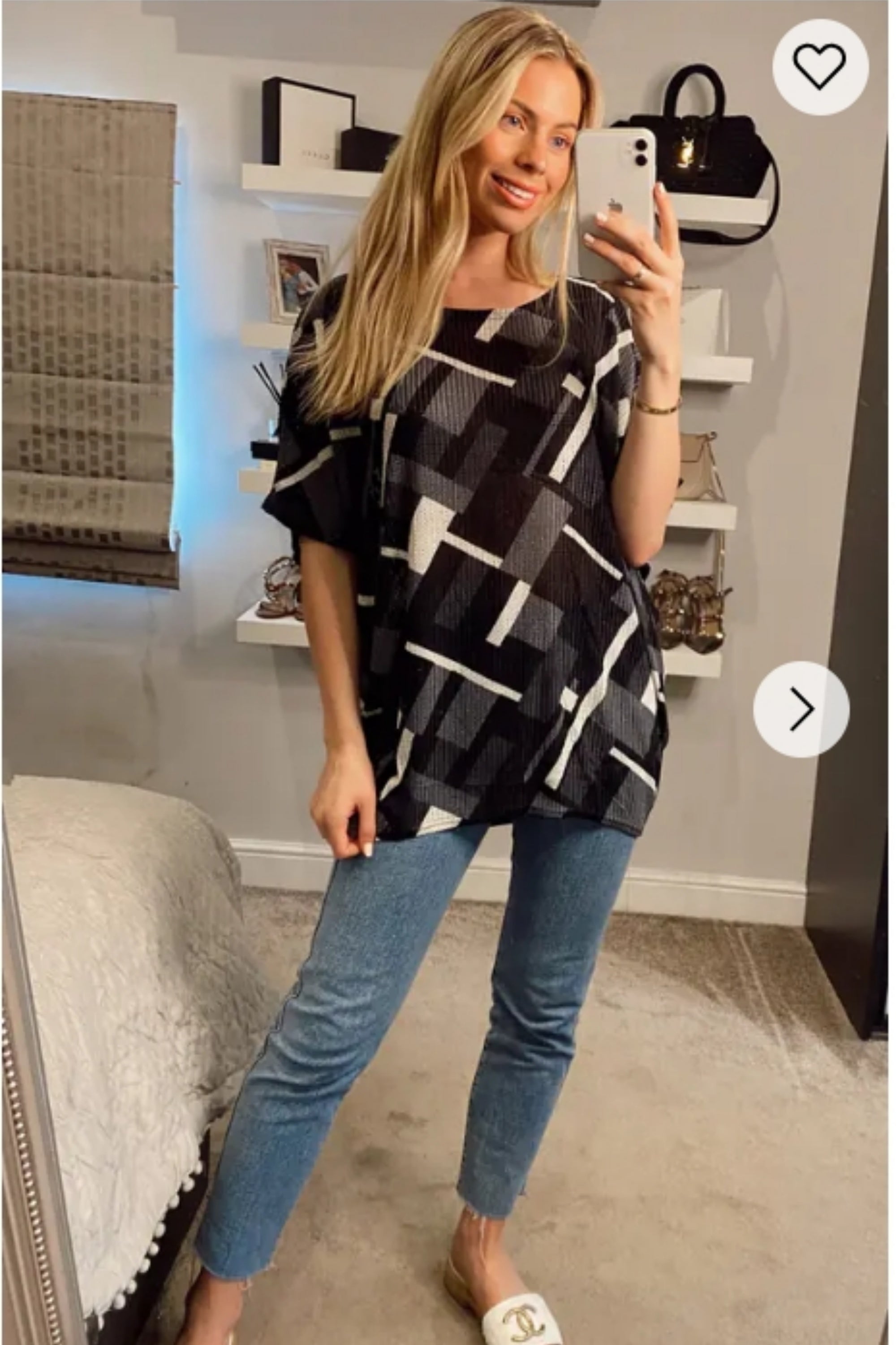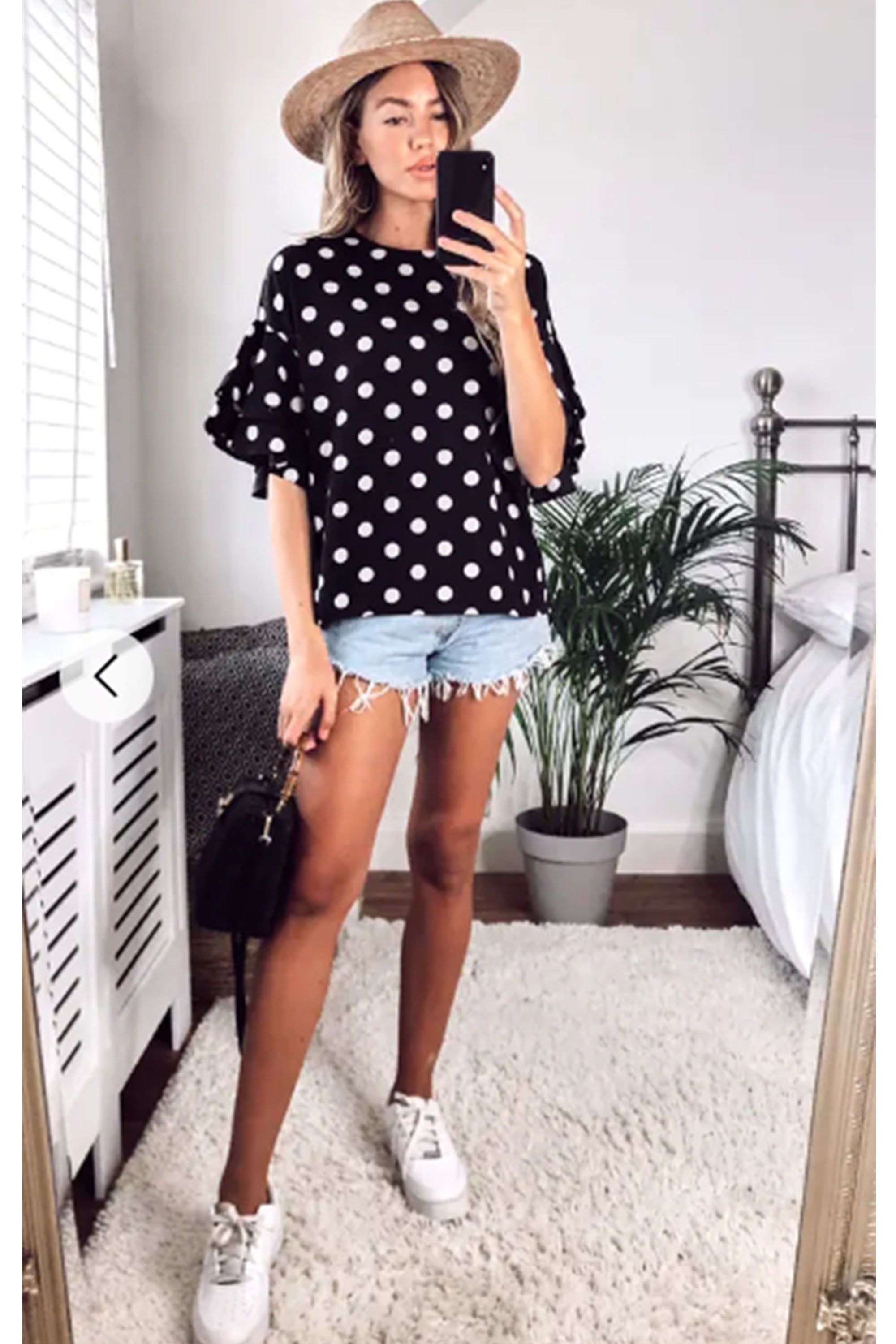 Oversized Short Sleeve Shirt with Frill Detail on Sides in Black