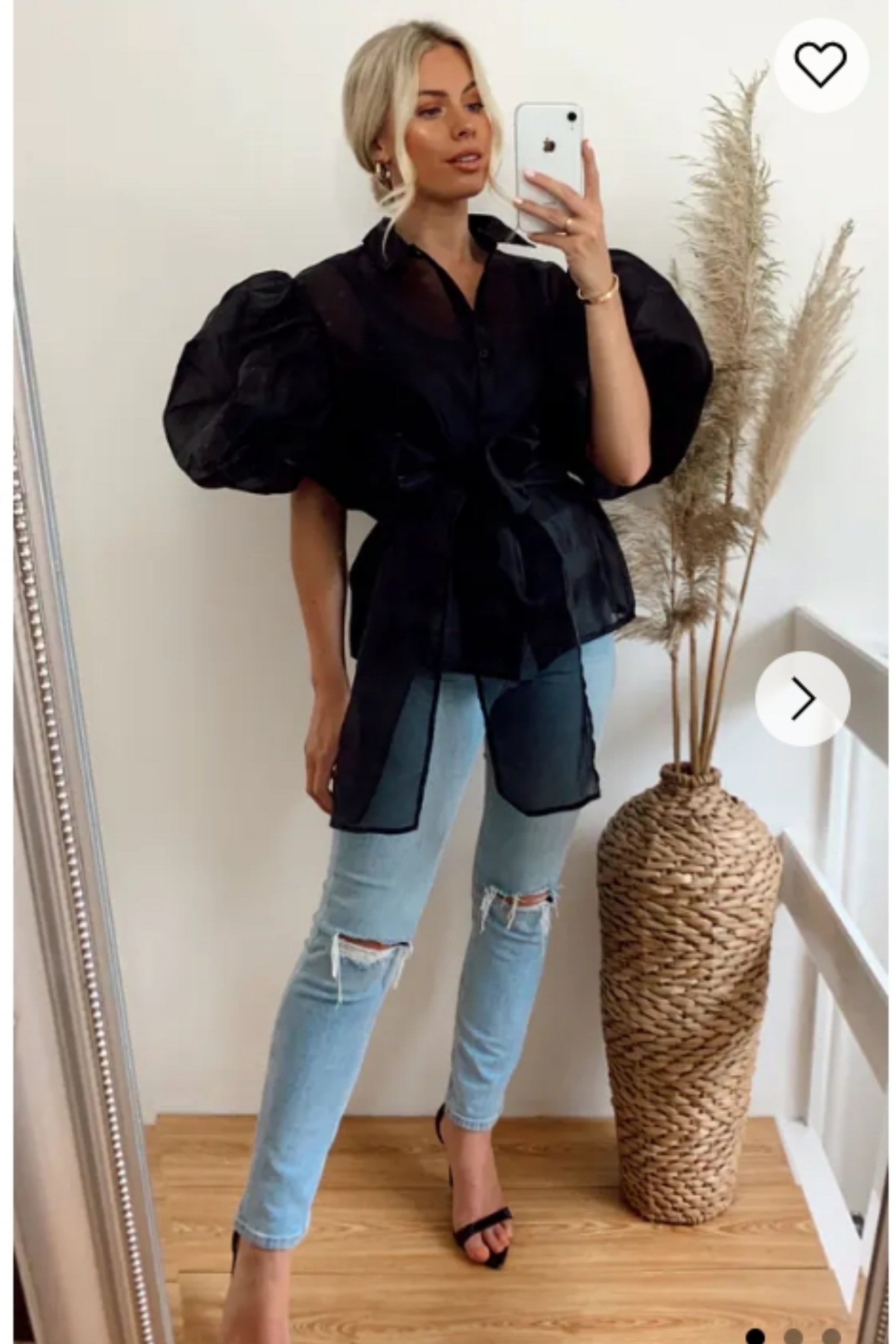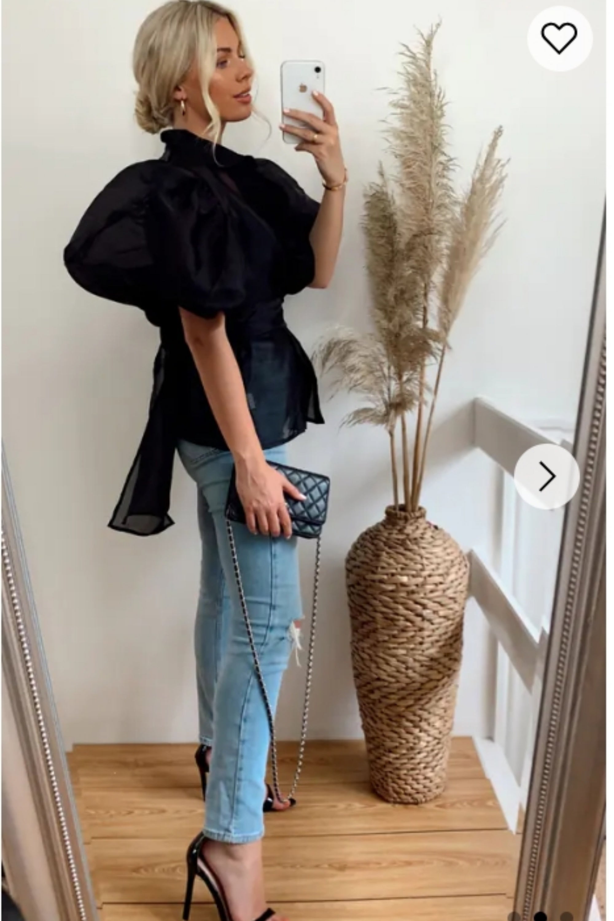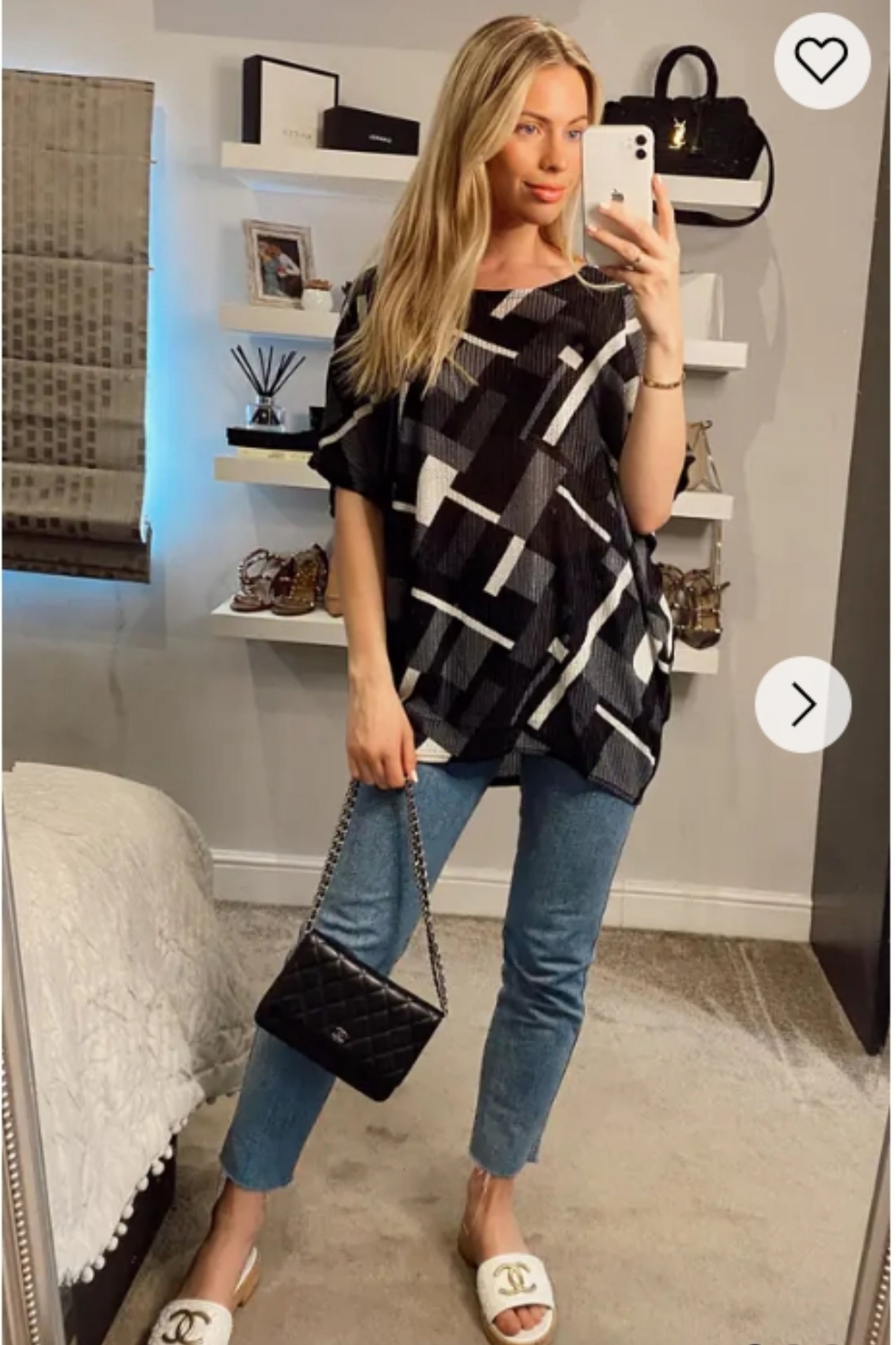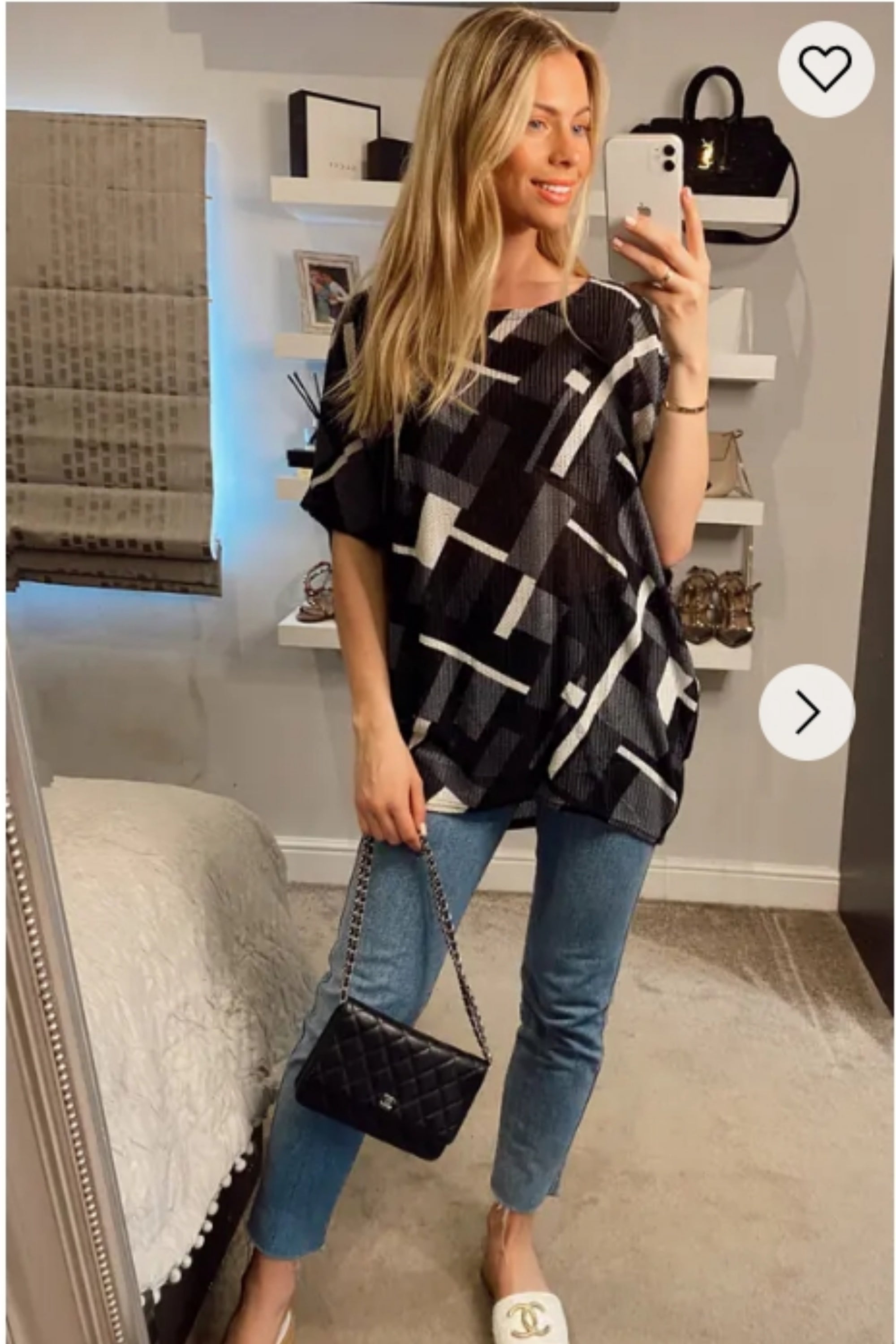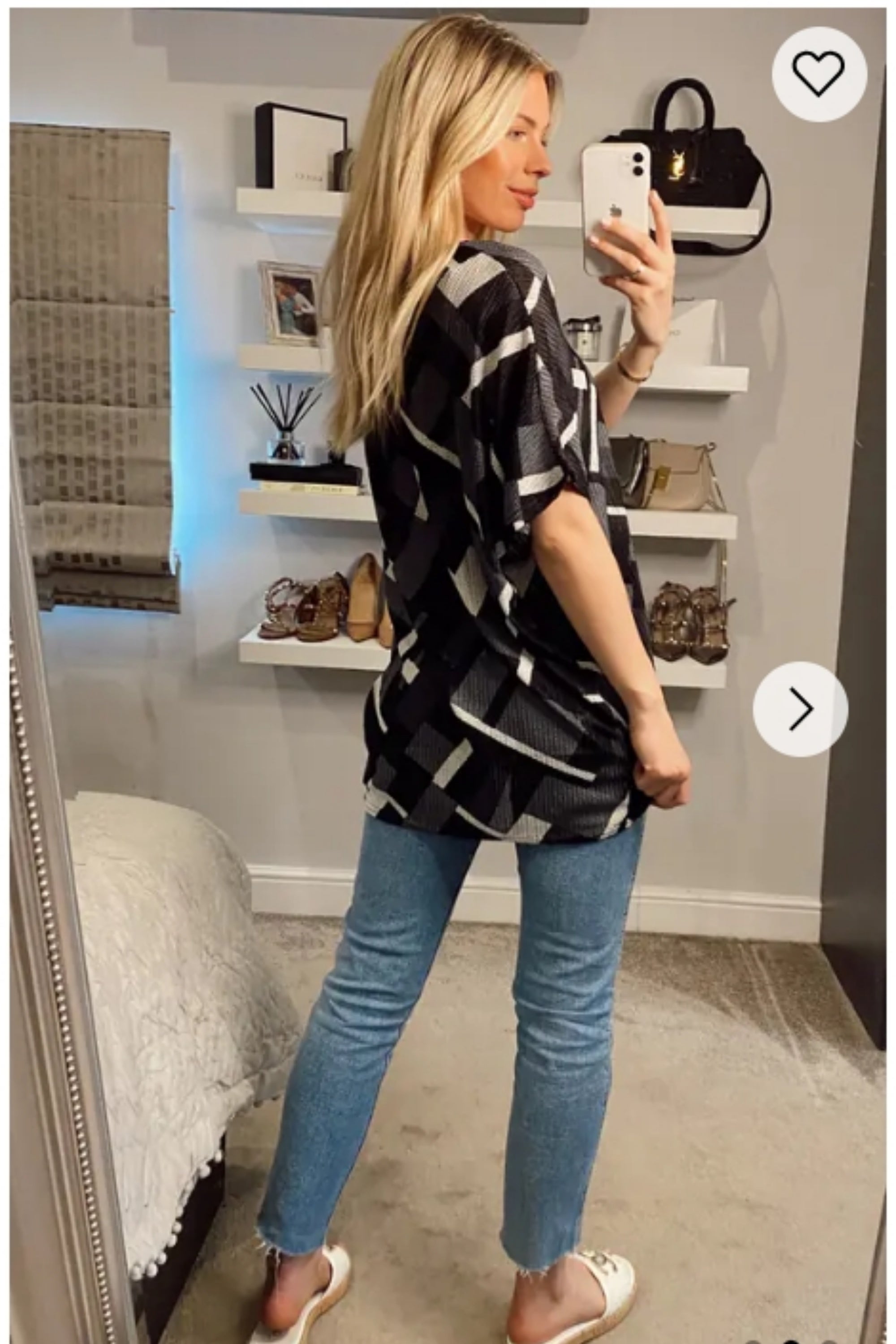 Oversized Short Sleeve Shirt with Frill Detail on Sides in Black