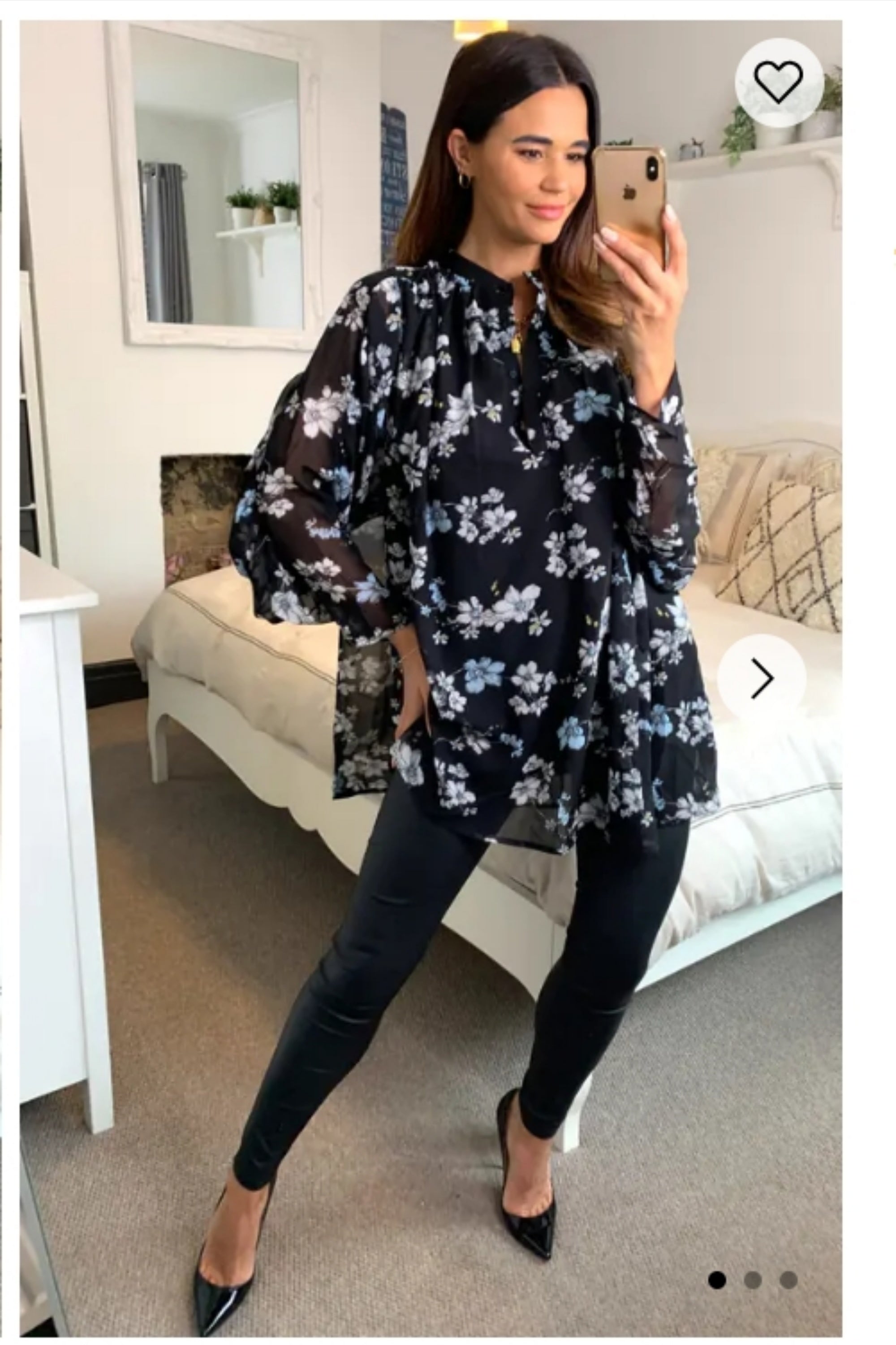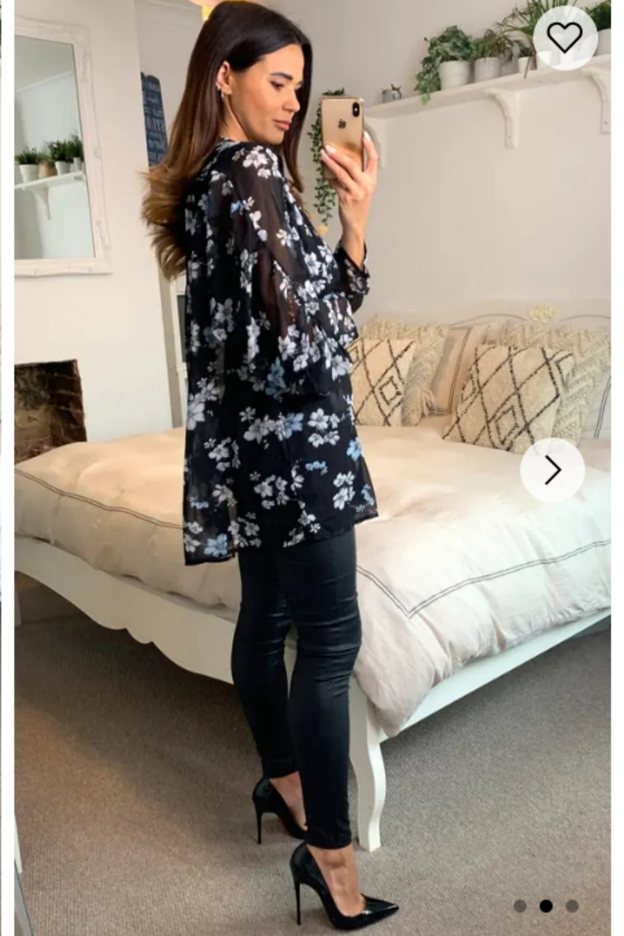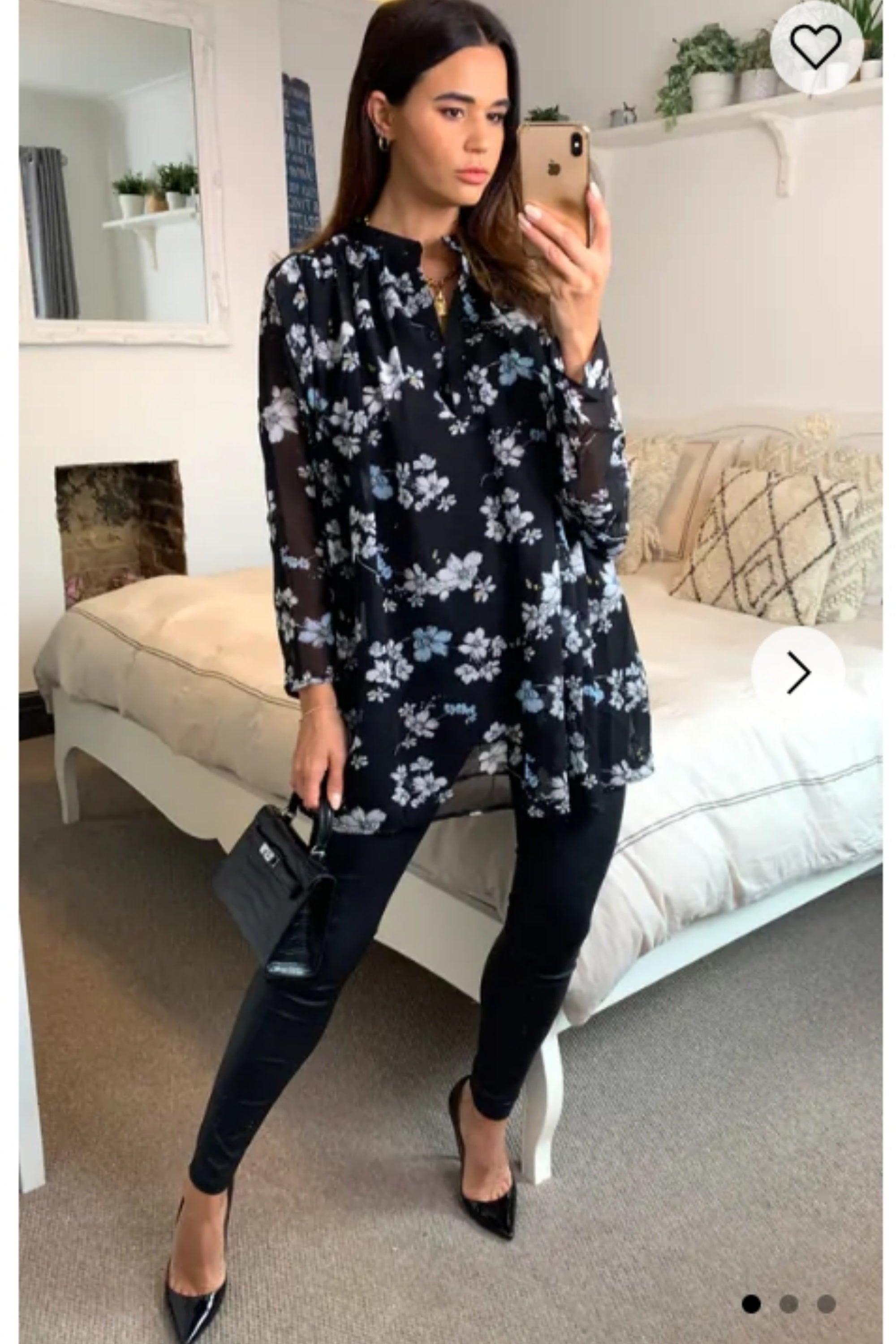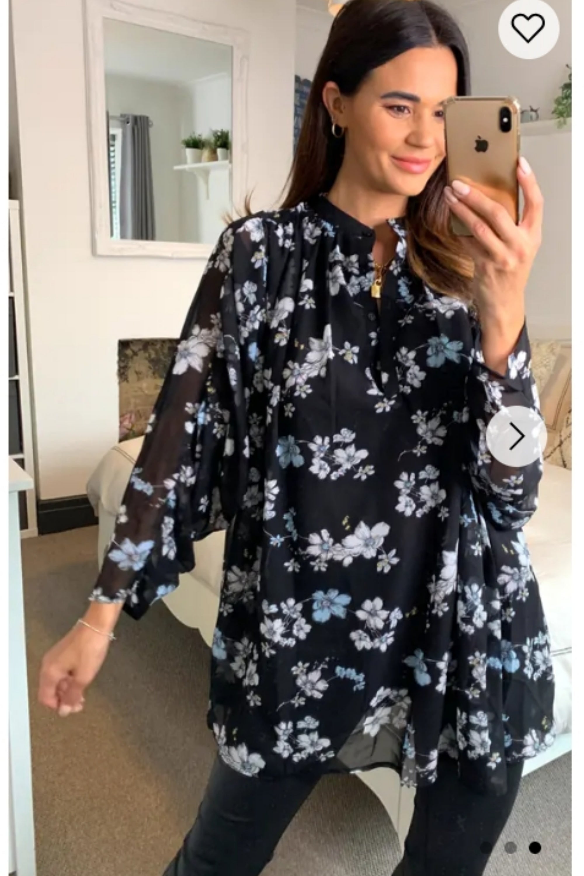 Multi floral print chiffon flowy shirt (BLACK)