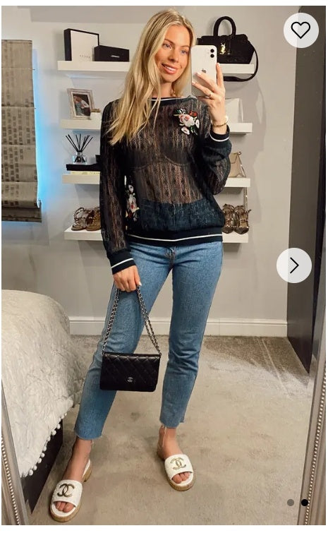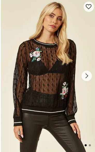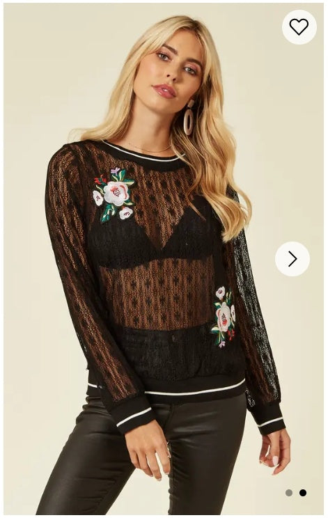 Rose Patch lace Sweatshirt (Black)
