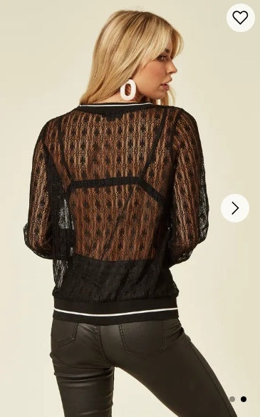 Stripe print mesh Top (Black)