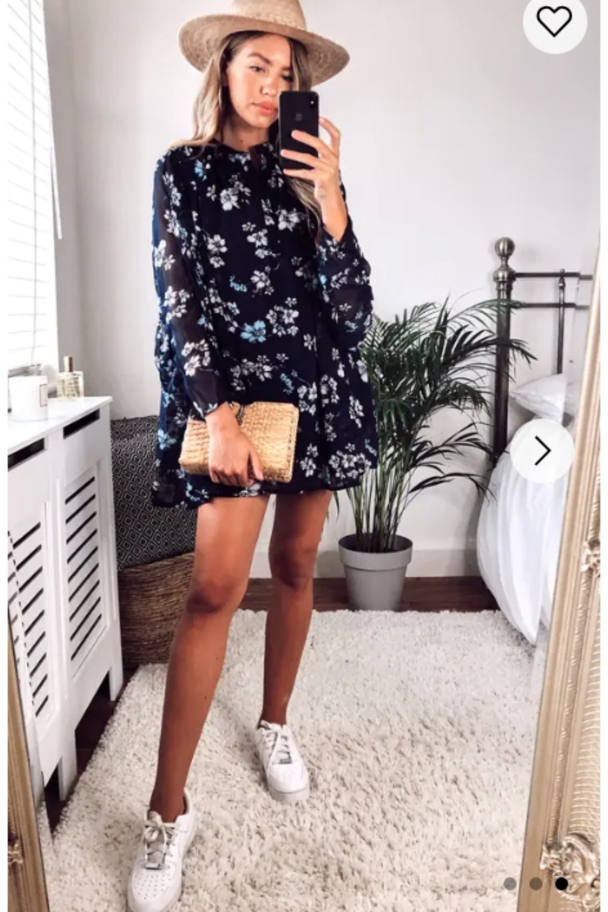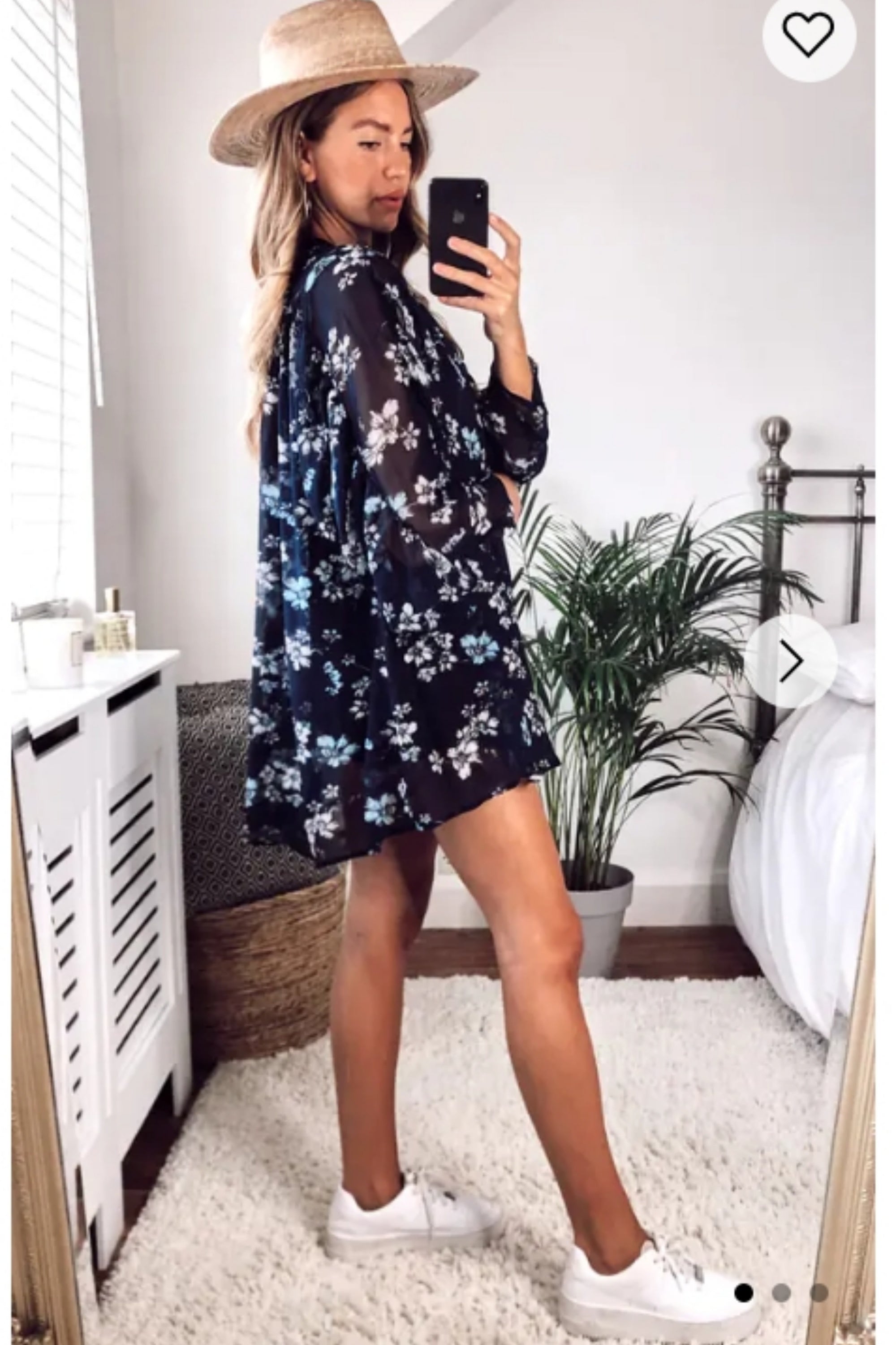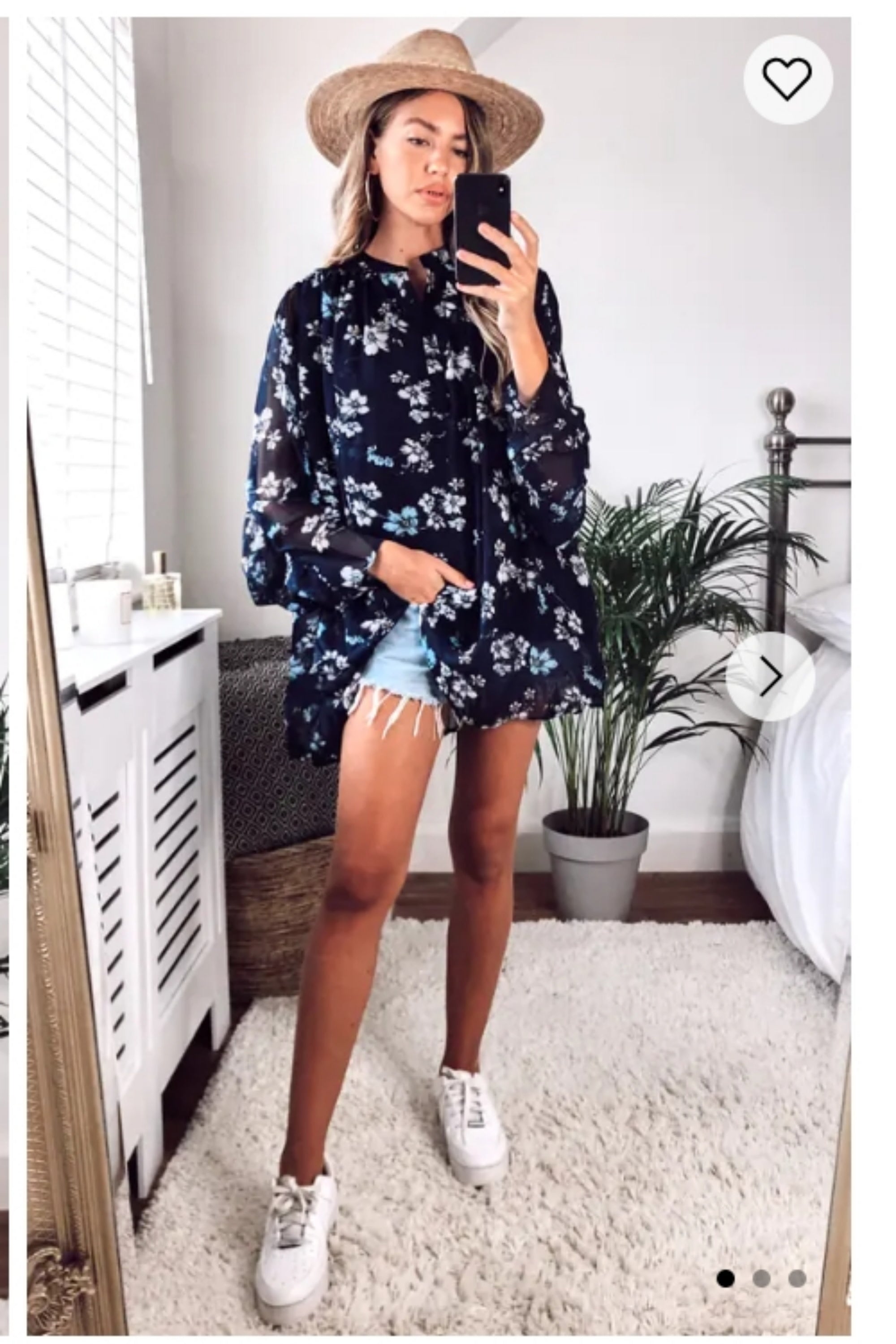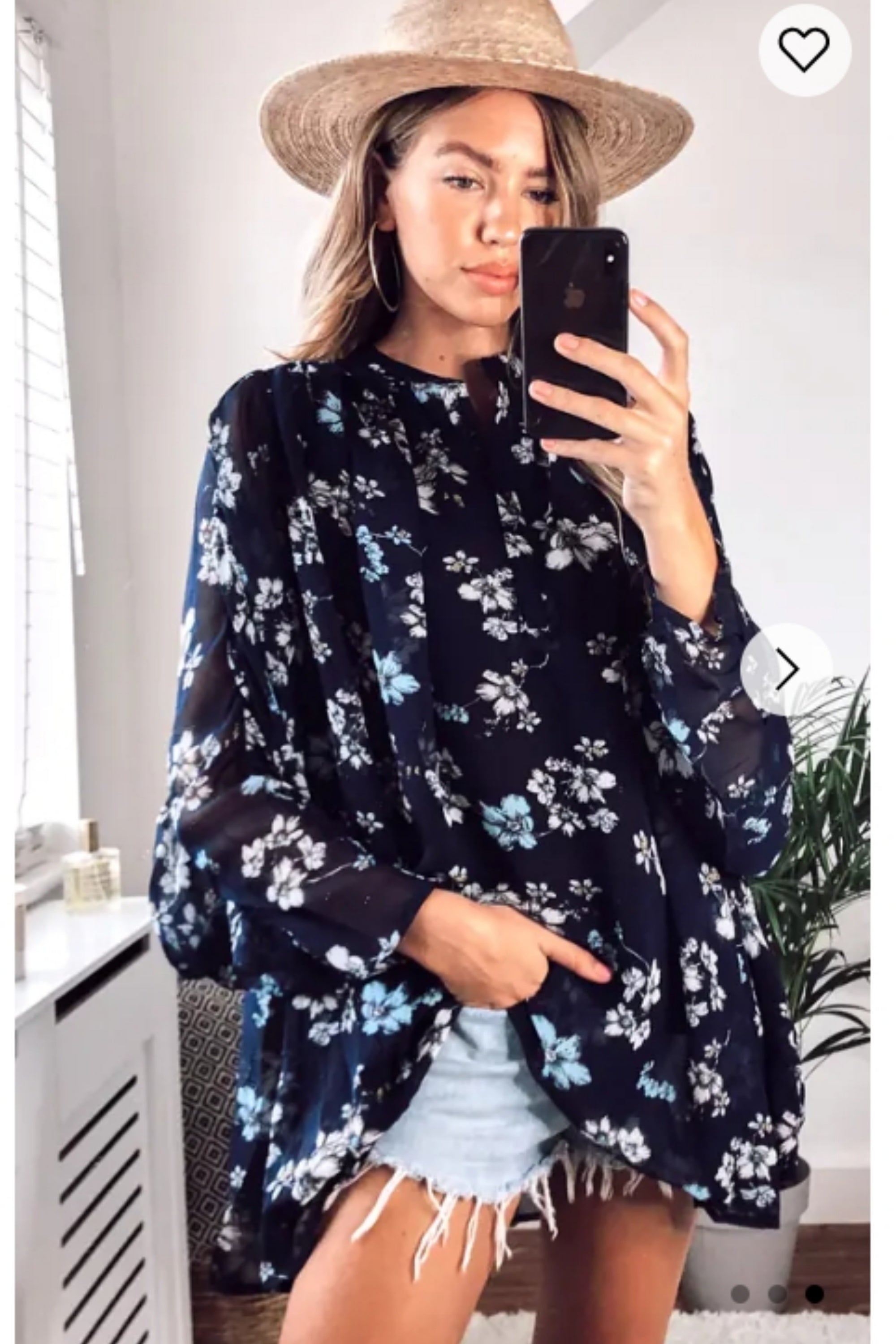 Floral print swing dip hem shirt