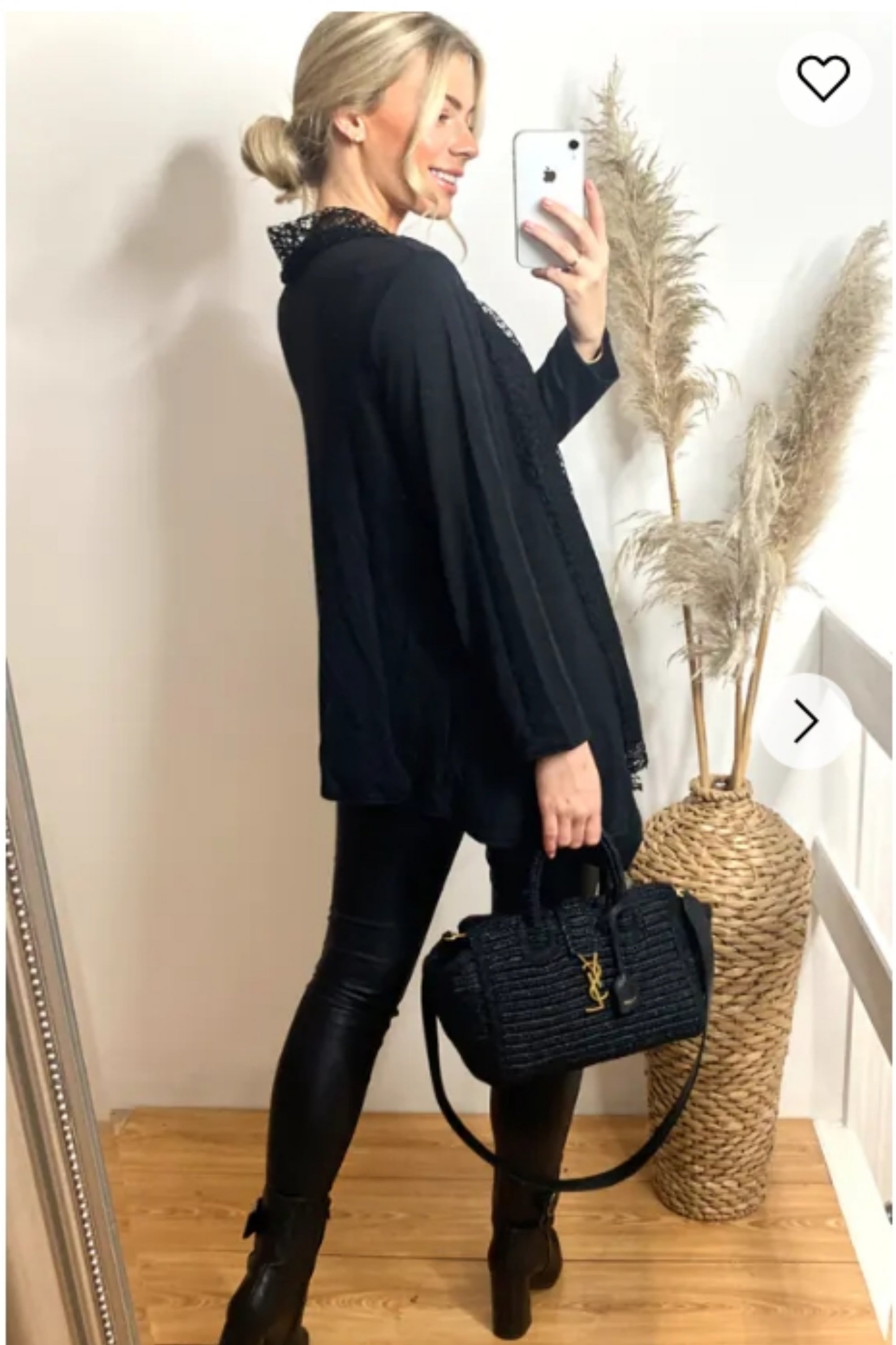 Pearl embellished Vest Top (Black)