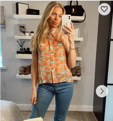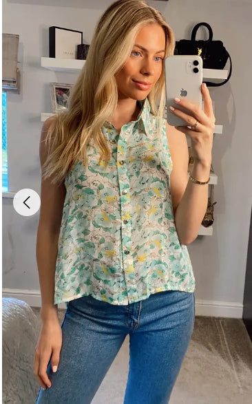 Floral Print Sleeveless Shirt (Green)