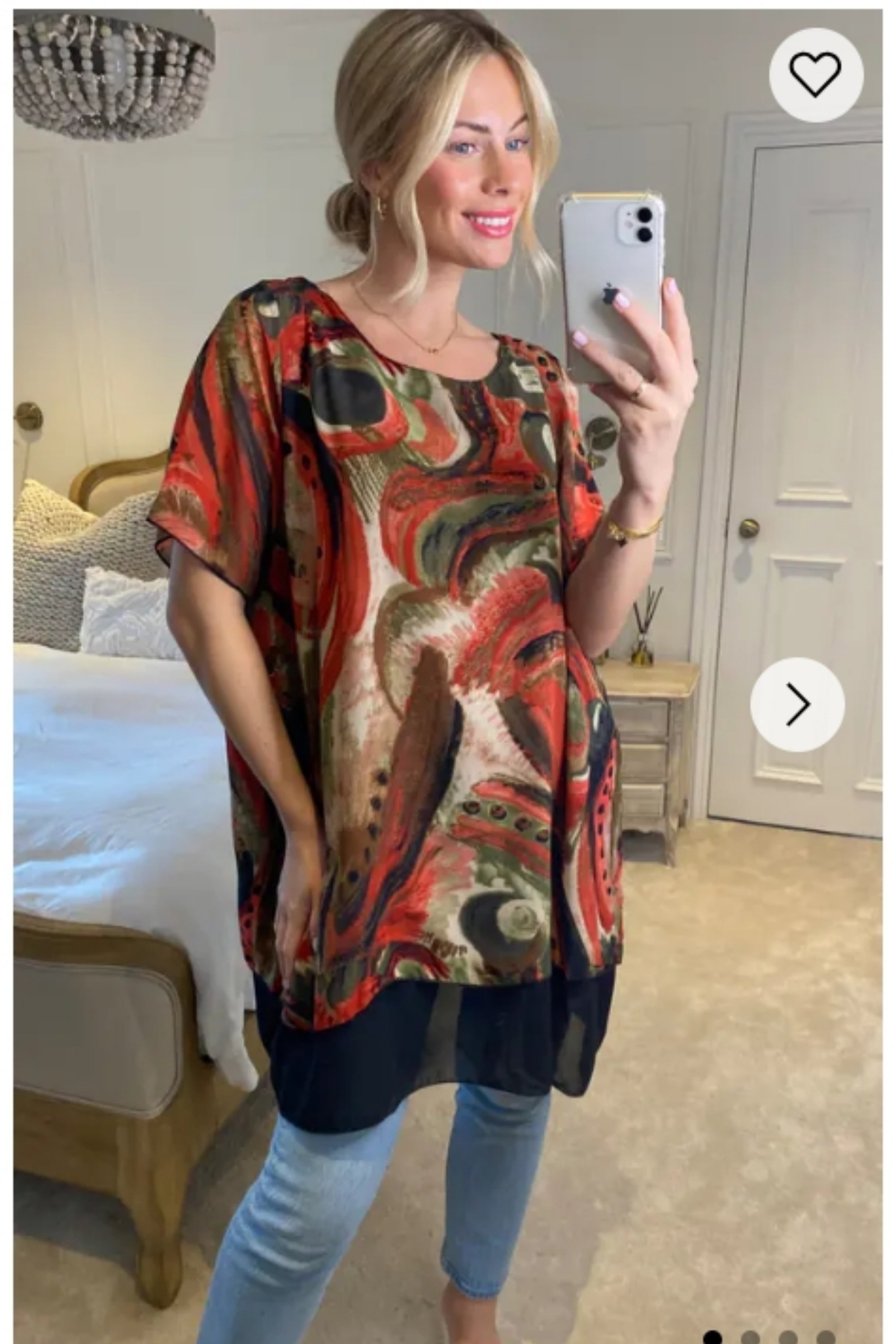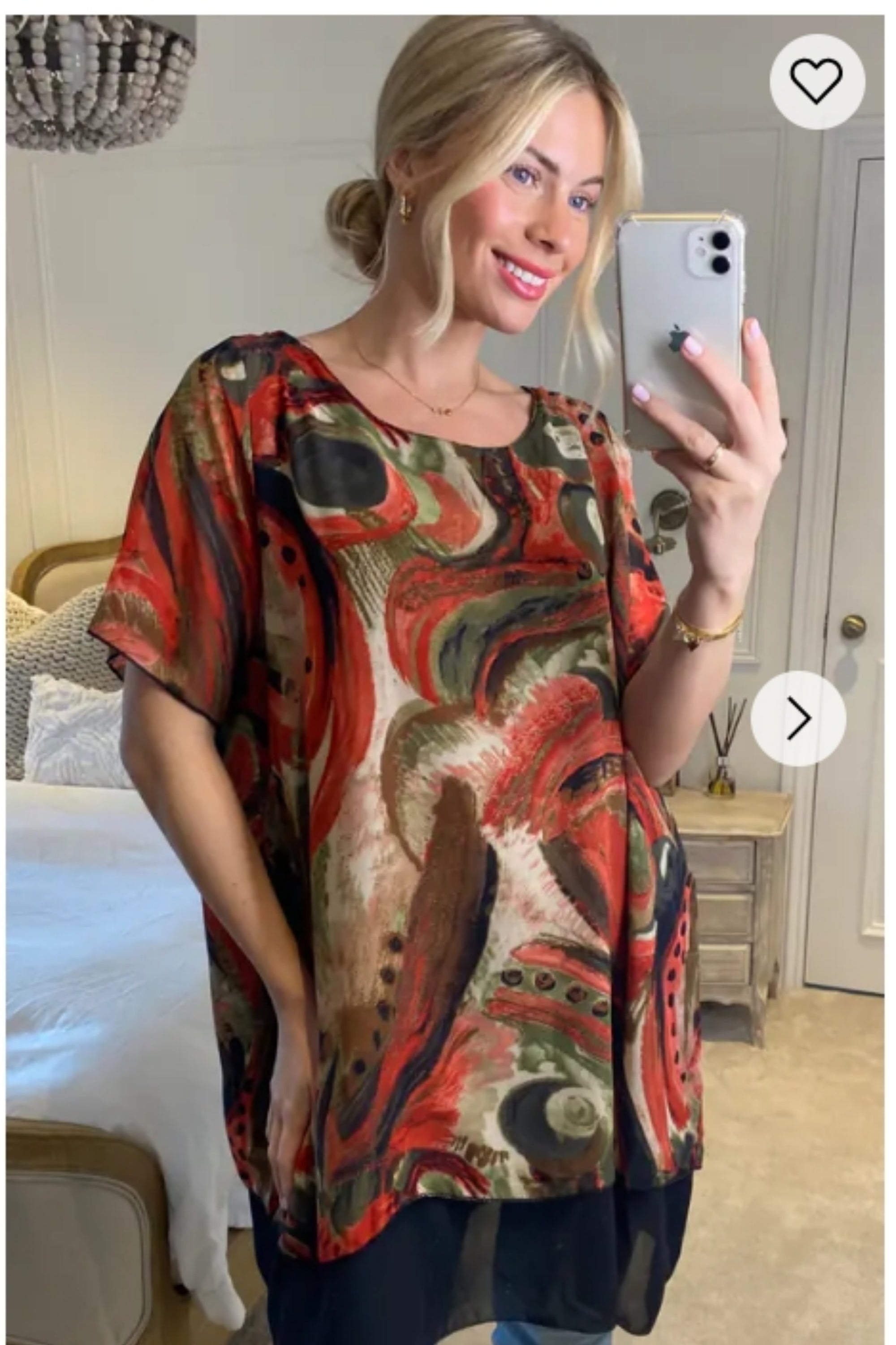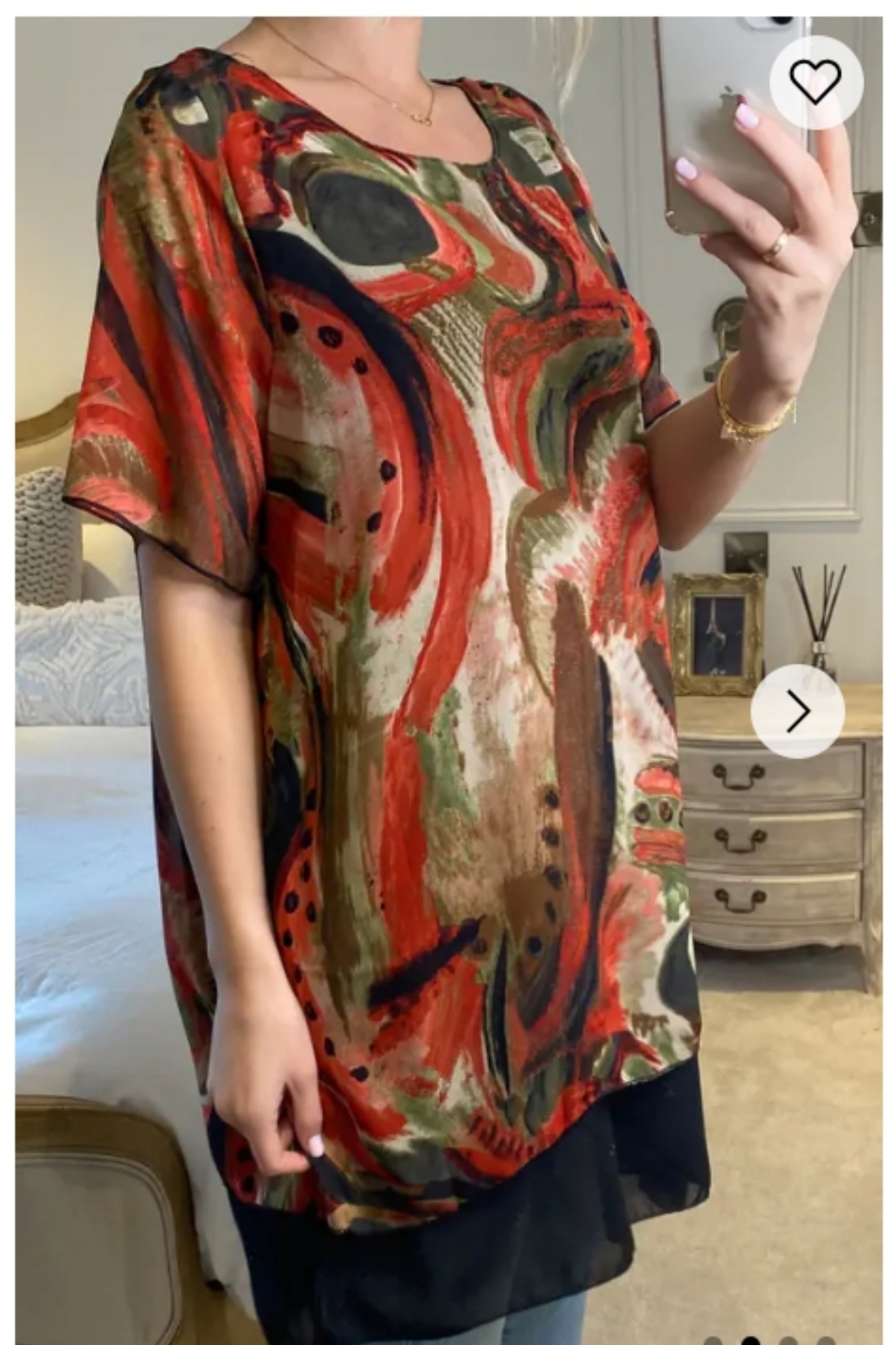 Oversized Short Sleeve Tunic In Orange And Black Abstract Print