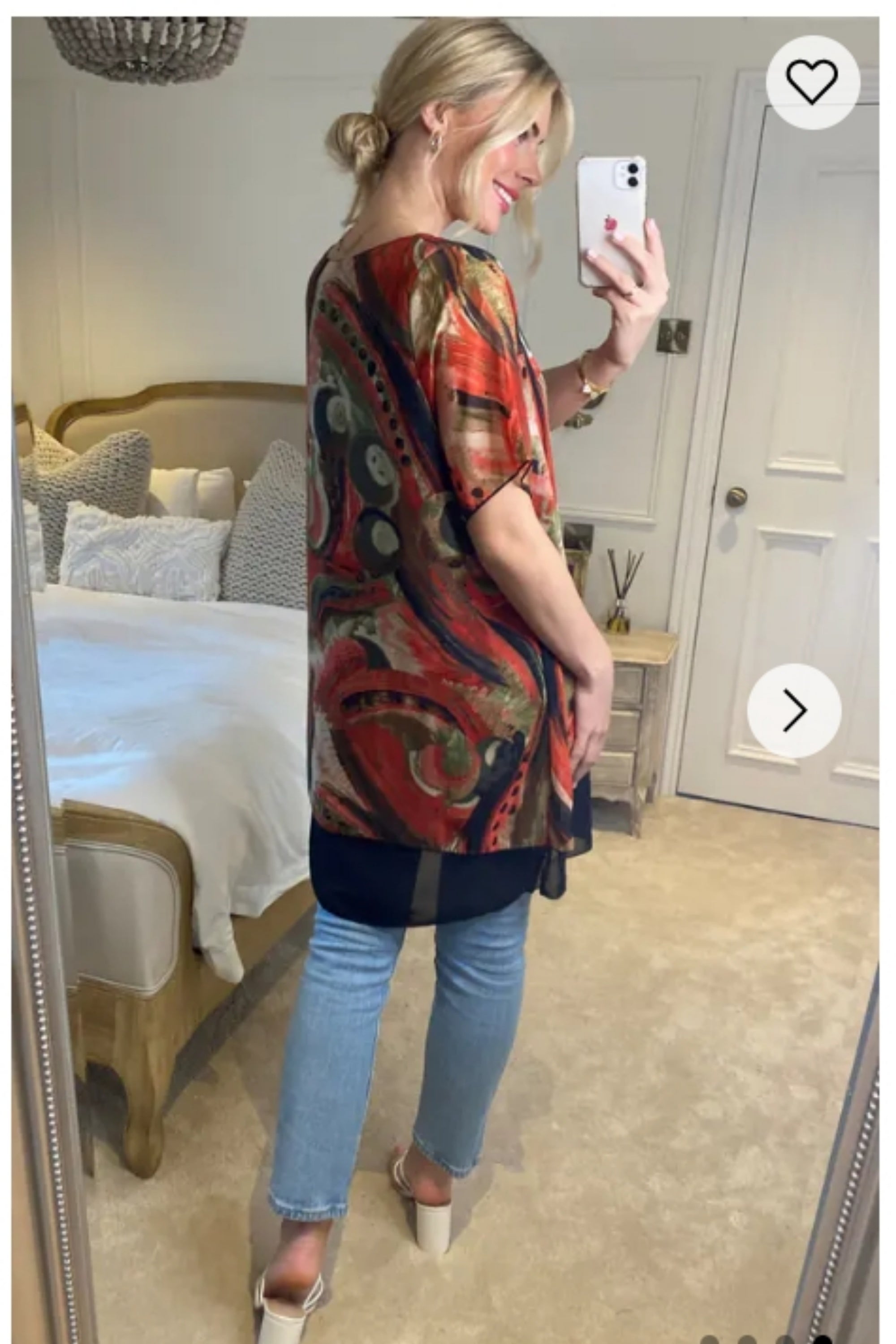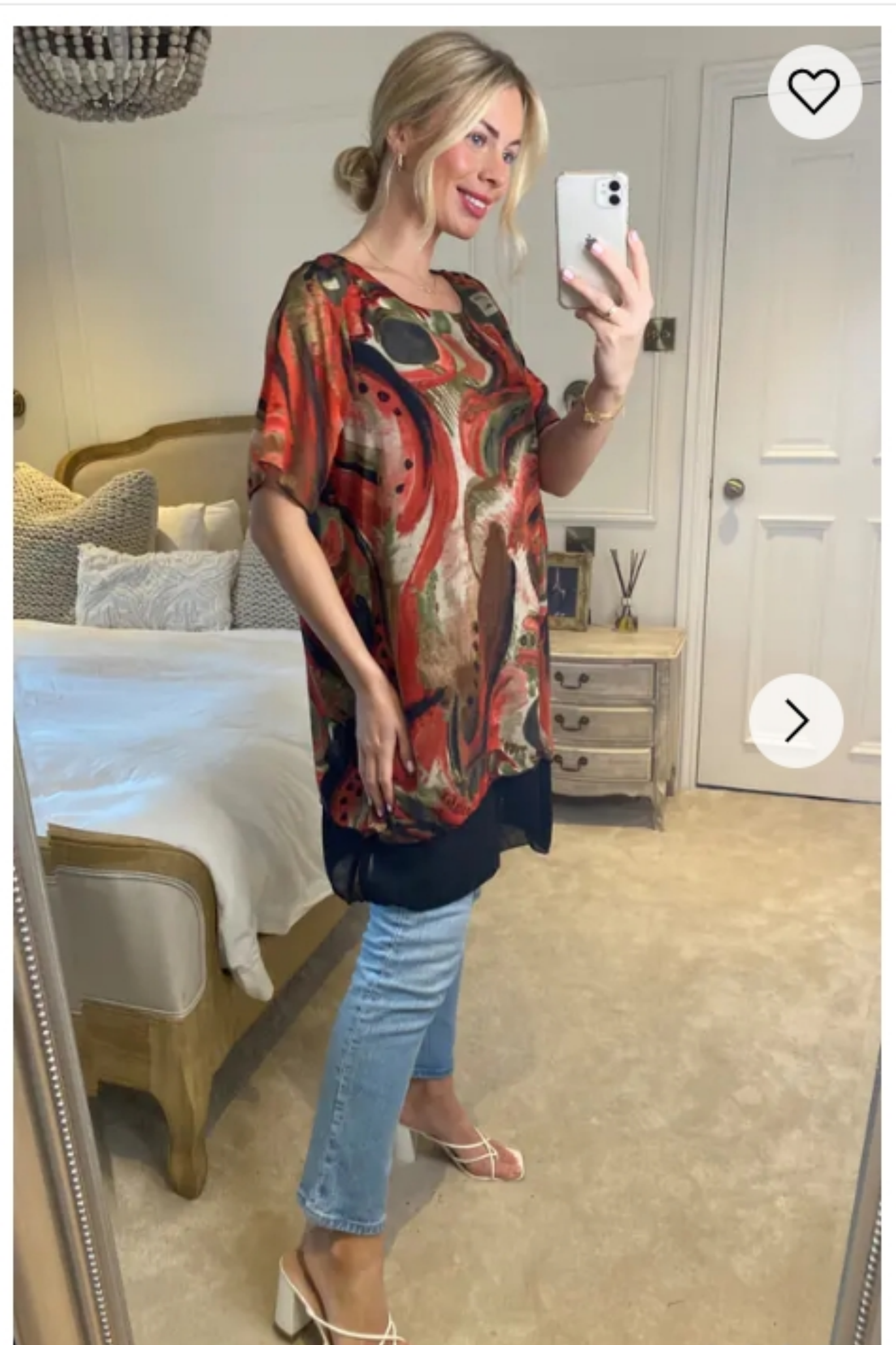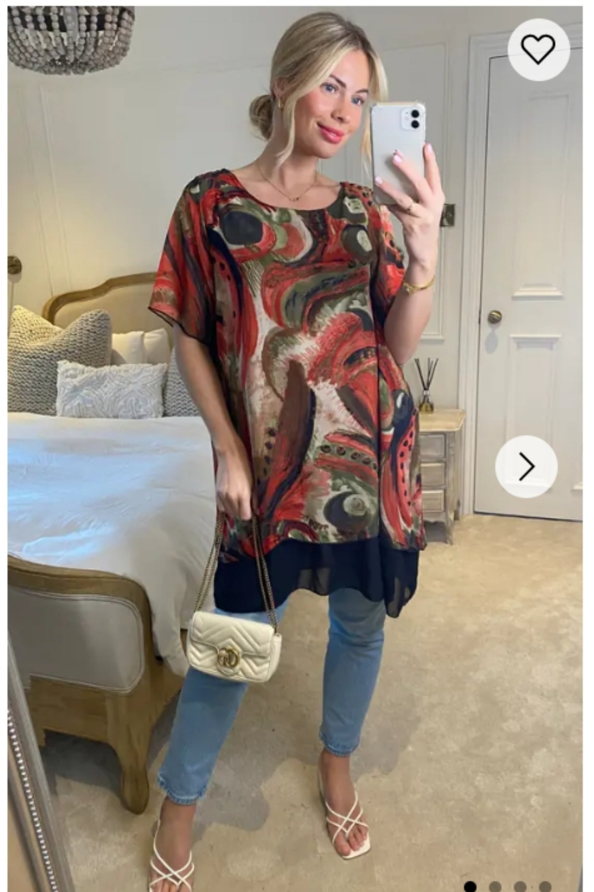 Oversized Short Sleeve Tunic In Orange And Black Abstract Print