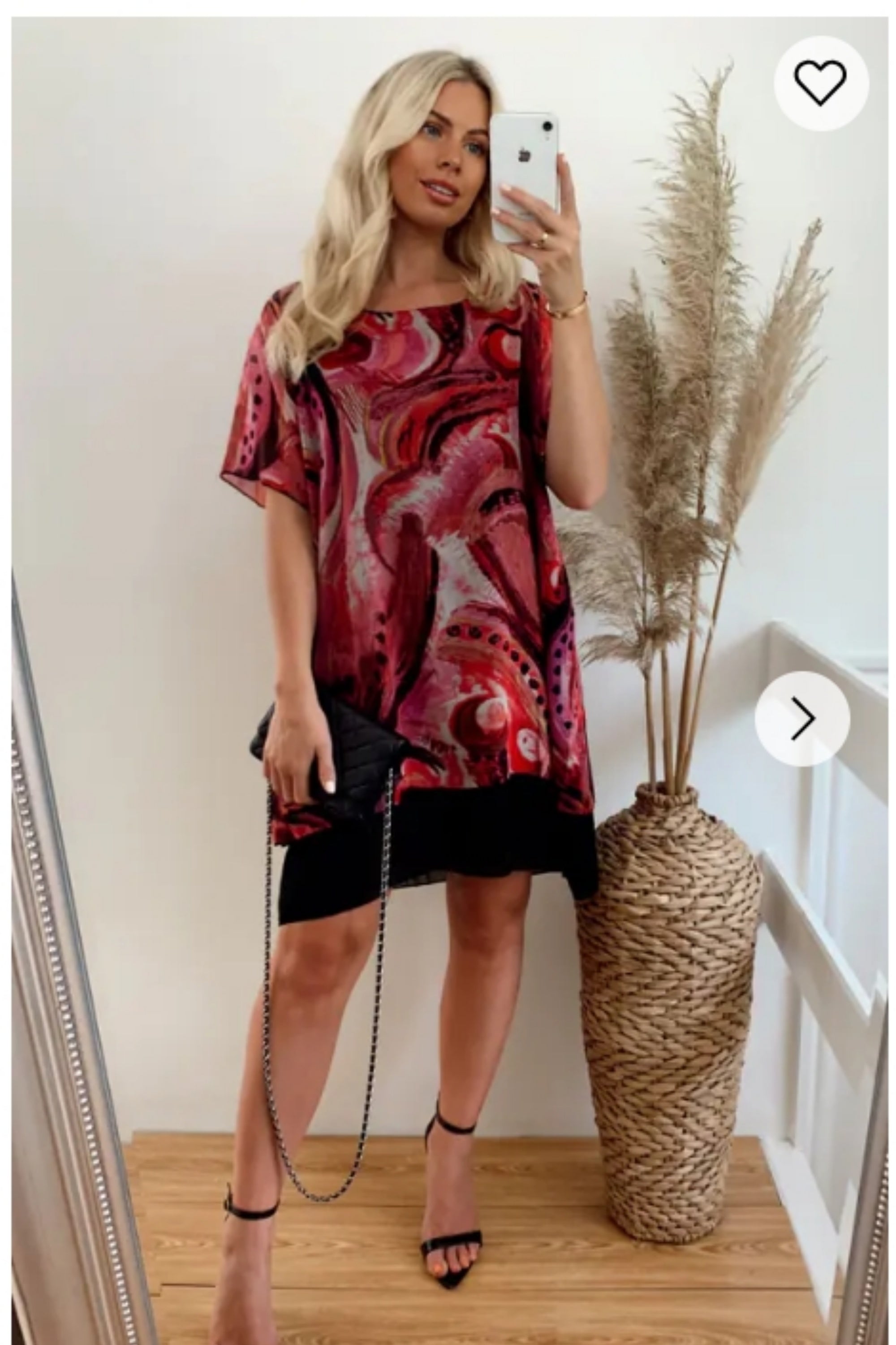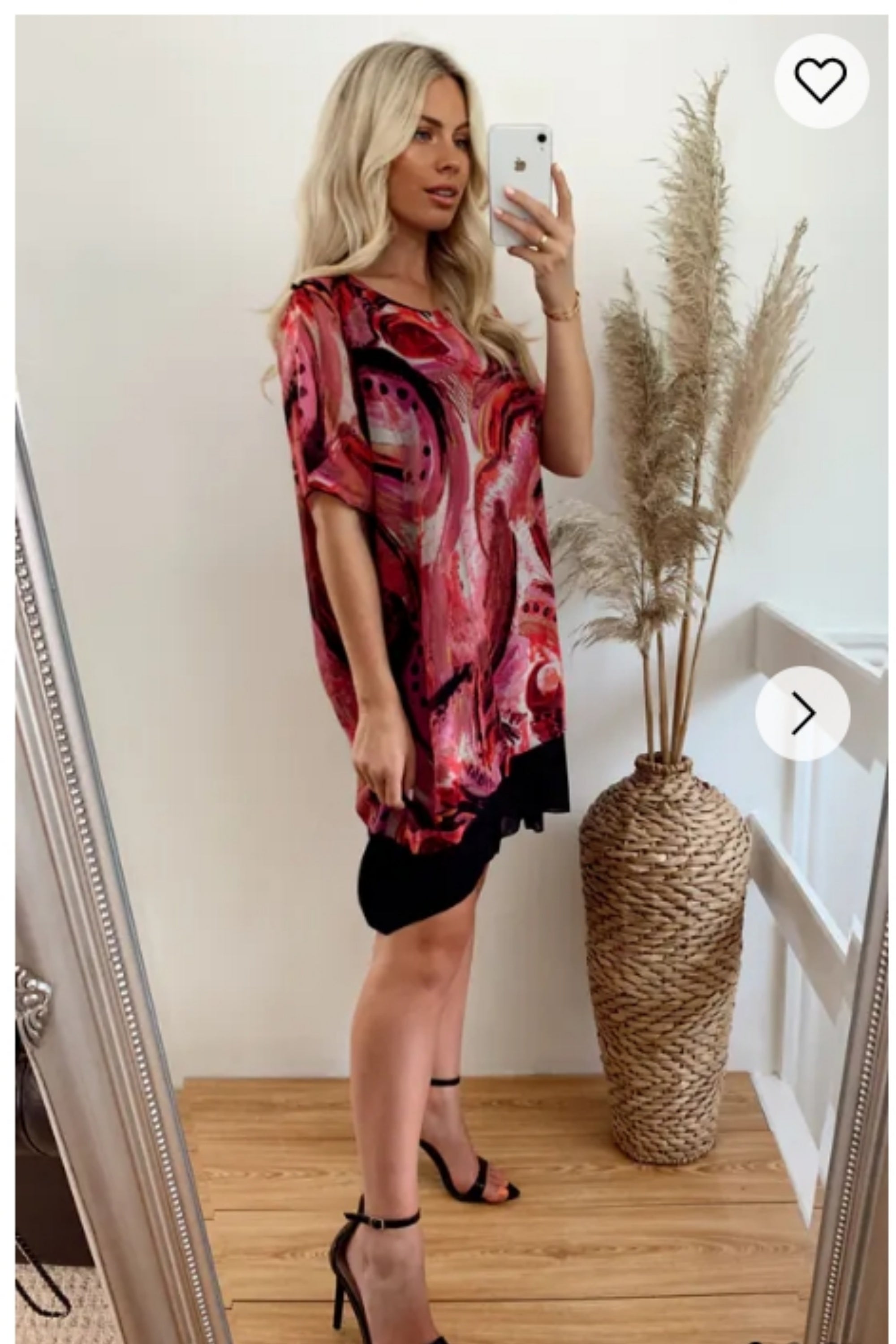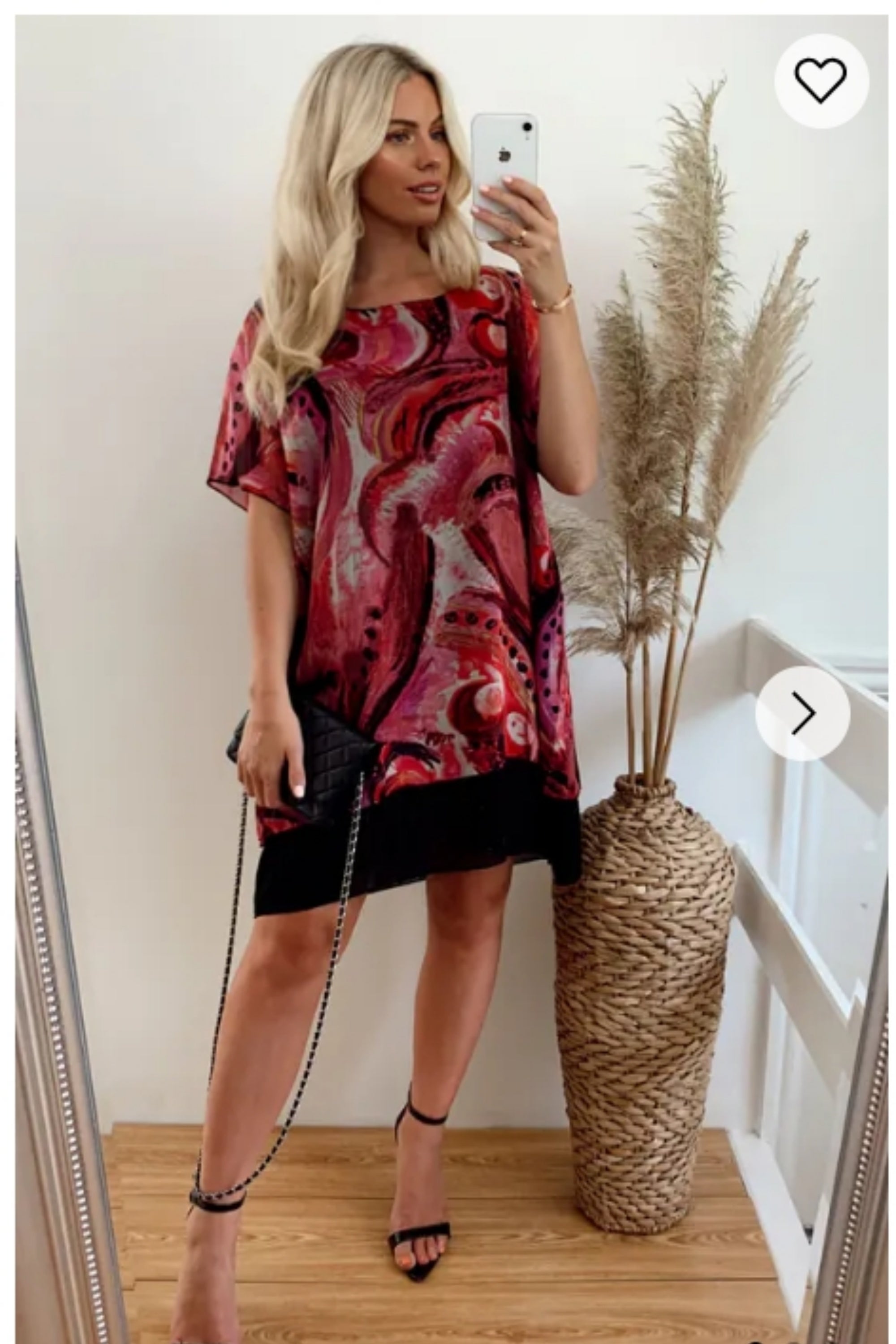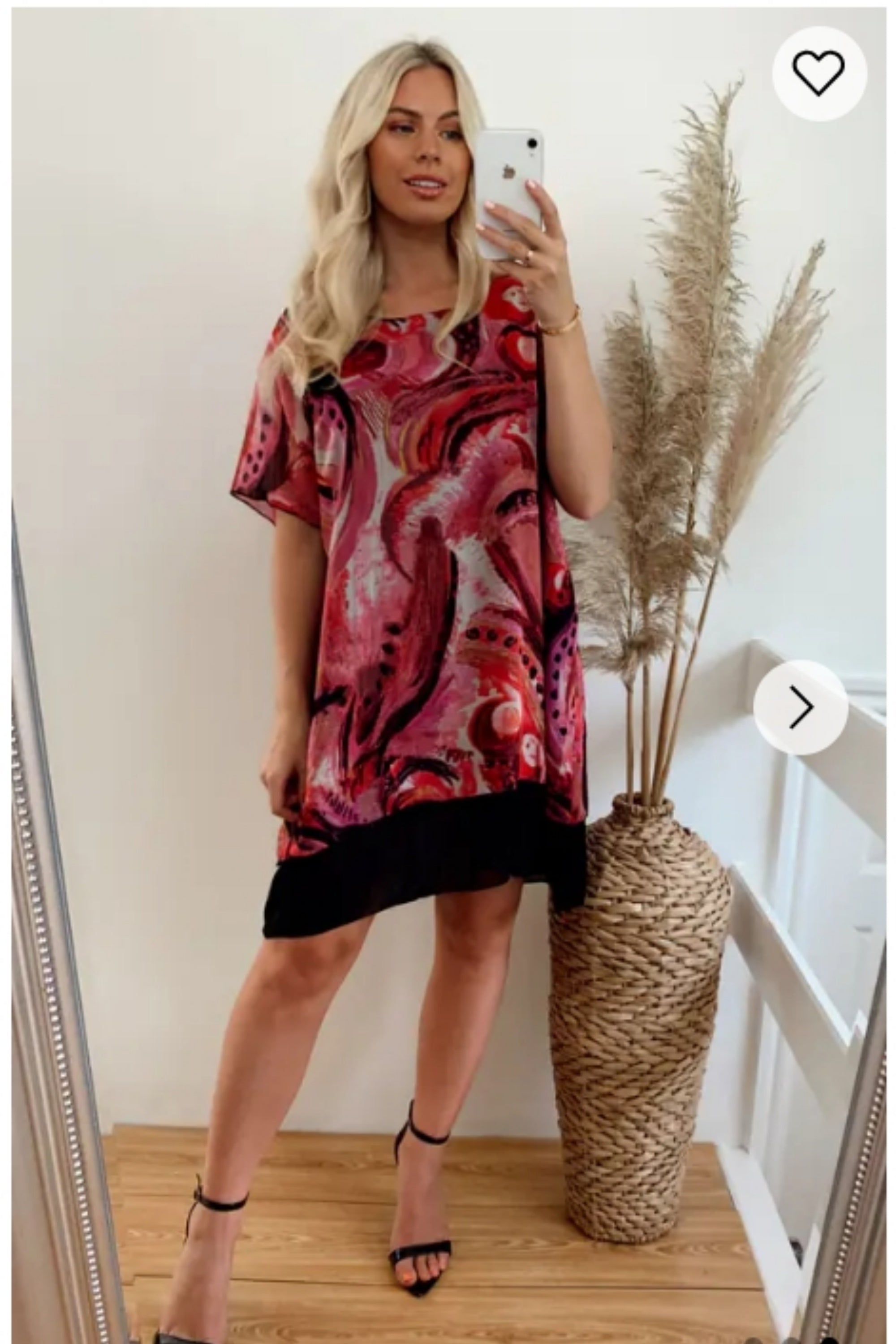 Oversized Short Sleeve Tunic In Pink And Black