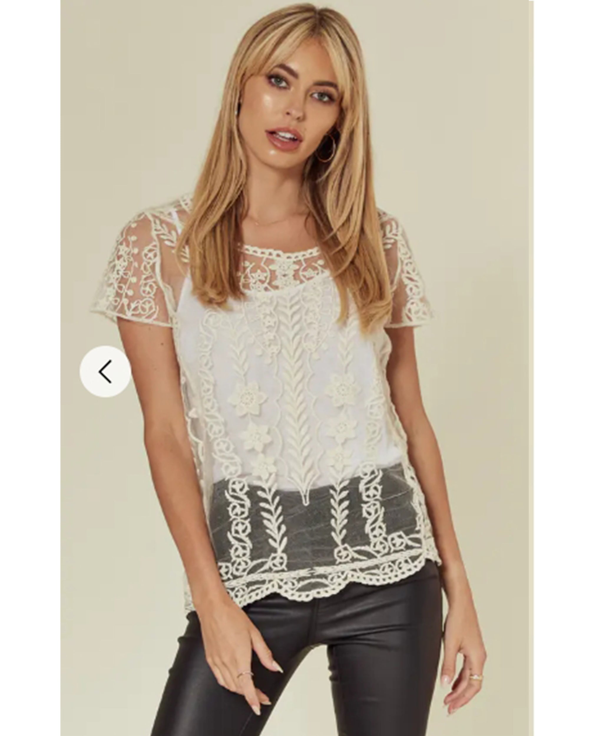 Floral Leaves Cotton Crochet Lace Top